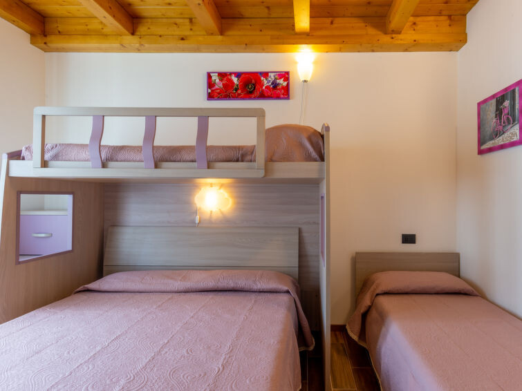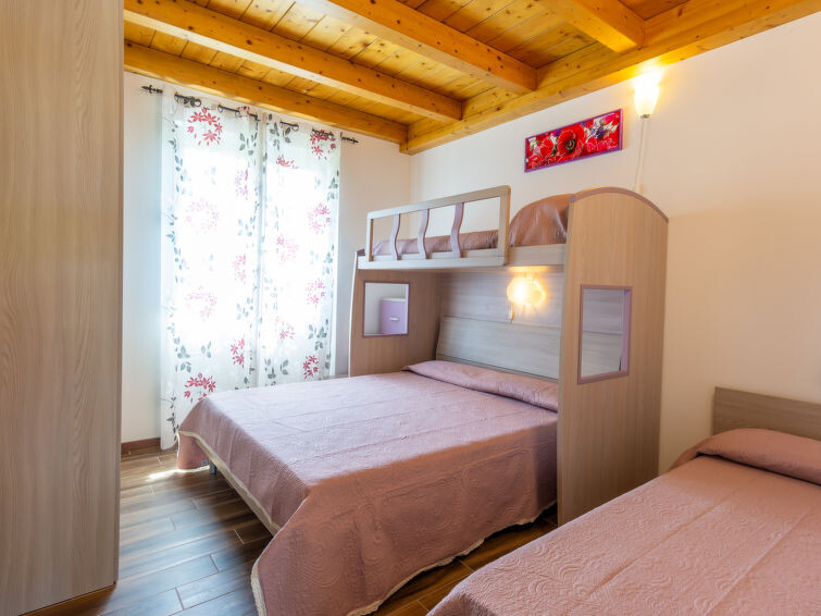 "Gelsomini (CCO522)", huis in een rij 3-kamers 85 m2, op de begane grond. Het objekt is geschikt voor 5 volwassenen + 1 kinderen. Modern en smaakvol ingericht: woon-/slaapkamer met 1 2-pers divanbed, eettafel en Sat-TV. Uitgang naar het terras. 1 kamer met 1 2-pers bed (160 cm). Uitgang naar de tuin. 1 kamer met 1 x 1 stapelbedden (80 cm), 1 2-pers bed (160 cm). Open keuken (oven, afwasmachine, 4 inductiekookplaten, broodrooster, diepvriezer, elektrische koffiemachine). Douche/WC. Gas-verwarming, vloerverwarming. Terras 20 m2, tuin 40 m2. Terrasmeubelen, ligstoelen (4). Ter beschikking: wasmachine, kinderstoel, kinderbed. Internet (WiFi, gratis). Niet rokers woning. IT097023C2QVXQ8JIN