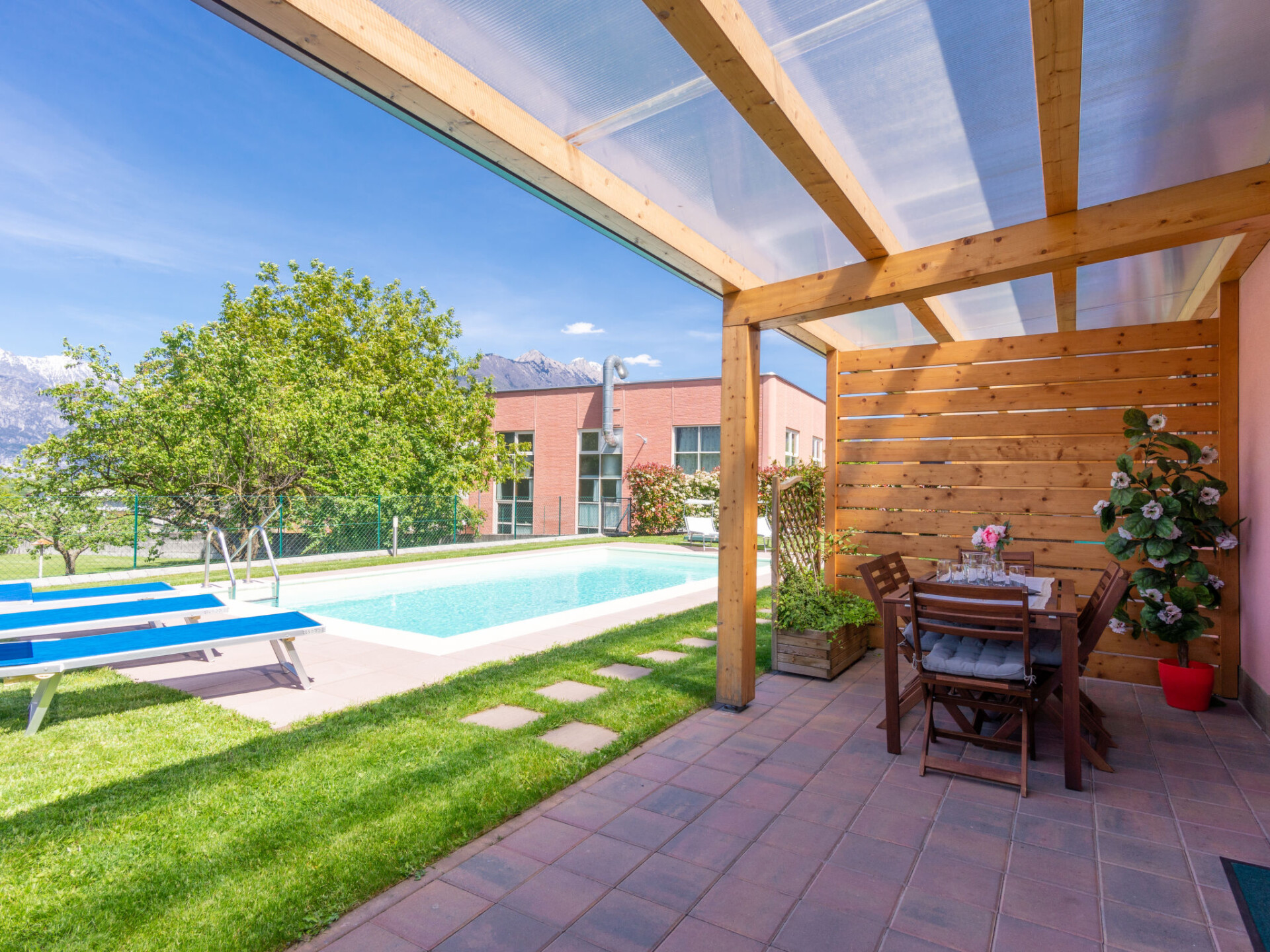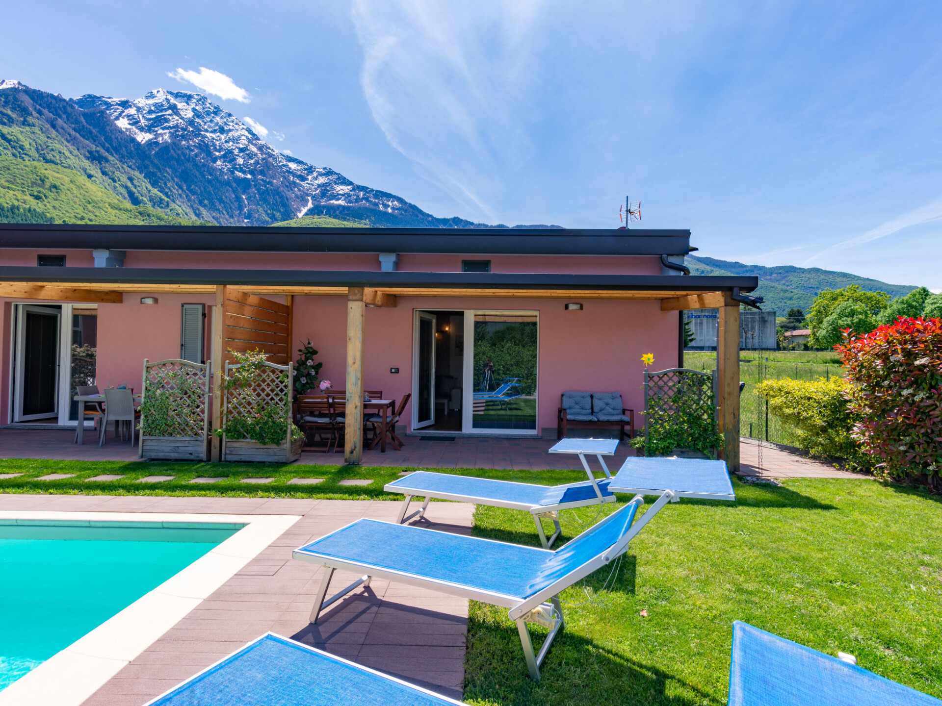 Moderne rijtjeshuis "Gelsomini", bouwjaar 2016. In de wijk Curcio, 2 km van het centrum van Colico, 42 km van het centrum van Lecco, 72 km van het centrum van Como, in een woonwijk, 2 km van het meer. Voor medegebruik: terrein 1.000 m2 (omheind) met weide, openluchtzwembad (8 x 4 m, 145 cm diepte, seizoensgebonden beschikbaarheid: 30.Apr. - 30.Sep.) met zout-elektrolyse. Buitendouche, barbecue, parkeerplaats bij het huis op 50 m openbare parkeerplaatsen 100 m. Winkel 400 m, supermarkt 700 m, bushalte 350 m, treinstation "Colico" 1.6 km, kiezelstrand 2.7 km, grasstrand 2.7 km. Golfterrein (18 holes) 35.5 km. Auto noodzakelijk. Vergelijkbare accommodaties kunnen worden geboekt. Object referentie: IT2440.624.2+3 is gelegen op hetzelfde terrein. In dit complex zijn verder 2 huizen te huur. Er bevindt zich een bouwmaterialenwinkel dichtbij.