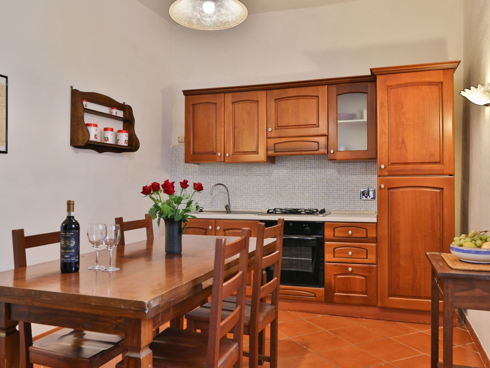 The apartment Rosa of 60 sqm is part of the farmhouse Antico Borgo La Torre, located 27 km south-east of Florence, in a sunny and quiet position, immersed in the green Tuscan countryside.The farm has 32 hectares of land comprising of vineyards, olive groves and a large natural garden with a small private lake and a 20-meter pool which all guests can enjoy.In the community courtyard, you will find tables and chairs.Guests can enjoy a 20 metre long swimming pool overlooking the lake and relax in the calm of the countryside. The swimming pool is open in the summer months. Please note that the wearing of a swimming cap is compulsory.In the farmhouse private car park, there is an electric car charging point. This two storey apartment is located in one of the 2 main buildings of the farmhouse. It boasts a living room, a kitchen, a bedroom and a bathroom. Just like the other properties on this agritourism, it was rustically furnished with attention to detail and is very cosy. The living room with two large armchairs and a pretty coffee table by the fireplace makes for a romantic setting for two or a comfortable atmosphere for a get together. The kitchen offers plenty of space for a kitchen unit and a dining table for four. It is equipped with a gas stove, an oven and a refrigerator with a freezer compartment. There is a bedroom with a double bed and an en-suite bathroom with a shower and a bidet. The apartment is equipped with cable television in the living room and gas heating.Upon request, a child cot for children up to three years can be provided. A laundry facility is available on the property.The farmhouse lies in the centre of the triangle Firenze-Siena-Arezzo. It is the perfect place to relax and enjoy nature, and also the ideal base from which to enjoy the cultural heritage of Tuscany.The nearest railway station (3 km away) is Figline-Valdarno, from which you can reach the centre of Florence or Arezzo in 20 minutes. IT048035B54KHLLAQP