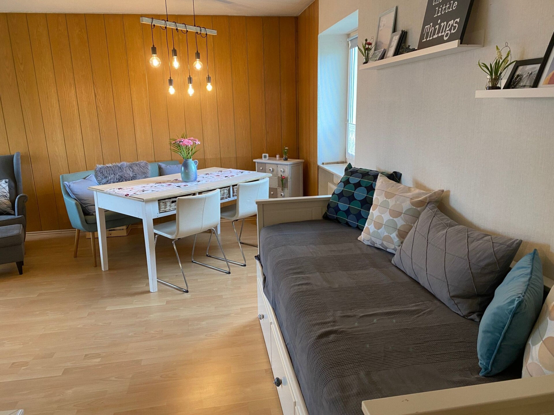 Discover the magic of the Upper Black Forest with a stay in our cosy flat, which is located at an altitude of approx. 1,000 m on the tip of a peninsula on Lake Schluchsee. Enjoy the proximity to the cool lake and an idyllic bathing meadow, which are just a few minutes' walk away. The ideal location of our flat on the mezzanine floor of a quiet residential complex offers you not only direct access to nature, but also proximity to the village centre and train station, both of which are just a 10-minute walk away. As an ideal starting point for exploring on foot, by bike or for excursions in the surrounding area, this accommodation promises an unforgettable holiday.Inside, you will be welcomed by a 2-room flat of approx. 80 m2, which has been recently renovated and impresses with its cosy furnishings. The spacious bedroom is furnished with a double bed, a bunk bed and a spacious wardrobe. A small balcony allows you to enjoy the morning sun. In the living/dining room you will find a comfortable sofa next to a modern flat-screen TV, a pull-out day bed that serves as an additional sleeping option, a dining table and a cosy reading corner. The new kitchen has a ceramic hob, fridge, kettle, oven and dishwasher. A newly renovated bathroom with rain shower and a separate guest WC round off the offer. A parking space in the garage is also available for guests' convenience.Outside, the second balcony, designed for enjoying the evening sun, invites you to linger. You have direct access to picturesque hiking trails that start right at the front door, and the bathing meadow and the lake are practically on your doorstep. Whether you want to enjoy the peace and quiet or be active in nature, the location of our holiday flat offers all this and much more.The surrounding area is ideal for a wide range of activities. There are shops and grocery shops, a bakery, the railway station and a sandy beach with a bathing area in the immediate vicinity. For the more adventurous, the area offers numerous hiking and cycling trails from the house. In addition, well-known sights such as the Rothaus brewery, the Black Forest house "Hüsli" and St. Blasien Cathedral are within easy reach. For winter sports fans, well-known ski resorts such as Feldberg and Todtnauberg are close by, and the famous lakes Schluchsee and Titisee are perfect for exploring.Don't miss this opportunity to spend an unforgettable holiday in one of Germany's most beautiful regions. Our lovingly furnished holiday flat in a breathtaking location on the Schluchsee offers you the perfect mix of relaxing tranquillity, closeness to nature and active leisure activities. Escape from everyday life and immerse yourself in the beauty of the Upper Black Forest - a holiday that leaves nothing to be desired.