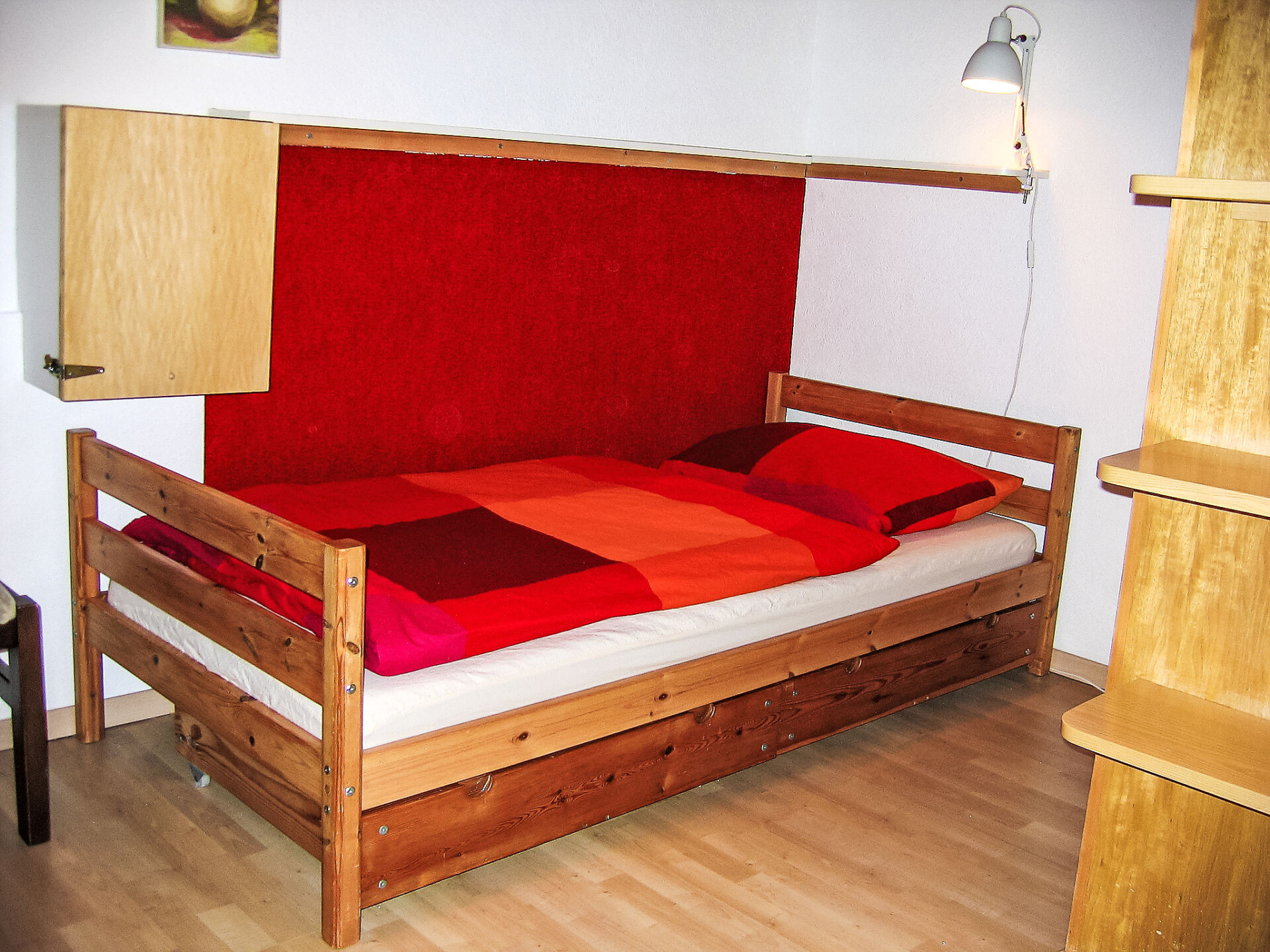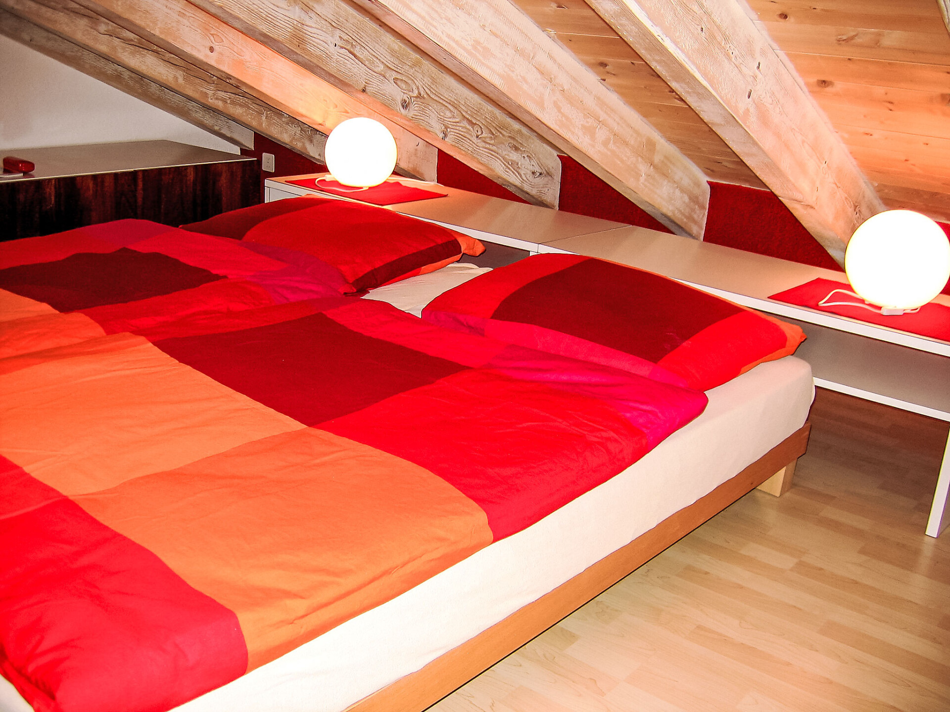 Appartement 3-kamers 62 m2 op de 4e verdieping. Comfortabel en gezellig ingericht: woon-/eetkamer met 1 kastbed en Sat-TV (Flatscreen TV), stereo-installatie en DVD. Uitgang naar het balkon. 1 kamer met afgeschuinde daken met 2 bedden (90 cm, lengte 200 cm). 1 kamer met afgeschuinde daken met 1 2-pers bed (190 cm, lengte 210 cm). Open keuken (oven, afwasmachine, 4 keramische glas kookplaten). Bad/WC. Balkon. Balkonmeubilair. Mooi uitzicht op de bergen, het landschap en de plaats. Ter beschikking: Internet (WiFi, gratis). Parkeerplaats (extra) bij het huis. Niet rokers woning. Let op: de kamer met 2-pers bed is alleen bereikbaar door de 1e slaapkamer, geschikt als familie-appartement.