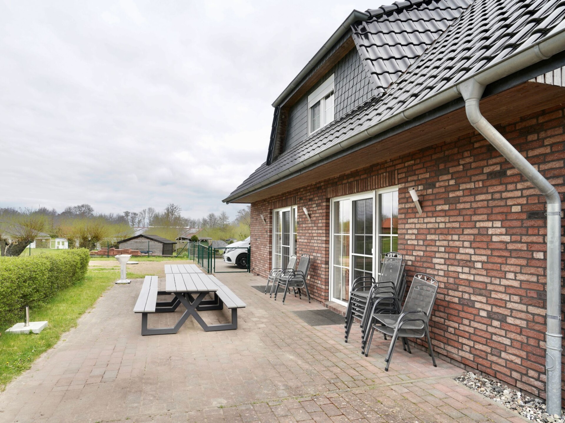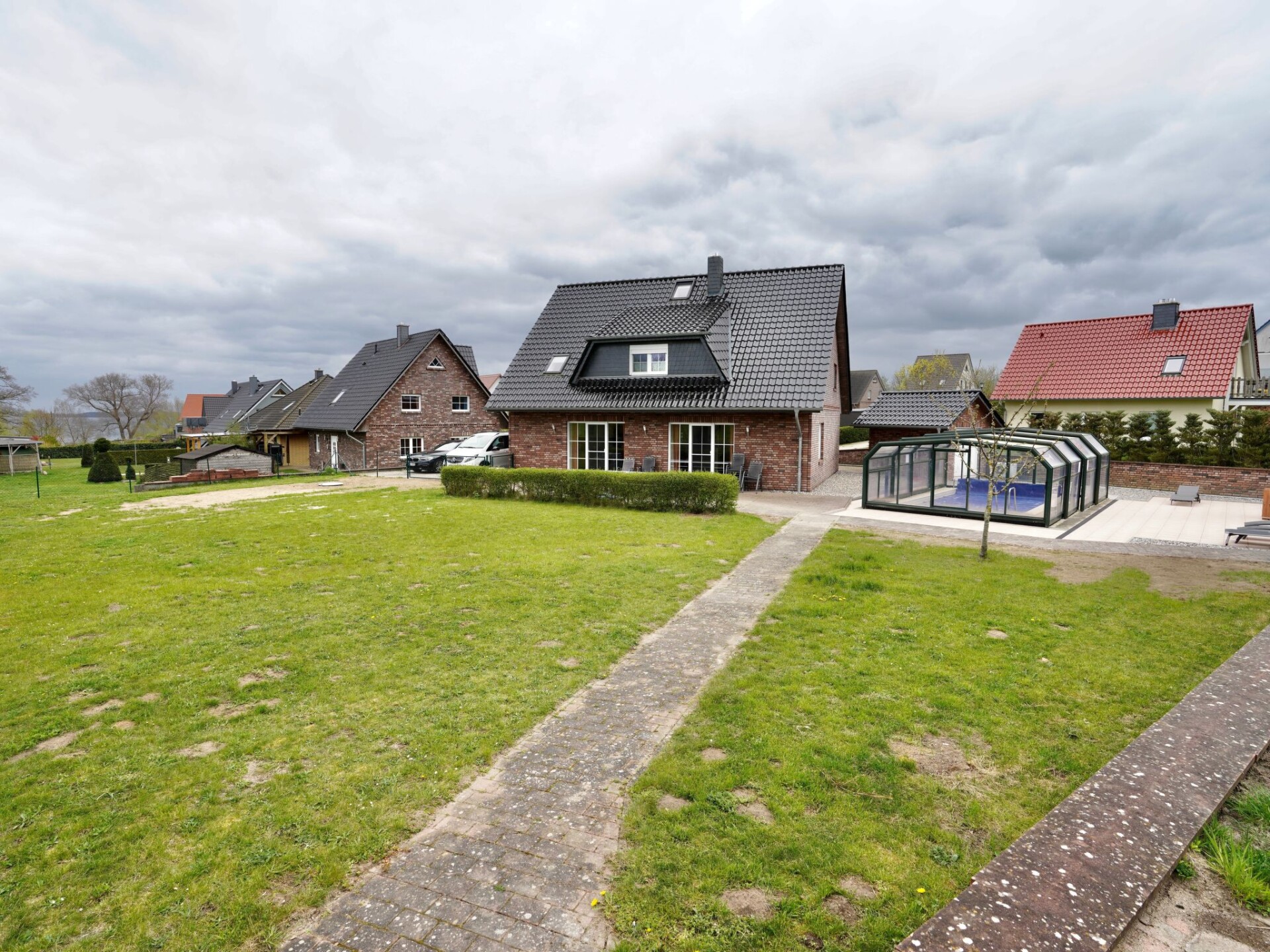 Maximaal 2 huisdieren/honden toegestaan. Large holiday home with outdoor pool - only 350 m from the Baltic Sea beach. 14 adults maximum and 2 children are welcome, a beautiful living area, 7 bedrooms, 3 bathrooms + GWC, a terrace with barbecue etc. as well as a well-equipped kitchen.A top house for a large family or friends. You book a house with swimming pool and large barbecue terrace in addition to the best location to the beach. The house has 7 bedrooms (5 x double bed; 2 x 2 single beds + cot) 3 bathrooms + GWC (ground floor with shower and bathtub; upper floor shower; pointed roof guest toilet) The living room has a beautiful dining table from Costa Rica for 14 people, plus a seating area for everyone by the fireplace and a flat screen. A 2nd/3rd TV is on the upper floor of the house. 4 - on request 5 car parking spaces are in front of the house, the house has a pool with glass roofing, which can be opened in summer and is usable from about 15..4. to the end of October, provided it is warmer than 18 degrees air temperature outside. When using the pool, you are responsible for the safety of non-swimmers and, after instruction on site, for keeping the water clean. So shower before bathing etc. All consumption costs, the W-Lan are included in the price. A barbecue is on the terrace The outdoor sauna, the washing machine / dryer has a coin-operated . . Please book bicycles before arrival. www.stockundsteinbikes.de.The house has a pool with a glass roof, which can be opened in summer and can be used from about 15 April to the end of October, provided it is warmer than 18 degrees air temperature outside. When using the pool, you are responsible for the safety of non-swimmers and, after instruction on site, for keeping the water clean. So shower before bathing etc. All consumption costs, the W-Lan are included in the price. There is a barbecue on the terrace, the outdoor sauna, the washing machine/dryer has a coin-operated machine. You need coins. Please book bicycles before arrival. www.stockundsteinbikes.de .- Large pool and sauna for exclusive use- Rent bicycles at www.stockundsteinbikes.de.