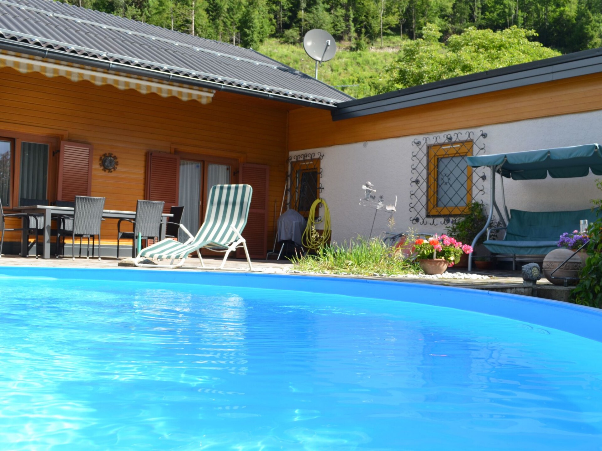 Discover the ideal holiday flat for up to 4 people in Flattach, Carinthia. This charming accommodation not only offers comfort and cosiness for your family or small group, but also the perfect base for your explorations and adventures in the breathtaking surroundings of Carinthia. With practical facilities and a friendly invitation to rest and relaxation, it is the perfect place for your next holiday.The 60m² flat is practically furnished to make your stay as comfortable as possible without having to forego the necessary amenities. At your disposal are a 2-ring hob, a coffee machine, a kettle and a mini oven for self-catering. In addition, a fan increases comfort on hot days. Two televisions with satellite reception provide entertainment. The sleeping arrangements are family-friendly, with a bedroom with a double bed and a children's room with bunk beds and a washbasin, ideal for smaller families or groups of friends.Outside, the communal heated pool invites you to dip in and enjoy. The large sunbathing lawn and a garden barbecue are perfect additions for balmy summer evenings. A private car park directly in front of the flat and a charming pavilion offer additional comfort and space, making your stay both relaxing and uncomplicated.The holiday flat not only impresses with its interior design and outdoor area, but also with its excellent location. With a ski bus just 200 metres away and cross-country skiing 500 metres away, there are plenty of opportunities for winter sports enthusiasts. The nearest village centre and grocery store are also conveniently located just 500m away. This proximity to local amenities makes the flat an ideal starting point for all your activities.If you are looking for cosy and well-located accommodation in Flattach that promises you and your loved ones a carefree and unforgettable stay, then our holiday flat is just right for you. Enjoy the combination of comfort, convenience and the beauty of Carinthia, which will make your holiday a true experience.