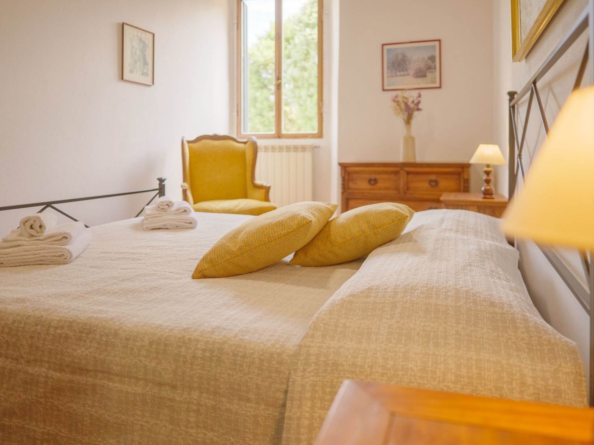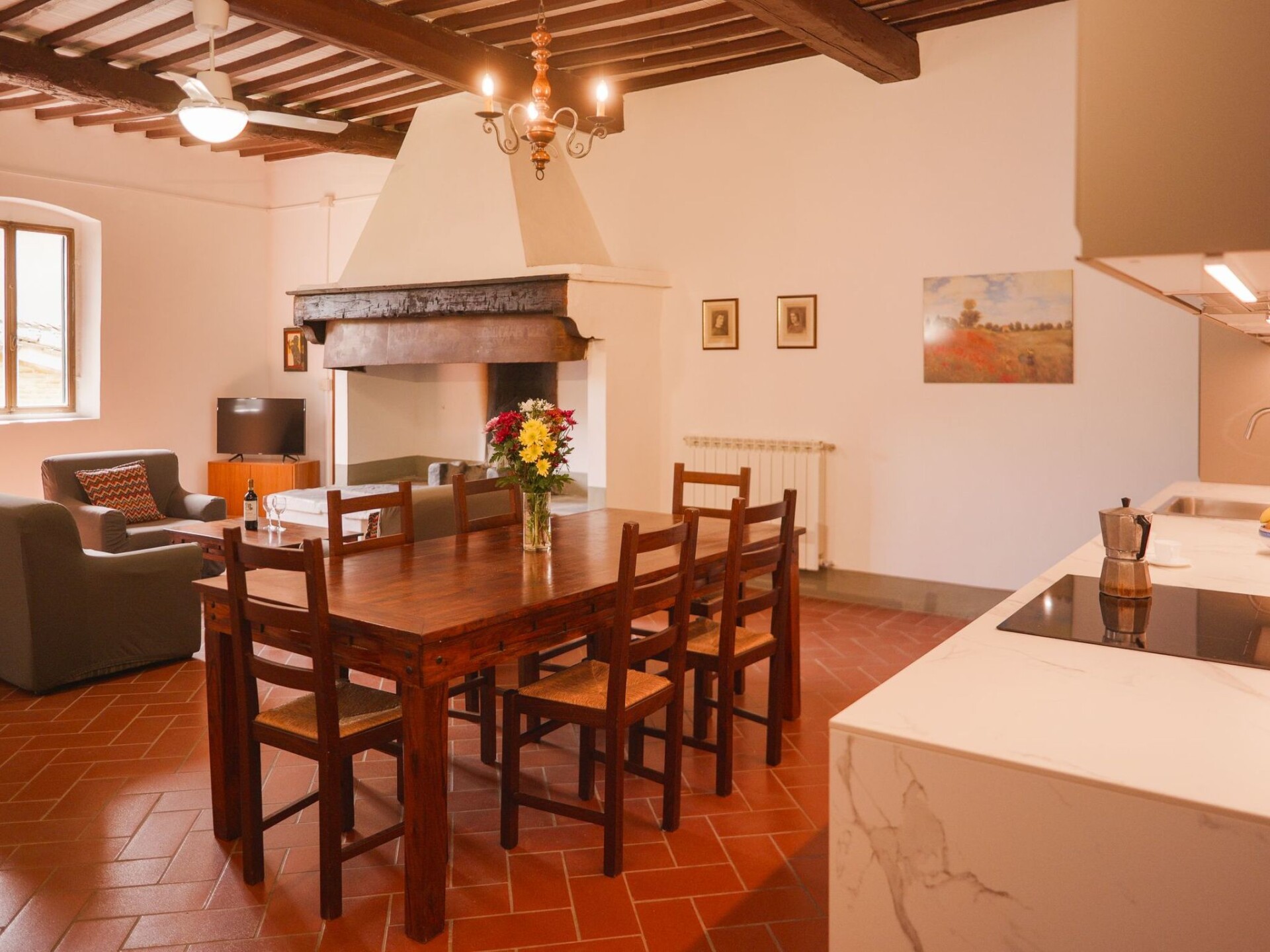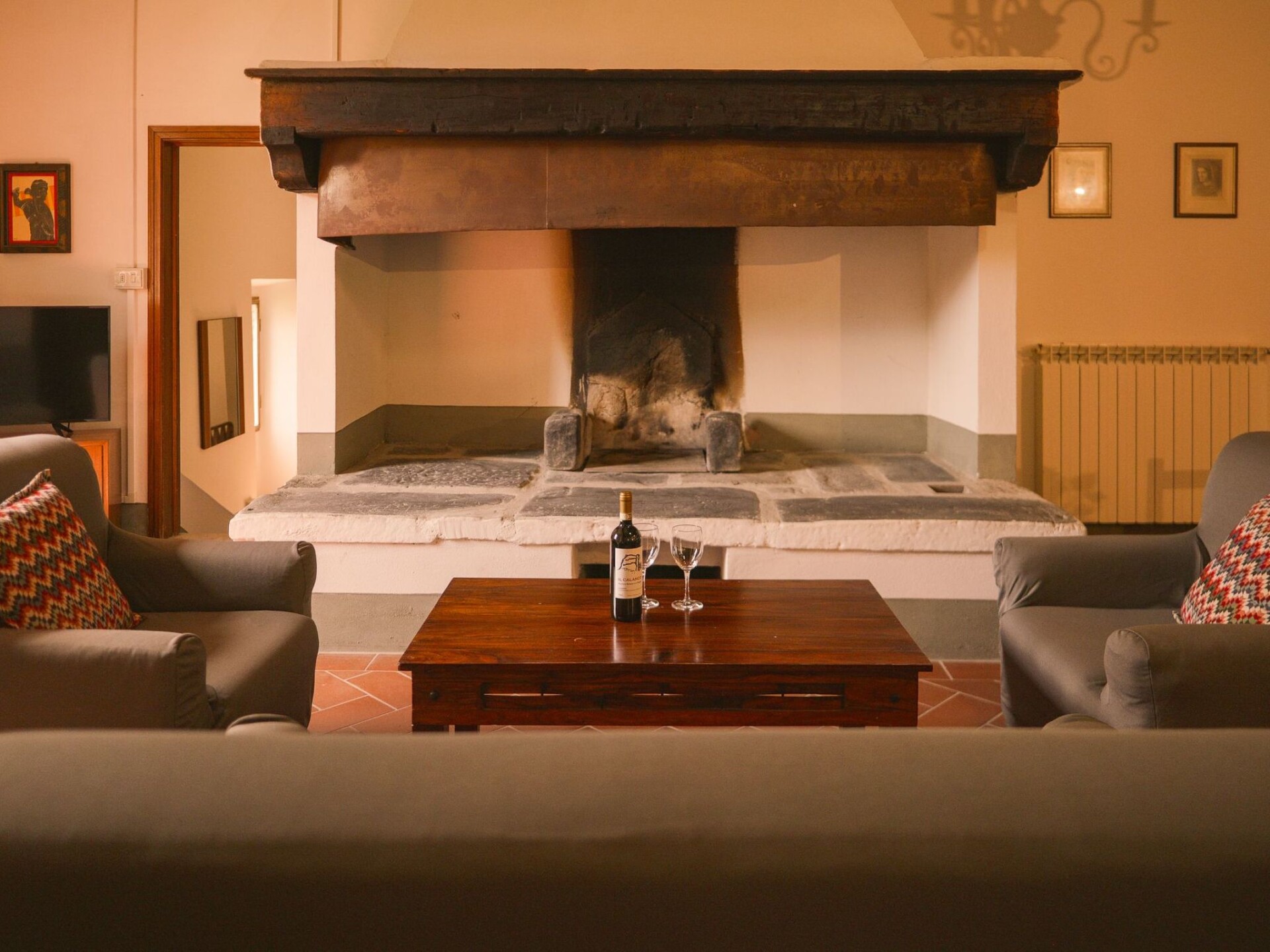 The 120 sqm apartment Pittore is part of the farmhouse Antico Borgo La Torre, located 27 km south-east of Florence, in a sunny and quiet position, immersed in the green Tuscan countryside. The apartment of 100 sqm is located on the first and second floor of one of the two main buildings of the farmhouse.The farm has 32 hectares of land comprising of vineyards, olive groves and a large natural garden with a small private lake and a 20-meter swimming pool which all guests can enjoy.In the shared interior courtyard there are a table and chairs available for use by guests at the holiday apartment. Guests can enjoy a 20 metre long swimming pool overlooking the lake and relax in the calm of the countryside. The swimming pool is open in the summer months. Please note that the wearing of a swimming cap is compulsory.In the farmhouse private car park, there is an electric car charging point.The holiday apartment is located in one of the 2 main buildings of the farmhouse. The apartment oozes rustic charm, owing to the wooden beams and the abundance of wooden furniture. The apartment comprises a living room with open-plan kitchen, storage room, three bedrooms and three bathrooms. In the living room there is a cosy and inviting seating corner with a sofa and armchairs in front of the fireplace for sociable evenings. There is ample space at the dining table for eight people to enjoy meals together. The open-plan kitchen includes an electric stove, oven and a fridge with freezer compartment, and a dishwasher. Two of the bedrooms are furnished with a double bed, the other one with 2 single beds. The 3 bathrooms each have a shower and bidet. A washing machine is also provided, as well as digital television in the living room.The farmhouse lies in the centre of the triangle Firenze-Siena-Arezzo. It is the perfect place to relax and enjoy nature, and also the ideal base from which to enjoy the cultural heritage of Tuscany.The nearest railway station (3 km away) is Figline-Valdarno, from which you can reach the centre of Florence or Arezzo in 20 minutes. IT048035B54KHLLAQP