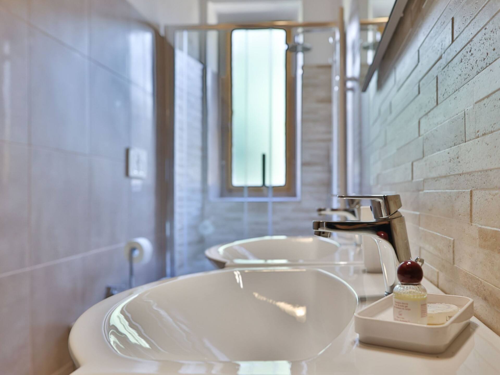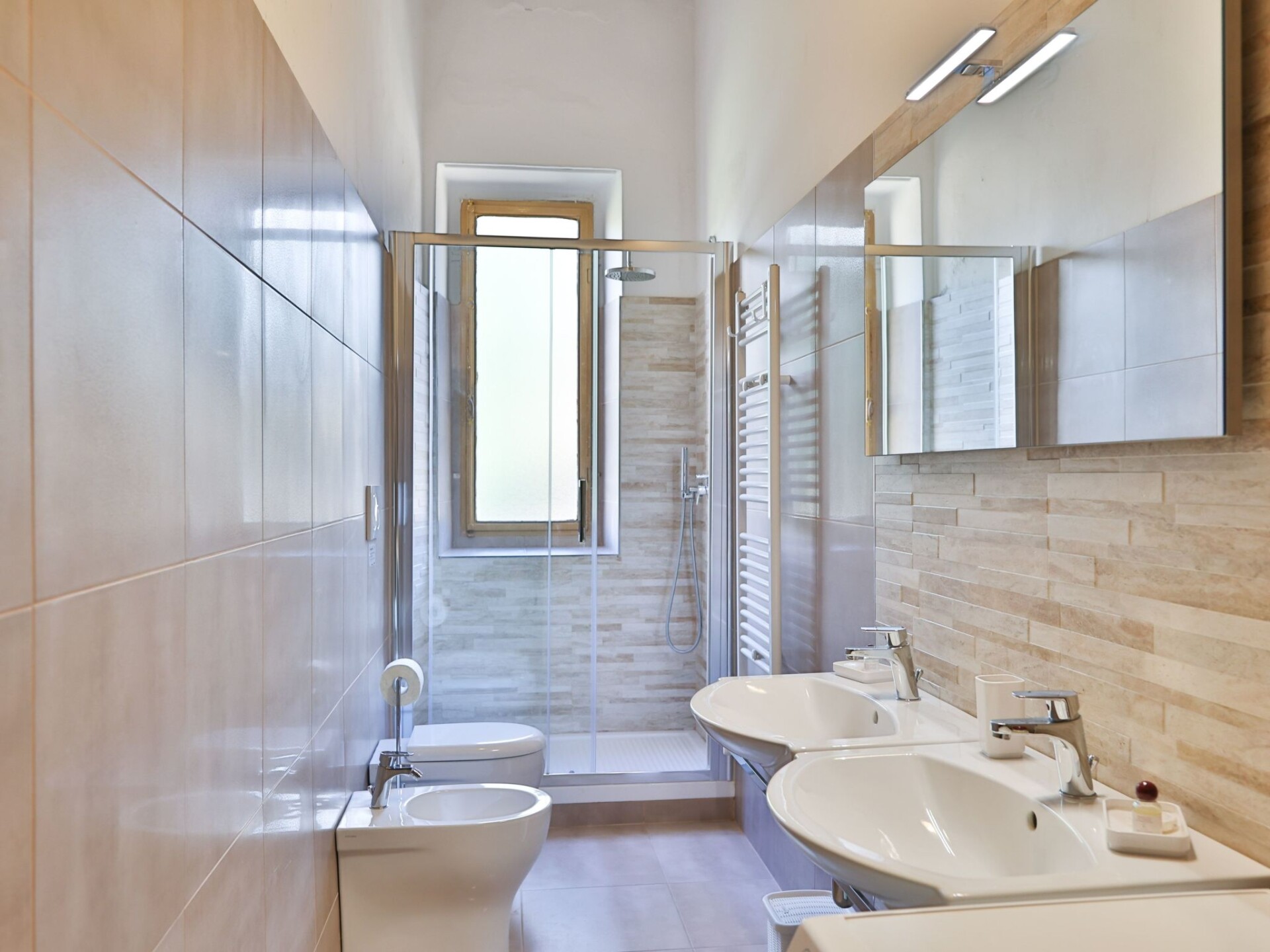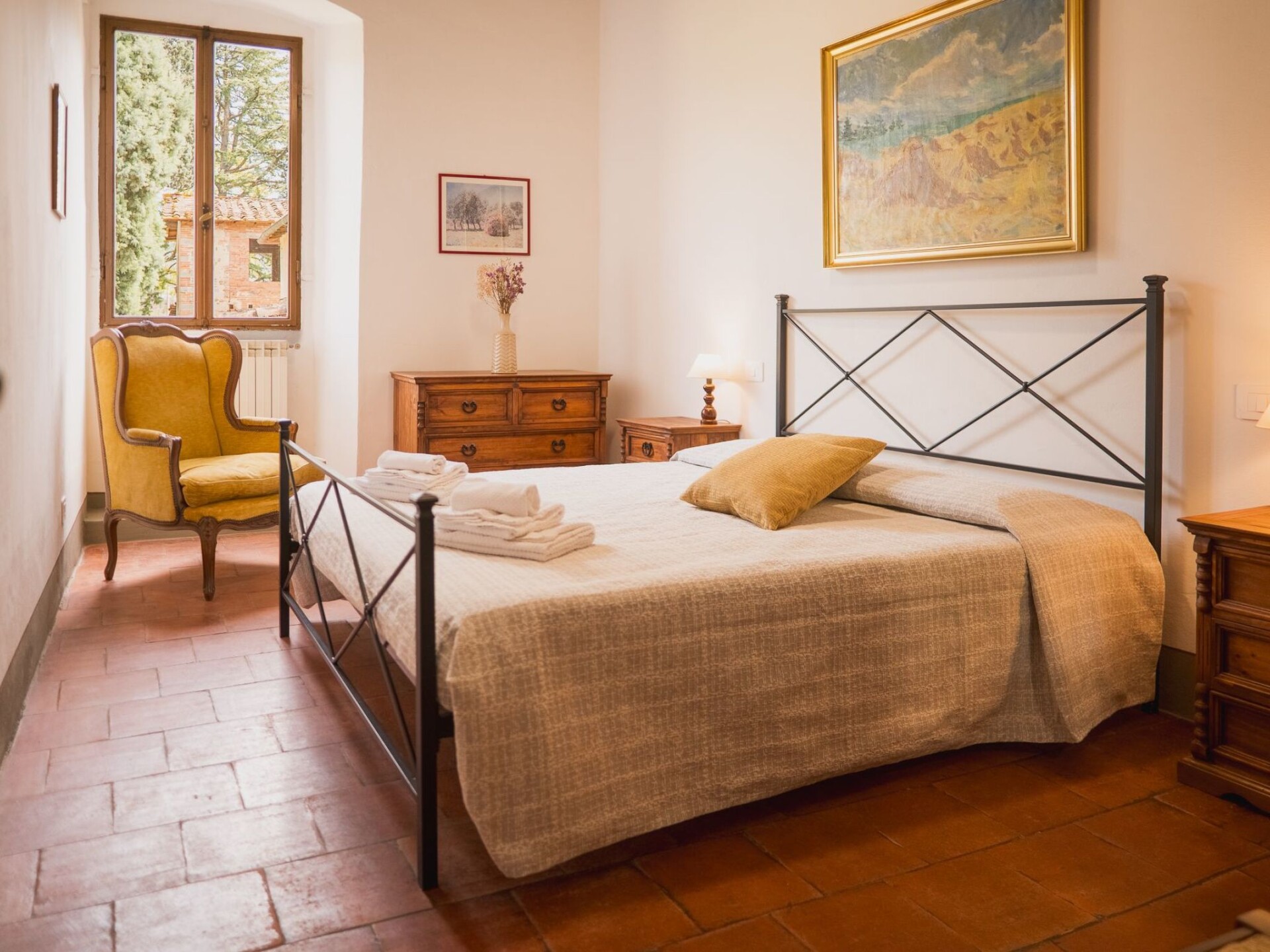 The 120 sqm apartment Pittore is part of the farmhouse Antico Borgo La Torre, located 27 km south-east of Florence, in a sunny and quiet position, immersed in the green Tuscan countryside. The apartment of 100 sqm is located on the first and second floor of one of the two main buildings of the farmhouse.The farm has 32 hectares of land comprising of vineyards, olive groves and a large natural garden with a small private lake and a 20-meter swimming pool which all guests can enjoy.In the shared interior courtyard there are a table and chairs available for use by guests at the holiday apartment. Guests can enjoy a 20 metre long swimming pool overlooking the lake and relax in the calm of the countryside. The swimming pool is open in the summer months. Please note that the wearing of a swimming cap is compulsory.In the farmhouse private car park, there is an electric car charging point.The holiday apartment is located in one of the 2 main buildings of the farmhouse. The apartment oozes rustic charm, owing to the wooden beams and the abundance of wooden furniture. The apartment comprises a living room with open-plan kitchen, storage room, three bedrooms and three bathrooms. In the living room there is a cosy and inviting seating corner with a sofa and armchairs in front of the fireplace for sociable evenings. There is ample space at the dining table for eight people to enjoy meals together. The open-plan kitchen includes an electric stove, oven and a fridge with freezer compartment, and a dishwasher. Two of the bedrooms are furnished with a double bed, the other one with 2 single beds. The 3 bathrooms each have a shower and bidet. A washing machine is also provided, as well as digital television in the living room.The farmhouse lies in the centre of the triangle Firenze-Siena-Arezzo. It is the perfect place to relax and enjoy nature, and also the ideal base from which to enjoy the cultural heritage of Tuscany.The nearest railway station (3 km away) is Figline-Valdarno, from which you can reach the centre of Florence or Arezzo in 20 minutes. IT048035B54KHLLAQP
