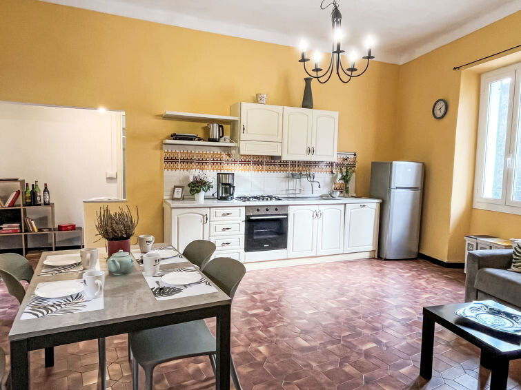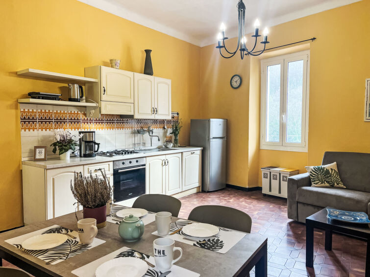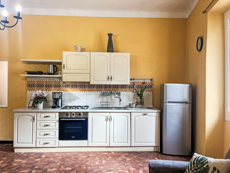 "Giove", appartement 2-kamers 50 m2, op verhoogde begane grond. Ruim en licht, gerenoveerd in 2024, smaakvol en gezellig ingericht: woon-/slaapkamer met 1 2-pers divanbed (1 x 160 cm, lengte 200 cm), eettafel, kookhoek en Sat-TV. Uitgang naar de tuin. 1 kamer met 1 2-pers bed (1 x 160 cm, lengte 200 cm). Kookhoek (oven, Gasfornuis, 4 kookpitten (vlammen), broodrooster, waterkoker, diepvriezer, elektrische koffiemachine) met eettafel. Douche/WC. Gas-verwarming. Balkon 6 m2, zithoek in de tuin. Terrasmeubelen, barbecue. Mooi uitzicht op de tuin en de plaats. Ter beschikking: wasmachine, strijkijzer, kinderstoel, kinderbed, haardroger. Internet (WiFi). Maximaal 1 huisdier/hond toegestaan. Privé ingang, rookmelders, brandblusser. IT008047C22UITOF52