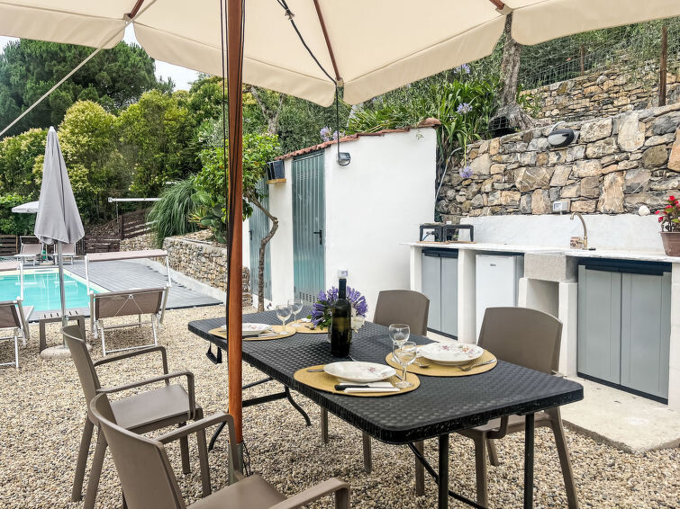 Mooi, comfortabel agriturismo "Borgo Olimpo", van 2 verdiepingen, gerenoveerd in 2024, omgeven door bomen en wijngaarden. 4 appartementen in de woning. In het centrum van Molini di Prelá, 3 km van het centrum van Dolcedo, 12 km van het centrum van Imperia, rustige, zonnige ligging, 12 km van zee. Voor medegebruik: terrein 1.000 m2, groot, mooie tuin op verschillende niveaus (omheind), ligweide, openluchtzwembad beveiligd, omheind (10 x 3 m, 140 - 140 cm diepte, seizoensgebonden beschikbaarheid: 01.Mei. - 10.Okt.). Douche/WC bij het zwembad, buitendouche, patio, terras, tuinmeubelen. Voor alleengebruik: wilde tuin, boomgaard. In het huis: internetaansluiting, Internet (WiFi), bergruimte voor fietsen. Kok op verzoek (extra). 10 m voetpad naar het huis. Openbare parkeerplaatsen 20 m. Levensmiddelenwinkel 200 m, supermarkt 1 km, winkelcentrum 12 km, restaurant, bar 20 m, bakkerij 200 m, café 20 m, fietsverhuur 4 km, bushalte 20 m, treinstation "Imperia Oneglia" 7 km, zandstrand "Borgo Marina Imperia" 15 km kiezelstrand "Borgo Prino" 12 km, stenenstrand "Borgo Foce Imperia" 12 km, meer (zwemmen) "laghetti" 500 m. Wandelroutes 10 m vanaf het huis, fietspad 12 km, kinderspeelplaats 50 m. Attracties in de buurt: Valloria (160 bemalte Türen) 4 km, Porto Maurizio Altstadt Parasio 12 km, Bussana Vecchia Erdbebendorf 25 km. Wandelgebied Monte Faudo. Auto noodzakelijk.