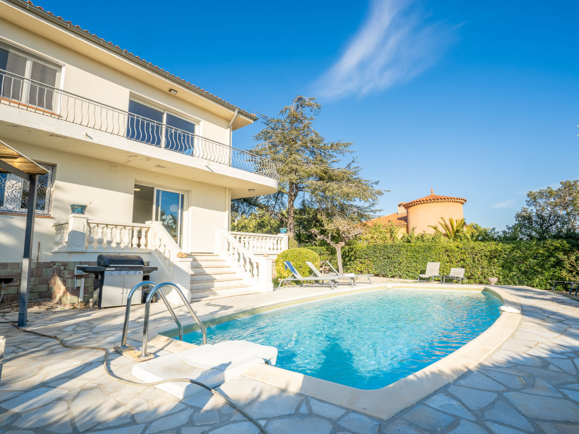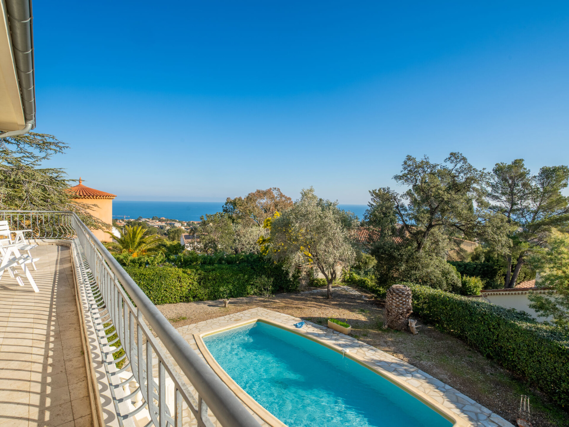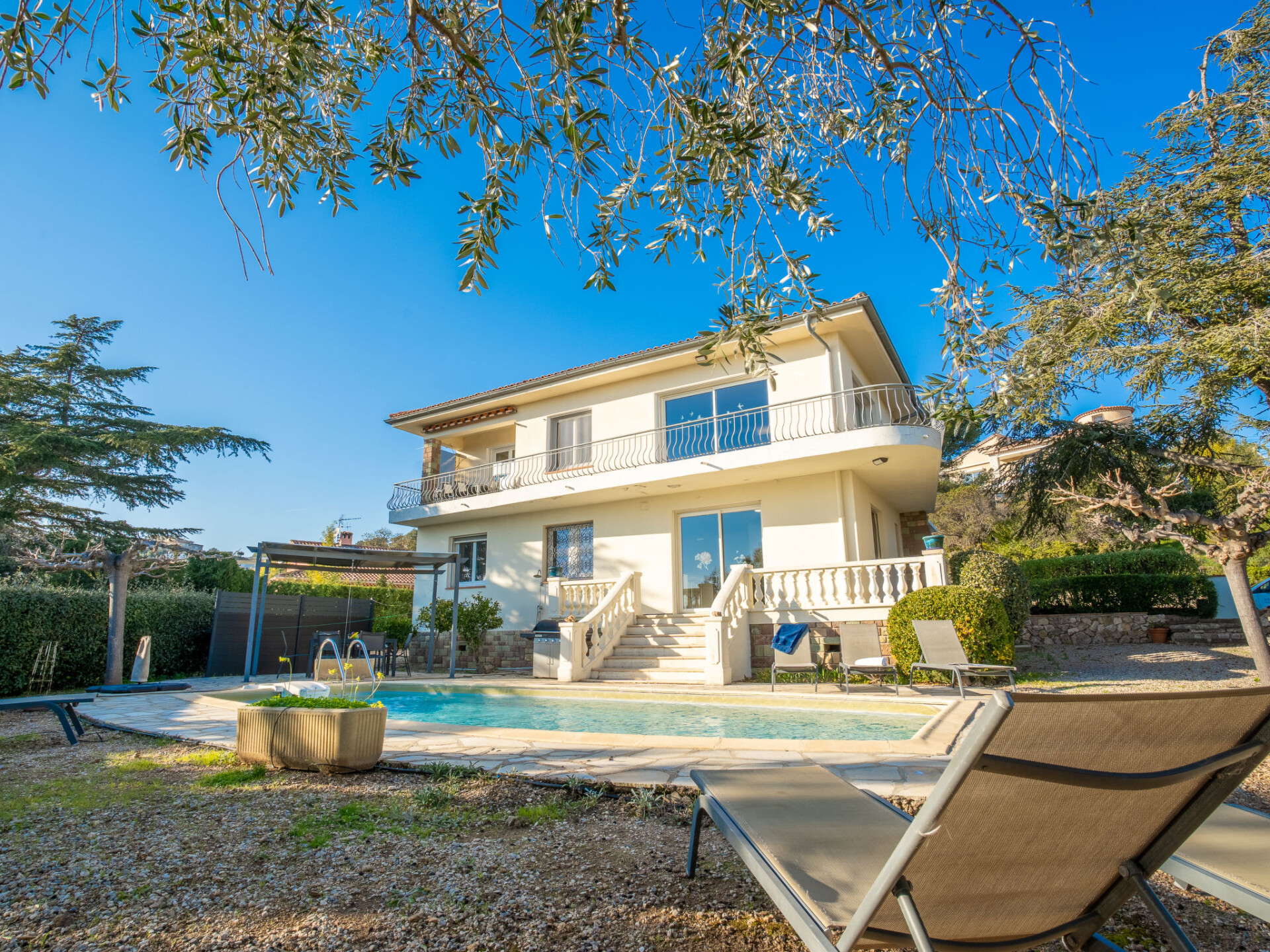 Huis met 2 woningen "Gisèle", van 2 verdiepingen. 2.4 km van het centrum van Saint Aygulf, rustige ligging in een woonwijk, 1.5 km van zee, 3 km van het strand. Voor alleengebruik: wild terrein 1.100 m2 (omheind), openluchtzwembad hoekig (8 x 4 m, 80 - 170 cm diepte, seizoensgebonden beschikbaarheid: 15.Apr. - 15.Okt.) met alarminstallatie. Buitendouche. Winkel 2.4 km, winkelcentrum 7.5 km, centrum te voet bereikbaar in 30 minuten, bushalte "Saint-Aygulf La Poste" 2.4 km, treinstation "Fréjus" 8.5 km, zandstrand "Saint Aygulf" 4 km, park "Areca" 2.6 km, duikschool 8.5 km, thermaalbad "Thalasso de Port Fréjus" 8.5 km. Jachthaven 3 km, golfterrein (18 holes) 11 km, zeilschool 10 km, manege 4 km, sportcentrum 2.5 km. Attracties in de buurt: Aqualand, Luna Park 7 km, Fréjus 8 km, Saint Raphaël 9 km, Saint Tropez 30 km, Cannes 47 km, Nice 73 km. Bekende skigebieden kunnen gemakkelijk worden bereikt: Auron, Isola 2000 150 km. Bekende meren kunnen gemakkelijk worden bereikt: Lac de St Cassien 45 km, Lac du Du Verdon 90 km. Wandelgebied Estérel 18 km, Sentier du Littoral 2.5 km. Auto noodzakelijk. De eigenaar accepteert geen jeugdgroepen. De sleuteloverdracht vindt plaats bij het agentschap Interhome in Saint Aygulf.