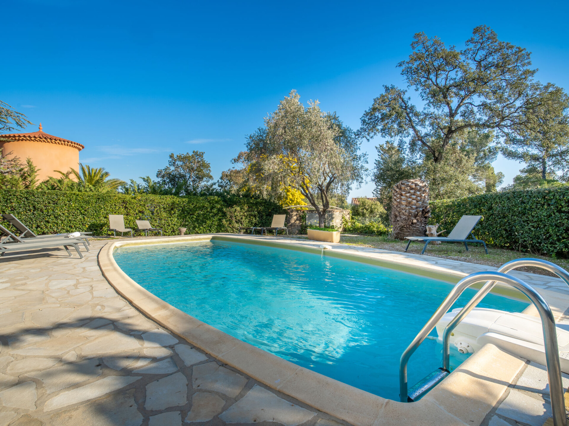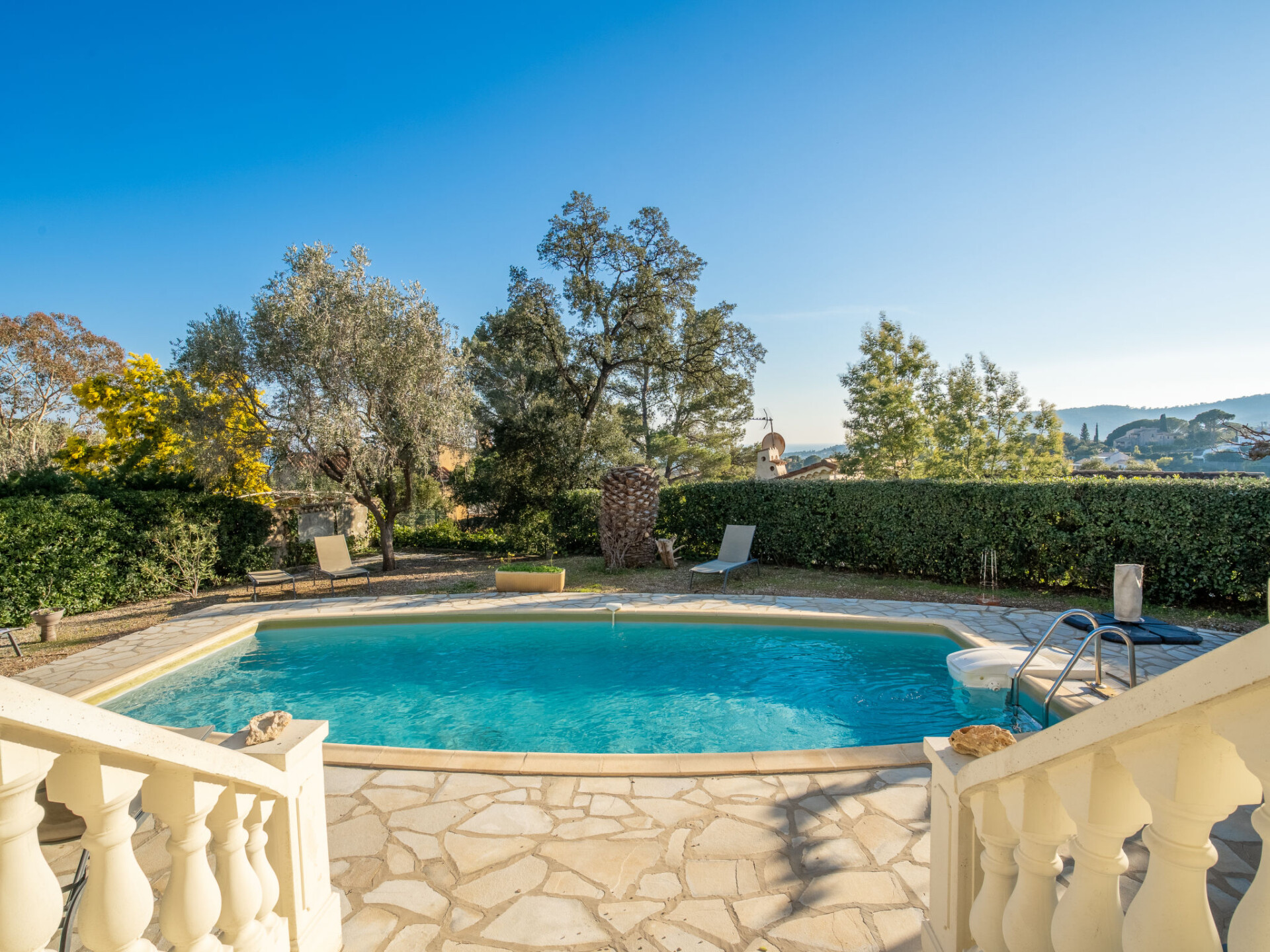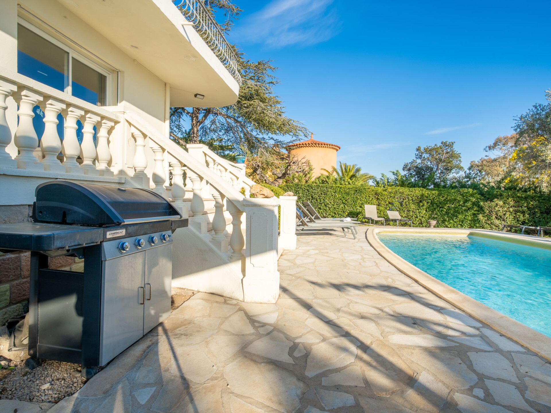 Huis met 2 woningen "Gisèle", van 2 verdiepingen. 2.4 km van het centrum van Saint Aygulf, rustige ligging in een woonwijk, 1.5 km van zee, 3 km van het strand. Voor alleengebruik: wild terrein 1.100 m2 (omheind), openluchtzwembad hoekig (8 x 4 m, 80 - 170 cm diepte, seizoensgebonden beschikbaarheid: 15.Apr. - 15.Okt.) met alarminstallatie. Buitendouche. Winkel 2.4 km, winkelcentrum 7.5 km, centrum te voet bereikbaar in 30 minuten, bushalte "Saint-Aygulf La Poste" 2.4 km, treinstation "Fréjus" 8.5 km, zandstrand "Saint Aygulf" 4 km, park "Areca" 2.6 km, duikschool 8.5 km, thermaalbad "Thalasso de Port Fréjus" 8.5 km. Jachthaven 3 km, golfterrein (18 holes) 11 km, zeilschool 10 km, manege 4 km, sportcentrum 2.5 km. Attracties in de buurt: Aqualand, Luna Park 7 km, Fréjus 8 km, Saint Raphaël 9 km, Saint Tropez 30 km, Cannes 47 km, Nice 73 km. Bekende skigebieden kunnen gemakkelijk worden bereikt: Auron, Isola 2000 150 km. Bekende meren kunnen gemakkelijk worden bereikt: Lac de St Cassien 45 km, Lac du Du Verdon 90 km. Wandelgebied Estérel 18 km, Sentier du Littoral 2.5 km. Auto noodzakelijk. De eigenaar accepteert geen jeugdgroepen. De sleuteloverdracht vindt plaats bij het agentschap Interhome in Saint Aygulf.