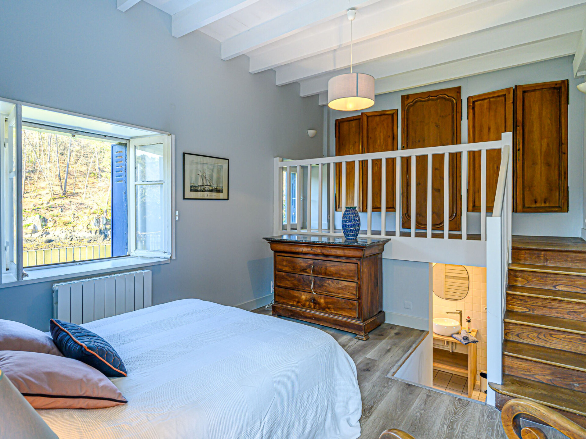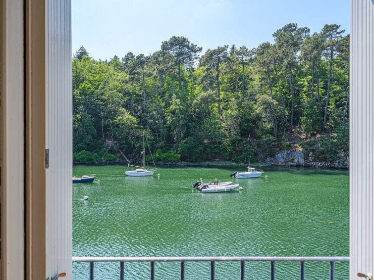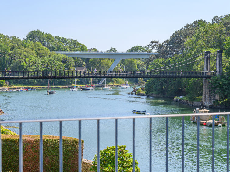 "Glann Aven", huis 6-kamers 125 m2 op 3 verdiepingen, op het zuiden gelegen. Mooi ingericht: hal. Groot woon-/eetkamer met open haard (alleen decoratie), eettafel en TV (Flatscreen TV). Keuken (oven, afwasmachine, 4 keramische glas kookplaten, broodrooster, waterkoker, magnetron, elektrische koffiemachine) met kleine eettafel. Souterrain: 1 kamer met 1 2-pers bed (140 cm, lengte 190 cm). Badkamer, aparte WC, dubbele wastafels. Elektrische verwarming. Bovenverdieping: 3 kamers met afgeschuinde daken, elke kamer heeft 1 2-pers bed (140 cm, lengte 190 cm). 1 kamer met 1 x 2 stapelbedden (90 cm, lengte 190 cm). Badkamer, aparte WC, dubbele wastafels. Terrasmeubelen, ligstoelen (3). Mooi uitzicht op de rivier. Ter beschikking: wasmachine, strijkijzer, haardroger. Internet(WiFi), gratis). Rookvrij huis. Rookmelders. Aanbod door een particulier volgens art. 155, IV van CGI.