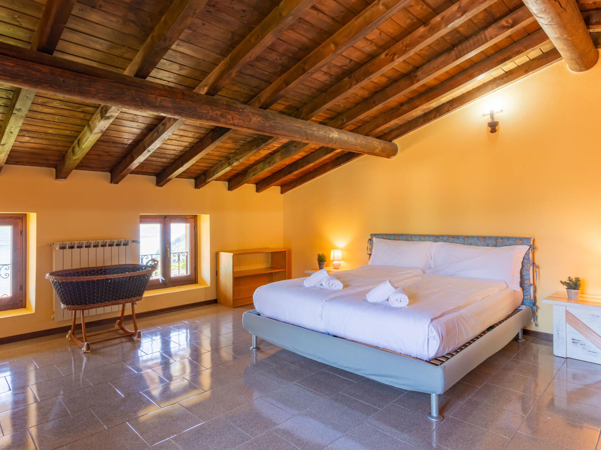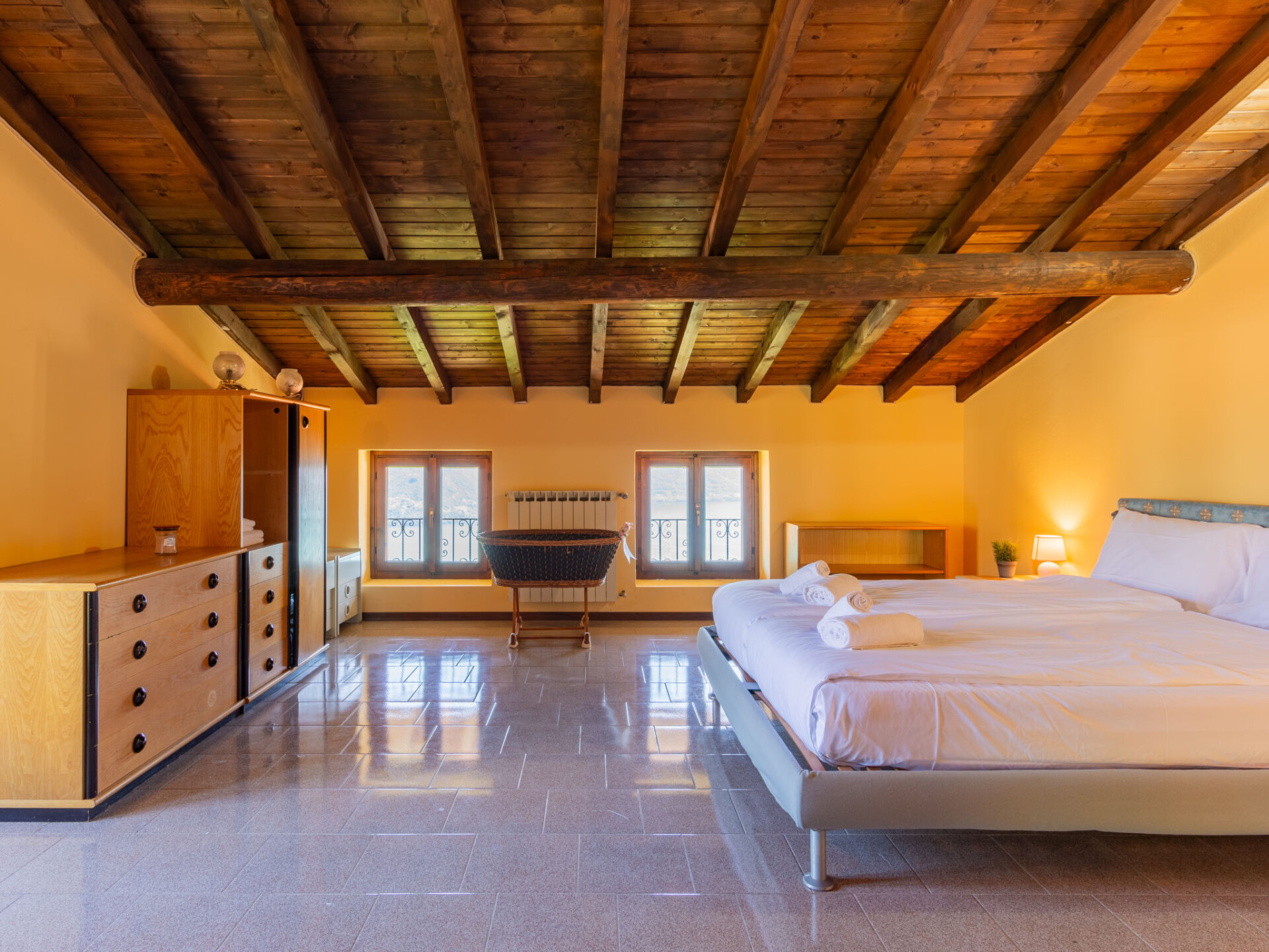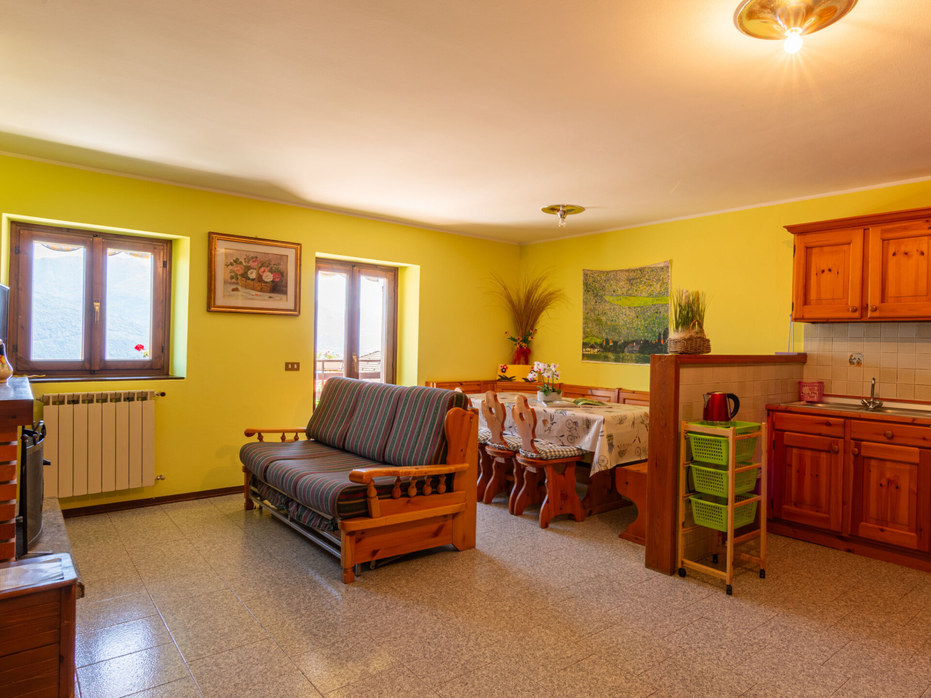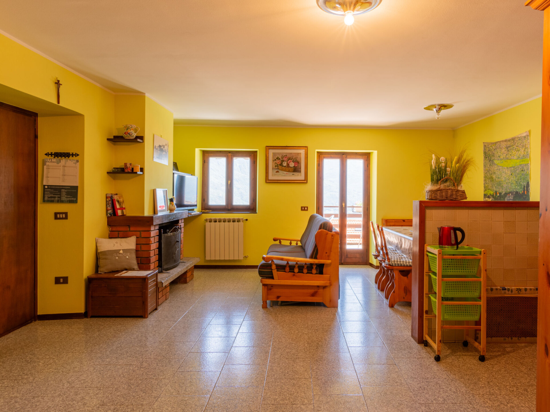Huis 4-kamers 120 m2 op 3 verdiepingen. Ruim, doelmatig en rustiek ingericht: woon-/eetkamer met open haard, eettafel en TV (Flatscreen TV). Uitgang naar de tuin, naar het terras. Kleine, open keuken (oven, Gasfornuis, 4 kookpitten (vlammen), broodrooster, waterkoker, magnetron). Aparte WC. Bovenverdieping: 1 2-pers. kamer met TV (Flatscreen TV). Uitgang naar het balkon. 1 kamer met 1 x 2 stapelbedden. Uitgang naar het balkon. Bad/douche/bidet/WC. 2e Verdieping: groot woon-/slaapkamer met 1 2-pers divanbed, 1 2-pers bed en TV (Flatscreen TV). Uitgang naar het balkon. Douche/bidet/WC. Olie-verwarming. Verwarming alleen beschikbaar van 15.10. tot 30.04. Natuurstenen vloeren. 3 balkons, groot terras, tuin. Terrasmeubelen, ligstoelen (4). Mooi panoramazicht op het meer, de bergen en de plaats. Ter beschikking: Internet (Internet (WiFi), gratis). Rookvrij huis. Maximaal 2 huisdieren/honden toegestaan. IT013218C24G6IK2RX