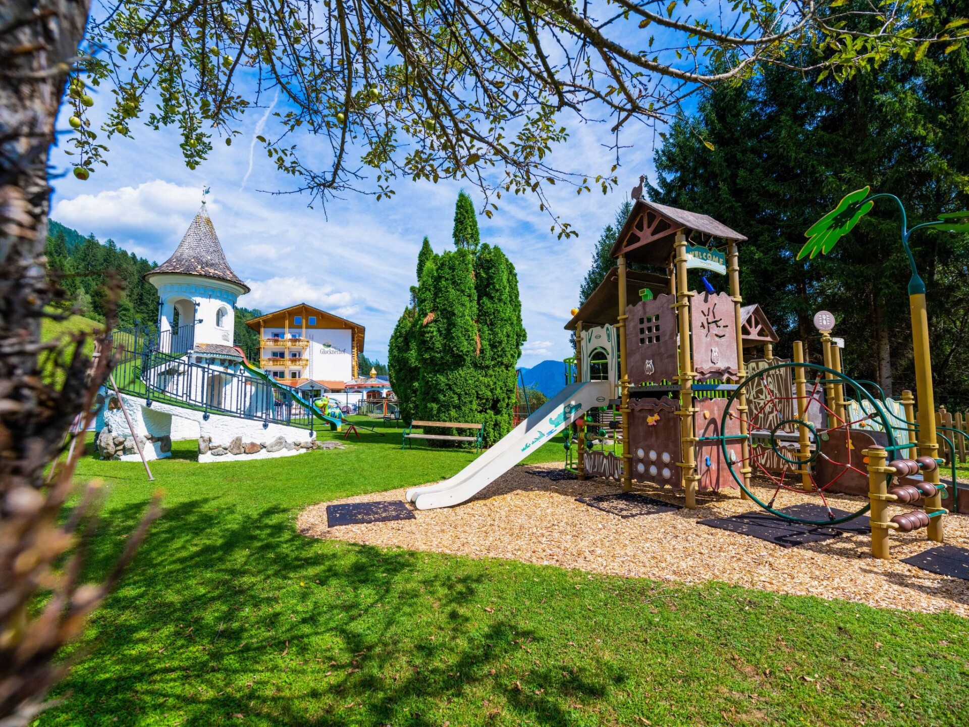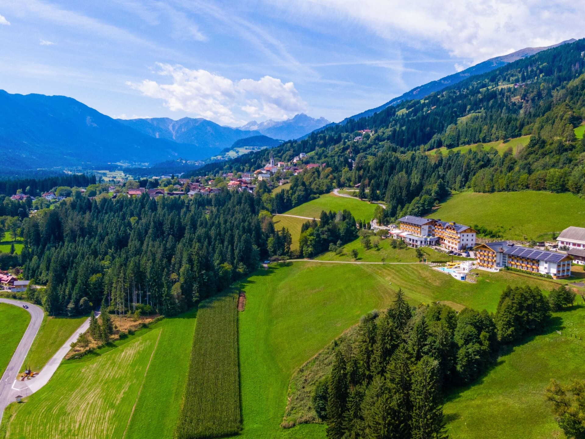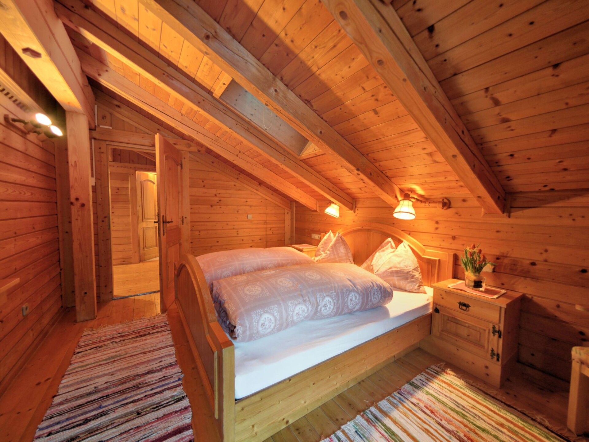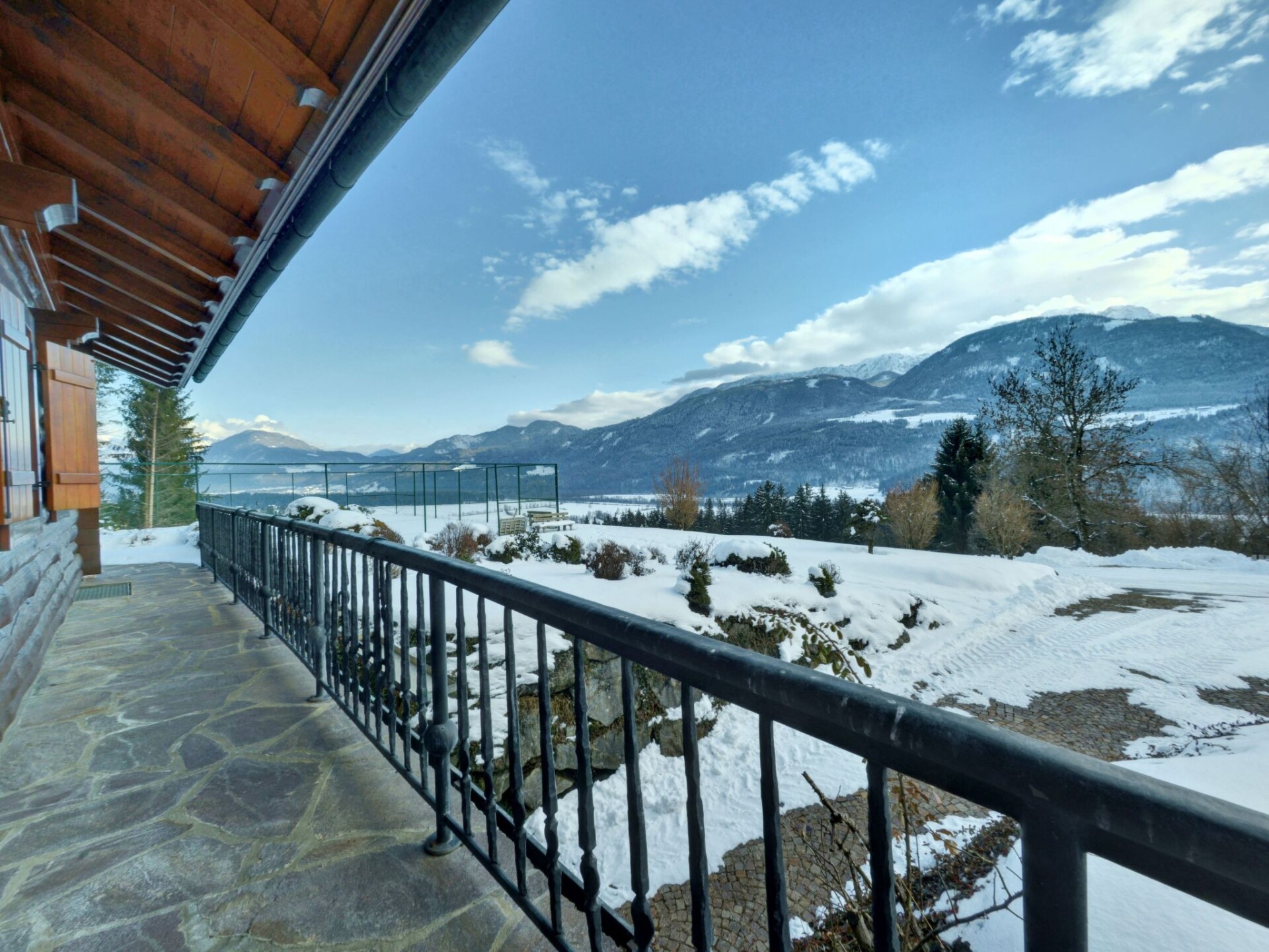 This holiday home in the Carinthian Oberdrautal, a cosy wooden log cabin in organic construction, offers plenty of comfort and enough space for 2 to 10 people. Whether you are travelling as a couple, with your family or with a group of friends, you will feel right at home here. The house is located slightly away from the Ferienhotel Glocknerhof on a quiet, sunny hill (700 m) on the edge of the forest with views across the Drau Valley to Lake Weissensee and can be booked for two to ten people.There is also a large terrace on the ground floor and a balcony on the upper floor. The private driveway is cleared in winter and a car park is also available.There is a cosy lounge with a fireplace, a well-equipped eat-in kitchen and TV corner on the ground floor as well as a parlour with a separate flat. On the upper floor there are two bedrooms with double beds. The bathroom has a whirlpool bath and WC and there is a separate WC. WLAN is available and you will find mineral water when you move in. The flat has a cosy wooden interior and a wood-burning stove to create a feel-good atmosphere and the modern furnishings leave nothing to be desired.And to balance things out, tennis and morning sports are right on the doorstep. Distances: 175 km to Salzburg, 300 km to Munich. Berg im Drautal is the starting point for hikes in the Carinthian Oberland, for water sports adventures at the famous Carinthian bathing lakes and rally trips to Italy, South Tyrol and Slovenia. The holiday village offers all the main sports facilities, in winter skiing, cross-country skiing and ice sports, in summer golf, tennis, horse riding, hiking, mountain biking and model flying. Explore a landscape of flowering meadows, clear lakes and streams as well as rugged mountains offering breathtaking views. Shopping facilities can be found within a KM.Guests can use all the leisure facilities of the nearby main hotel free of charge. Breakfast and gourmet board are available for an extra charge.