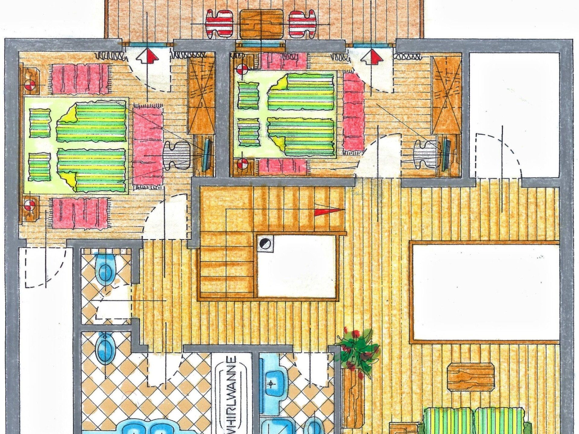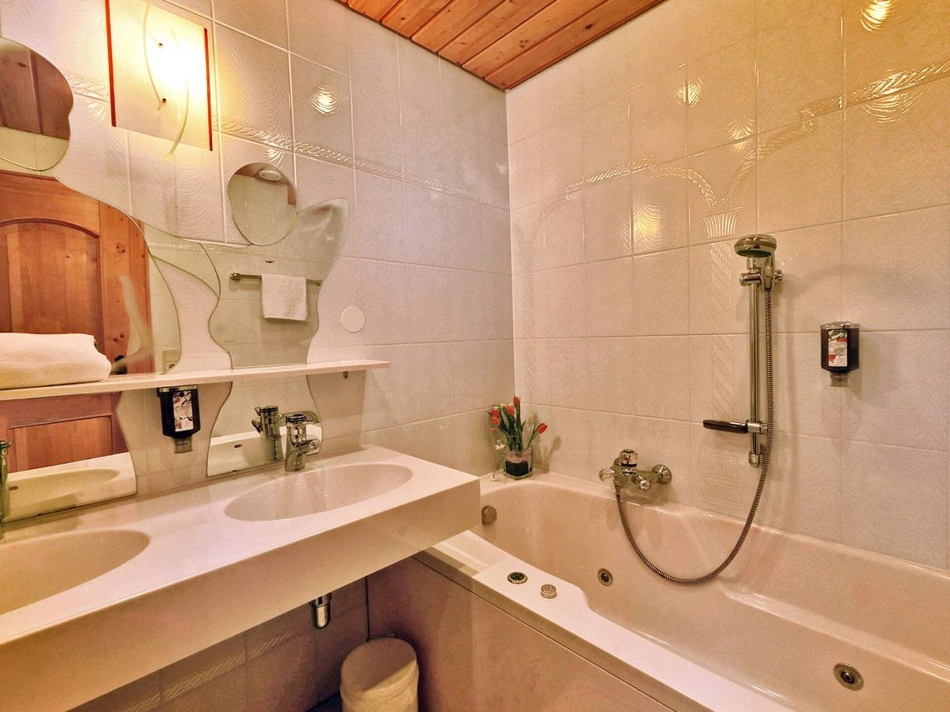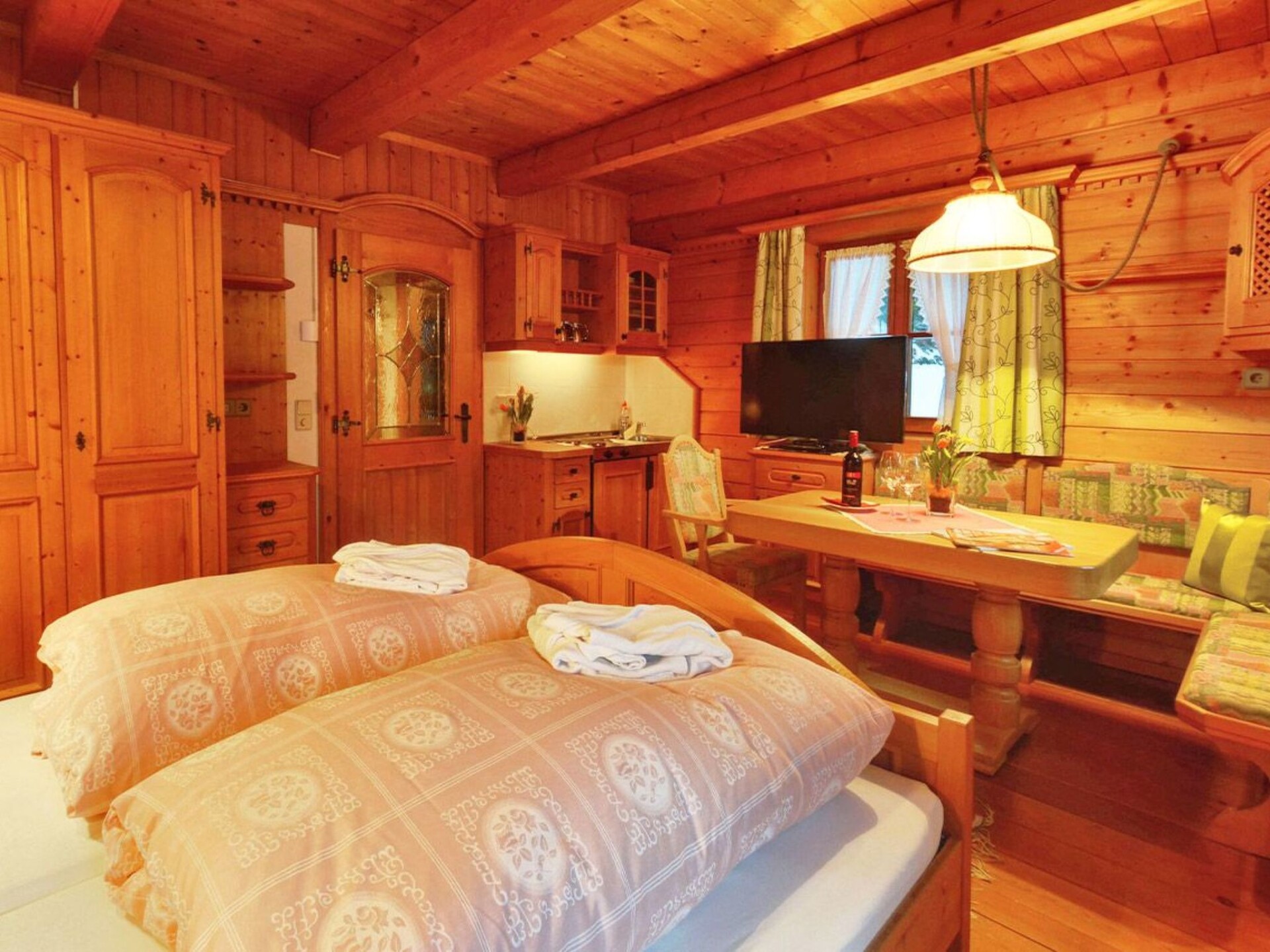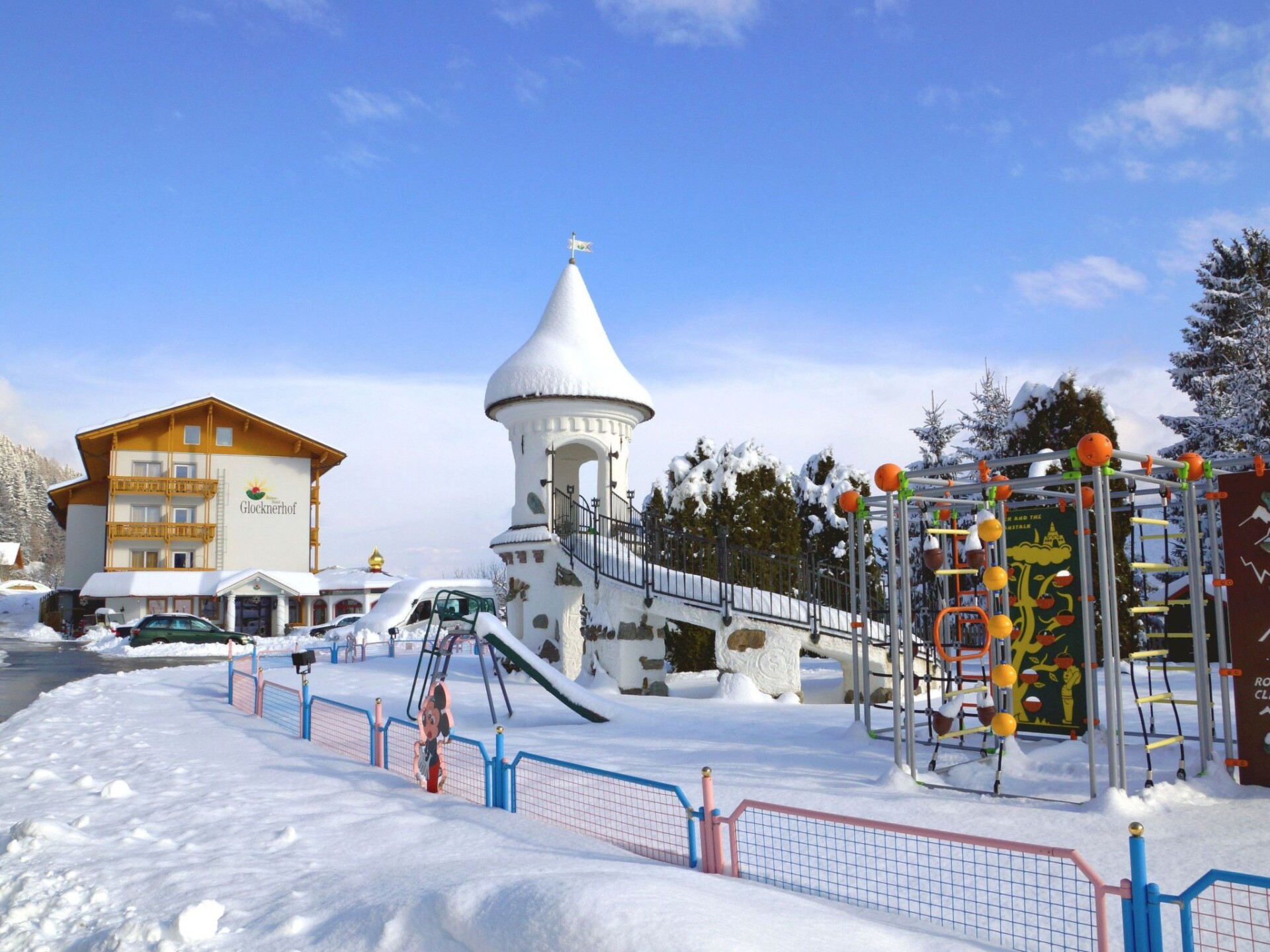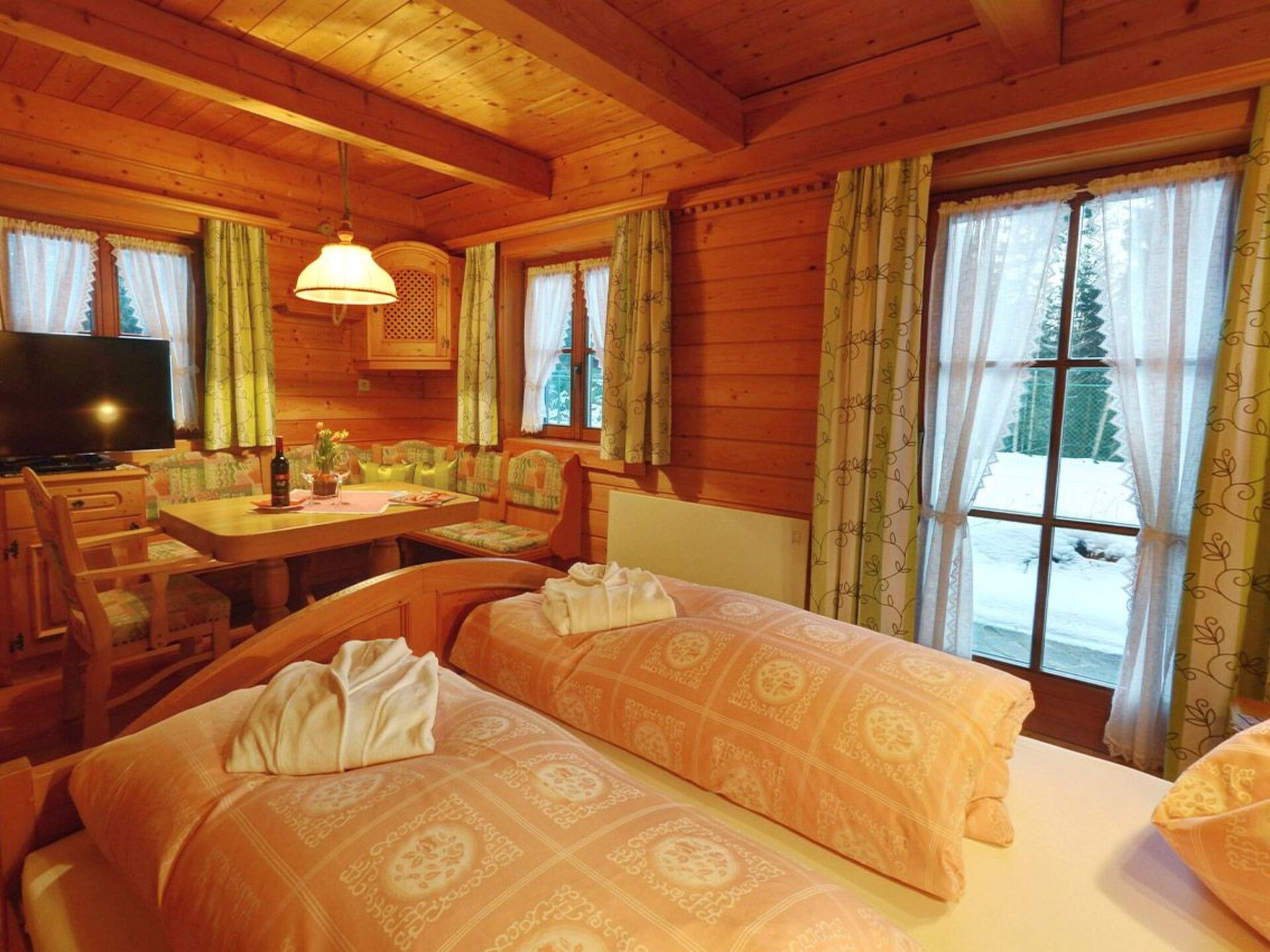 This holiday home in the Carinthian Oberdrautal, a cosy wooden log cabin in organic construction, offers plenty of comfort and enough space for 2 to 10 people. Whether you are travelling as a couple, with your family or with a group of friends, you will feel right at home here. The house is located slightly away from the Ferienhotel Glocknerhof on a quiet, sunny hill (700 m) on the edge of the forest with views across the Drau Valley to Lake Weissensee and can be booked for two to ten people.There is also a large terrace on the ground floor and a balcony on the upper floor. The private driveway is cleared in winter and a car park is also available.There is a cosy lounge with a fireplace, a well-equipped eat-in kitchen and TV corner on the ground floor as well as a parlour with a separate flat. On the upper floor there are two bedrooms with double beds. The bathroom has a whirlpool bath and WC and there is a separate WC. WLAN is available and you will find mineral water when you move in. The flat has a cosy wooden interior and a wood-burning stove to create a feel-good atmosphere and the modern furnishings leave nothing to be desired.And to balance things out, tennis and morning sports are right on the doorstep. Distances: 175 km to Salzburg, 300 km to Munich. Berg im Drautal is the starting point for hikes in the Carinthian Oberland, for water sports adventures at the famous Carinthian bathing lakes and rally trips to Italy, South Tyrol and Slovenia. The holiday village offers all the main sports facilities, in winter skiing, cross-country skiing and ice sports, in summer golf, tennis, horse riding, hiking, mountain biking and model flying. Explore a landscape of flowering meadows, clear lakes and streams as well as rugged mountains offering breathtaking views. Shopping facilities can be found within a KM.Guests can use all the leisure facilities of the nearby main hotel free of charge. Breakfast and gourmet board are available for an extra charge.