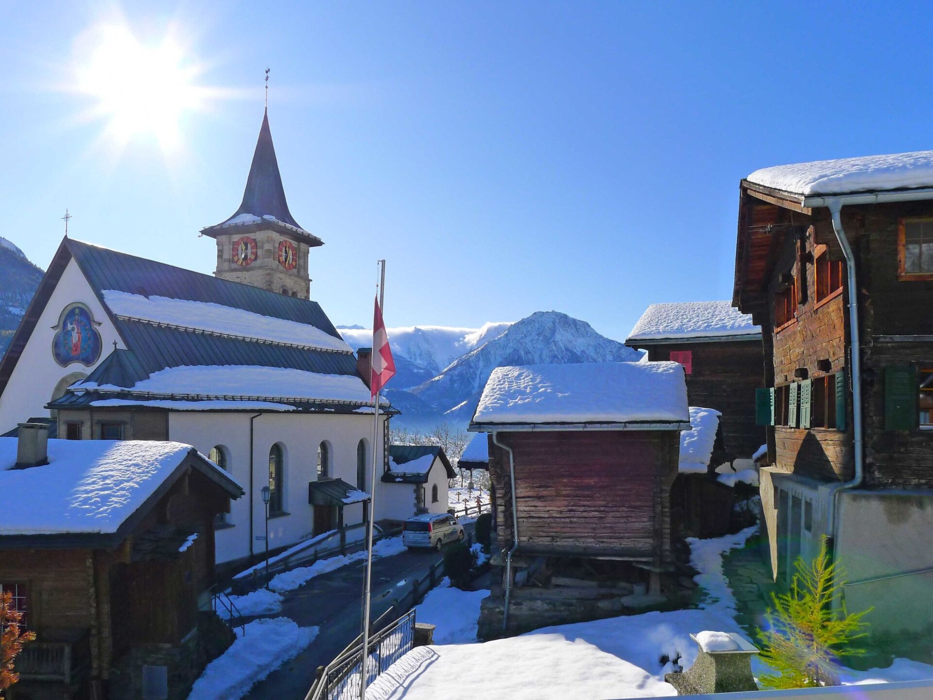 Ried-Mörel 10 km van Brig: Gezellige, rustieke eengezinswoning "Godo", 1.150 m boven zeeniveau, van 3 verdiepingen. In het centrum, rustige, zonnige ligging tegen een helling, 500 m van het skigebied. Voor alleengebruik: terrein, ligweide 30 m2. (zandbak). In het huis: bergruimte voor fietsen, berging voor ski's, centrale verwarming, wasmachine, droogruimte. Smalle toegangsweg tot aan het huis (bergweg). In de winter sneeuwkettingen aanbevolen, 's winters 4x4 aanbevolen. Parkeerplaats (voor 2 auto's) bij het huis, eigen garage, openbare parkeerplaatsen 30 m. Levensmiddelenwinkel, restaurant 500 m, bushalte "Ried-Mörel" 500 m. Skilift 1 km, kabelbaan op 500 m, ski faciliteiten 1 km, skipisten 1 km, skischool 1 km, rodelbaan 1 km, langlaufloipe 1 km, kinderspeelplaats 500 m. Attracties in de buurt: UNESCO Welterbe Aletsch 1 km. Bekende skigebieden kunnen gemakkelijk worden bereikt: Aletsch Arena Riederalp 1 km.