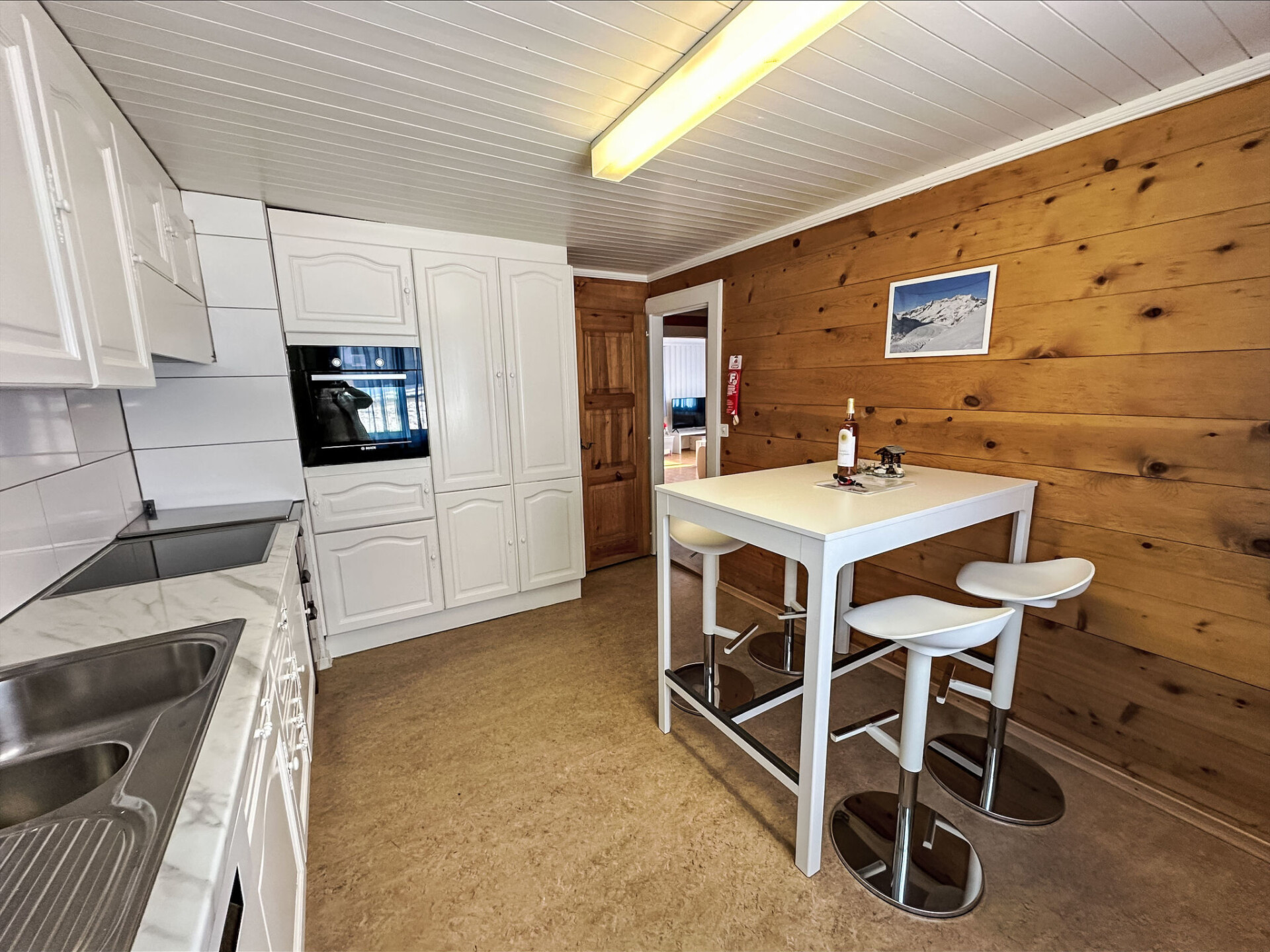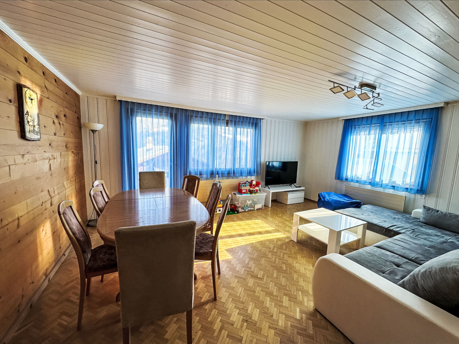 Chalet 7-kamers 100 m2. Gezellig ingericht: woonkamer met Kabel-TV (Flatscreen TV). Uitgang naar het balkon, naar de zitplaats in de tuin. 2 2-pers. kamers. Keuken (oven, afwasmachine, 4 inductiekookplaten, broodrooster, waterkoker, elektrische koffiemachine, pads voor de koffiemachine (Nespresso) extra) met eettafel. Douche/WC. Bovenverdieping: 4 kamers, elke kamer heeft 1 bed. Bad/WC. Balkon 20 m2, zithoek in de tuin 40 m2. Terrasmeubelen, barbecue. Mooi panoramazicht op de bergen, het landschap en de plaats. Ter beschikking: wasmachine, kinderstoel, kinderbed (extra). Internet (Internet (WiFi), gratis). Parkeerplaats (2 Auto's), garage bij het huis. Geschikt voor families. Niet rokers woning.