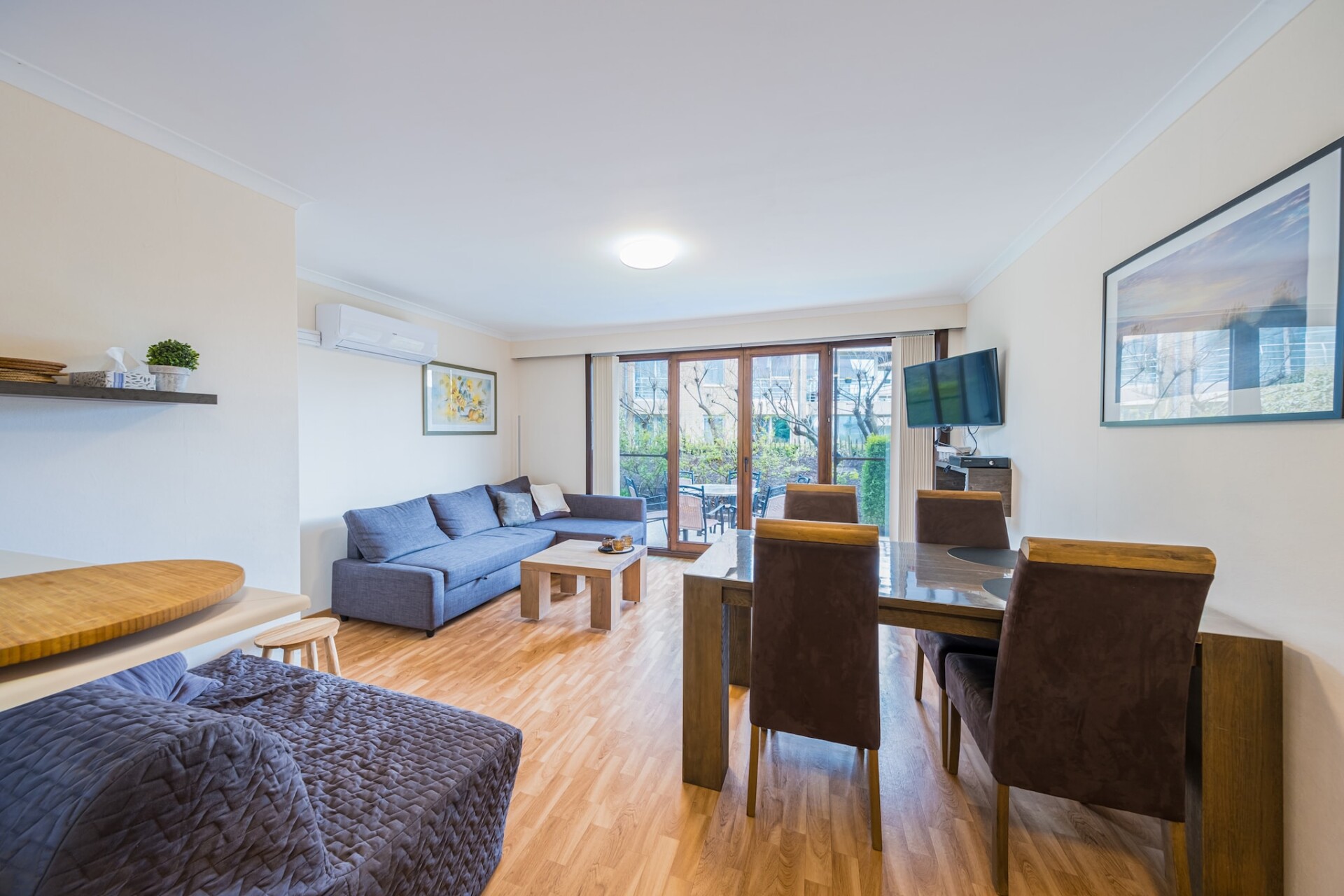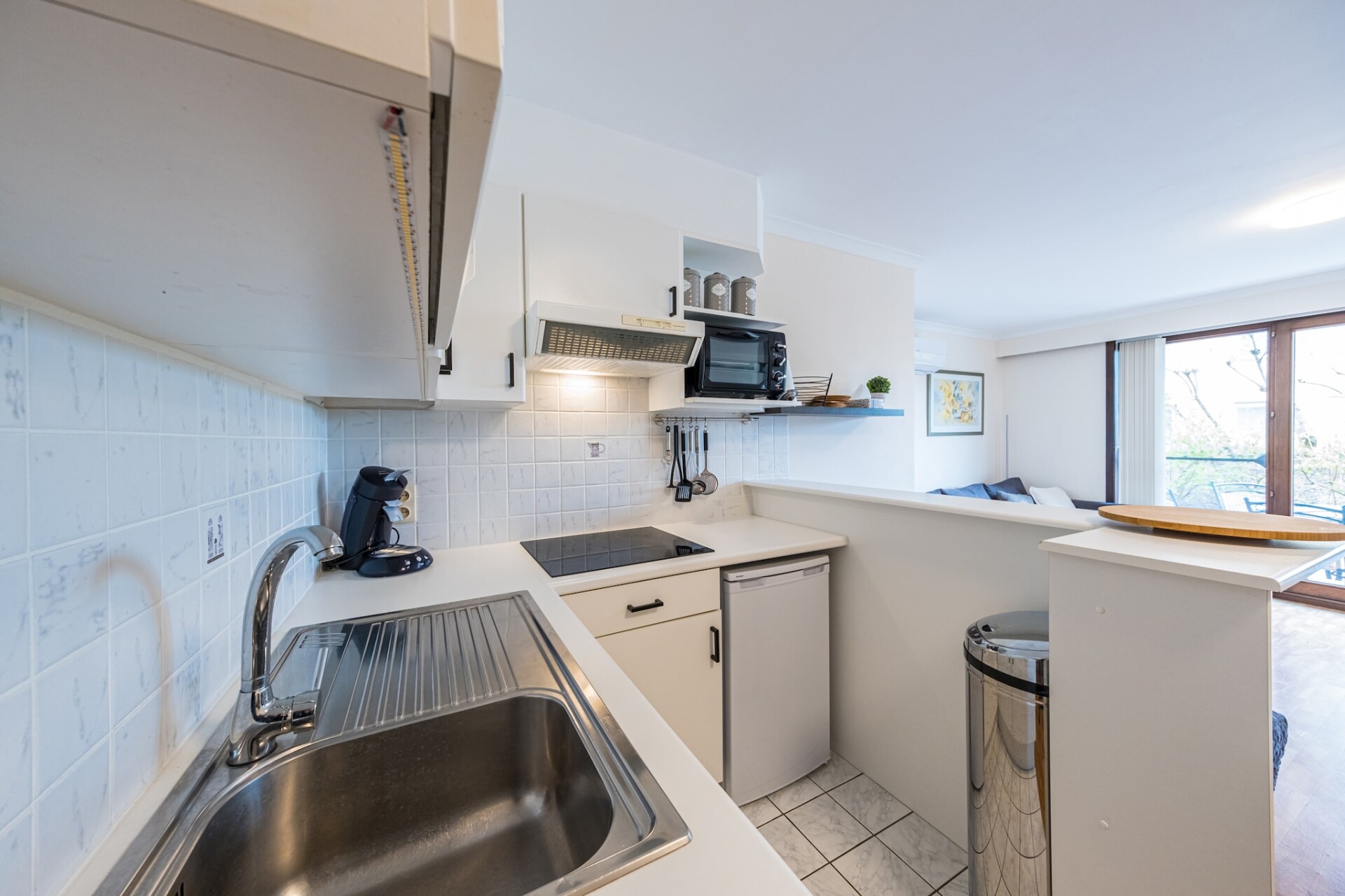 Dit charmante appartement op de gelijkvloerse verdieping beschikt over één slaapkamer met een comfortabel dubbel bed en een gezellige woonkamer met zetelbed voor twee personen. De open, volledig ingerichte keuken biedt alles wat je nodig hebt voor een ontspannen verblijf, terwijl de volledig vernieuwde badkamer is uitgerust met toilet en modern comfort. Buiten vind je een ruim terras, ideaal om gezellig te ontbijten, lunchen of gewoon even van het zonnetje te genieten. Het appartement is rustig gelegen in een groene omgeving, binnen een sfeervol vakantiedomein met openluchtzwembad. Het zwembad is geopend van eind mei tot 15 september, dagelijks van 7u30 tot 19u. De perfecte plek voor een ontspannende vakantie midden in het groen! Wifi: neen - parking: inbegrepen - lakens: zelf meenemen - handdoeken: zelf meenemen.
