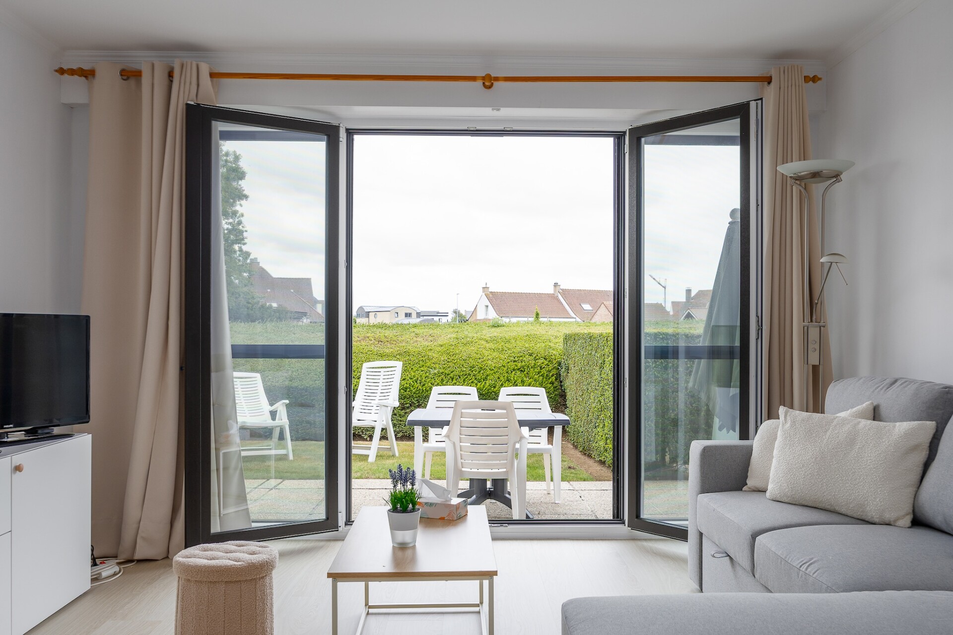 Welkom in uw rustige toevluchtsoord aan de kust in Middelkerke, een charmant appartement op de begane grond, gelegen in een weelderig groen vakantiepark. Dit knusse toevluchtsoord beschikt over een rustige slaapkamer met een tweepersoonsbed en een gezellige woonkamer met een slaapbank voor twee extra gasten, waardoor het perfect is voor stellen of kleine gezinnen.
