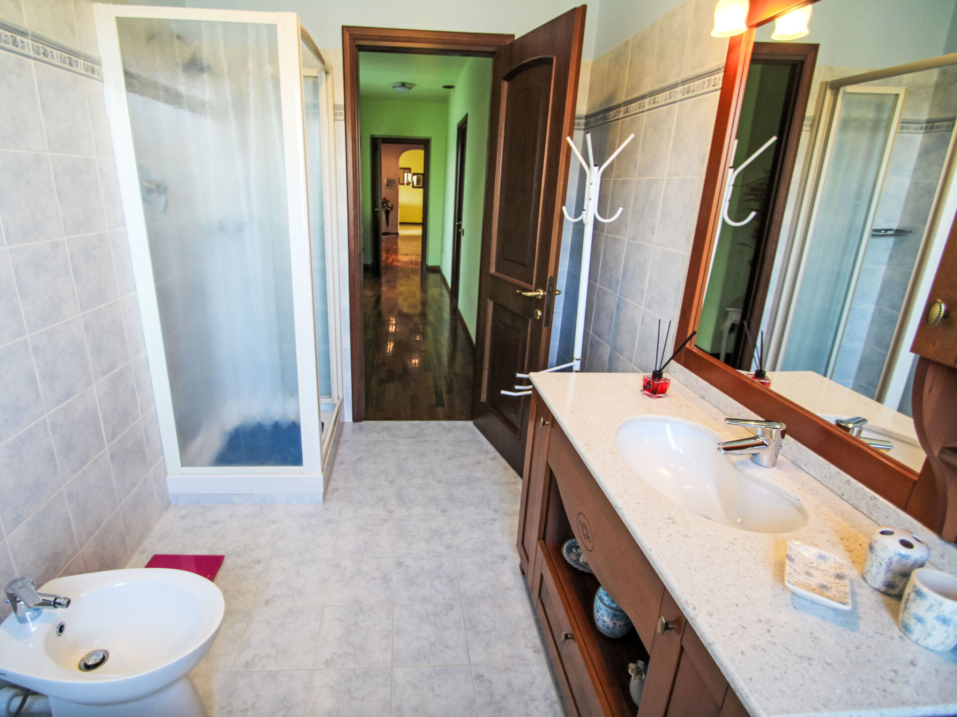 "Green Haven", appartement 4-kamers 120 m2 op de 1e verdieping. Doelmatig en gezellig ingericht: hal. Woonkamer met TV. 1 2-pers. kamer met air-conditioning. 1 2-pers. kamer met ventilator. 1 kamer met 2 bedden. Keuken (4-pits kookplaat, oven, afwasmachine, magnetron, elektrische koffiemachine). Bad/bidet/WC, douche/bidet/WC. Gas-verwarming. Verwarming alleen beschikbaar van 15.10. tot 15.04. Balkon 10 m2. Balkonmeubilair. Ter beschikking: haardroger. Internet (WiFi, gratis). Rookmelders, brandblusser. IT012035C2PBVFHXZH