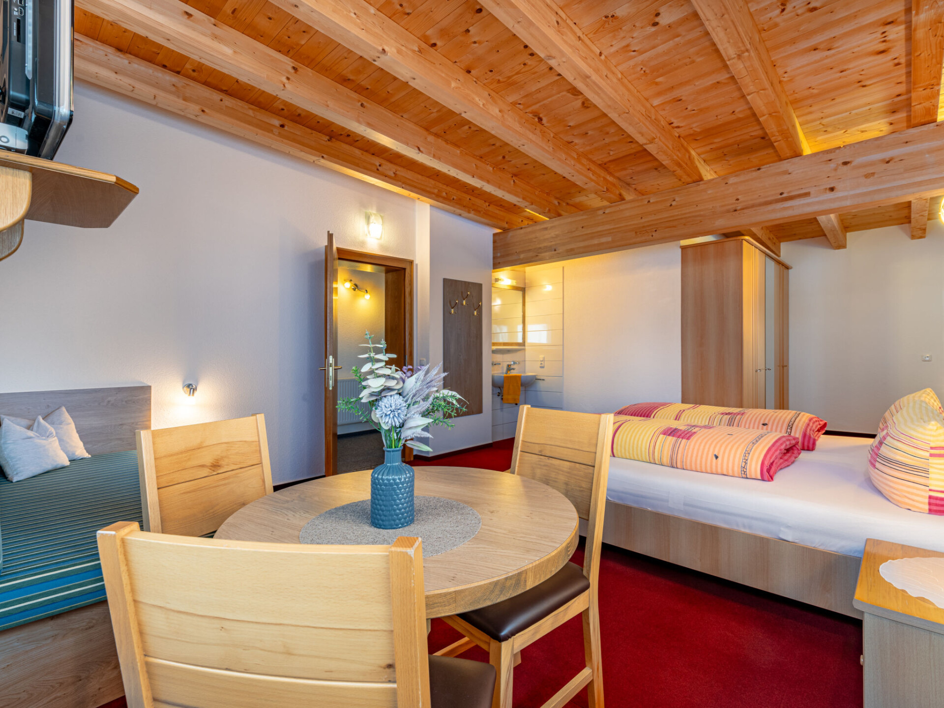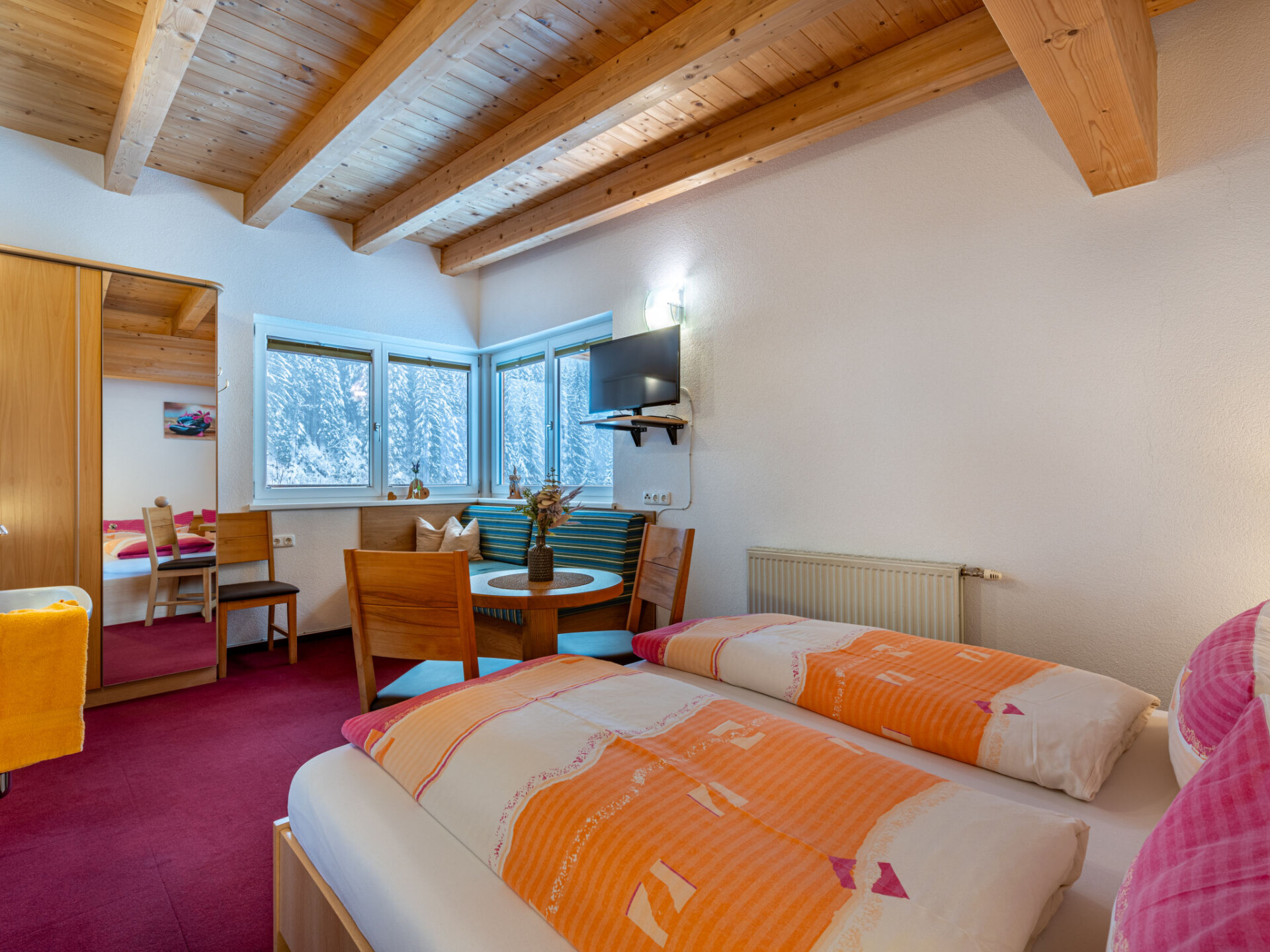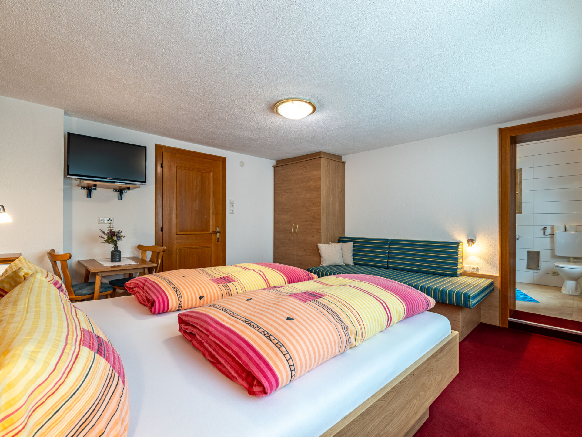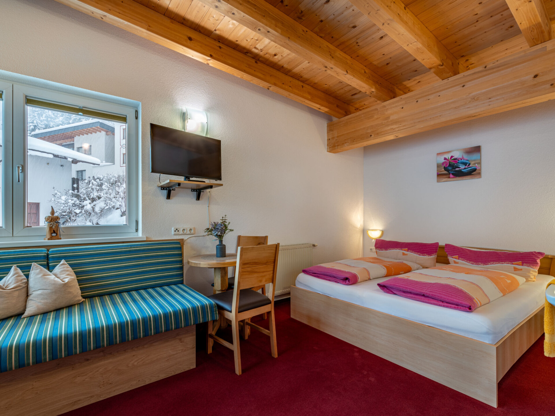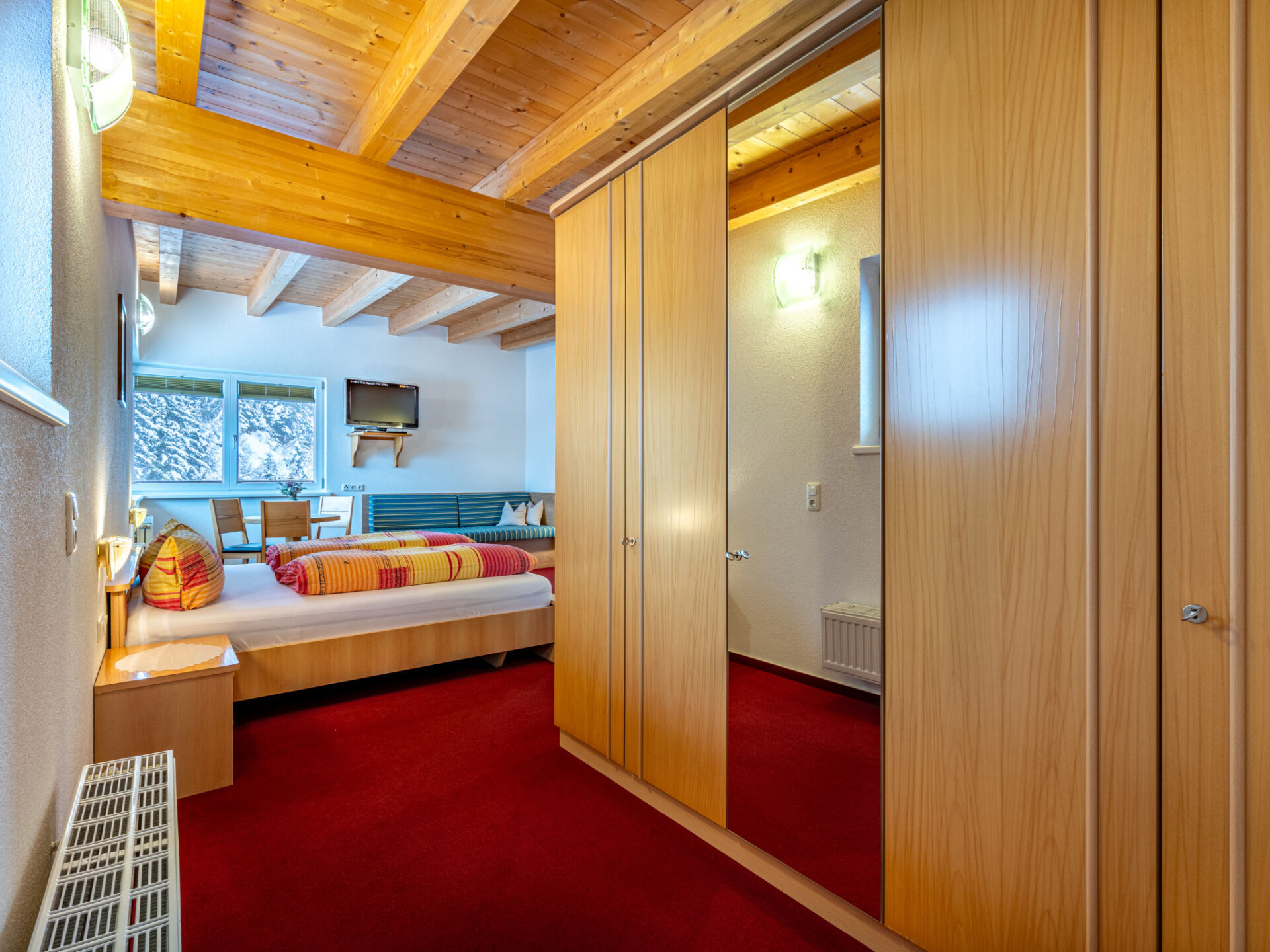 "Grissemann", appartement 5-kamers 120 m2 op 2 verdiepingen. Licht, mooi en rustiek ingericht: Bovenverdieping: (buitentrap), 1 kamer met 1 divanbed, 1 2-pers bed, bad/WC en Sat-TV. 1 kamer met 1 bed, 1 2-pers bed, wastafel en Sat-TV. Woonkeuken (oven, afwasmachine, 4 keramische glas kookplaten, waterkoker, magnetron, elektrische koffiemachine) met eettafel, Sat-TV. Douche, aparte WC. 2e Verdieping: 2 kamers, elke kamer heeft 1 divanbed, 1 2-pers bed, wastafel en Sat-TV. Douche, aparte WC. Vloerbedekking. 2 balkons. Ter beschikking: kluis, kinderbed. Internet (Internet (WiFi), gratis). Privé ingang, rookmelders, brandblusser.