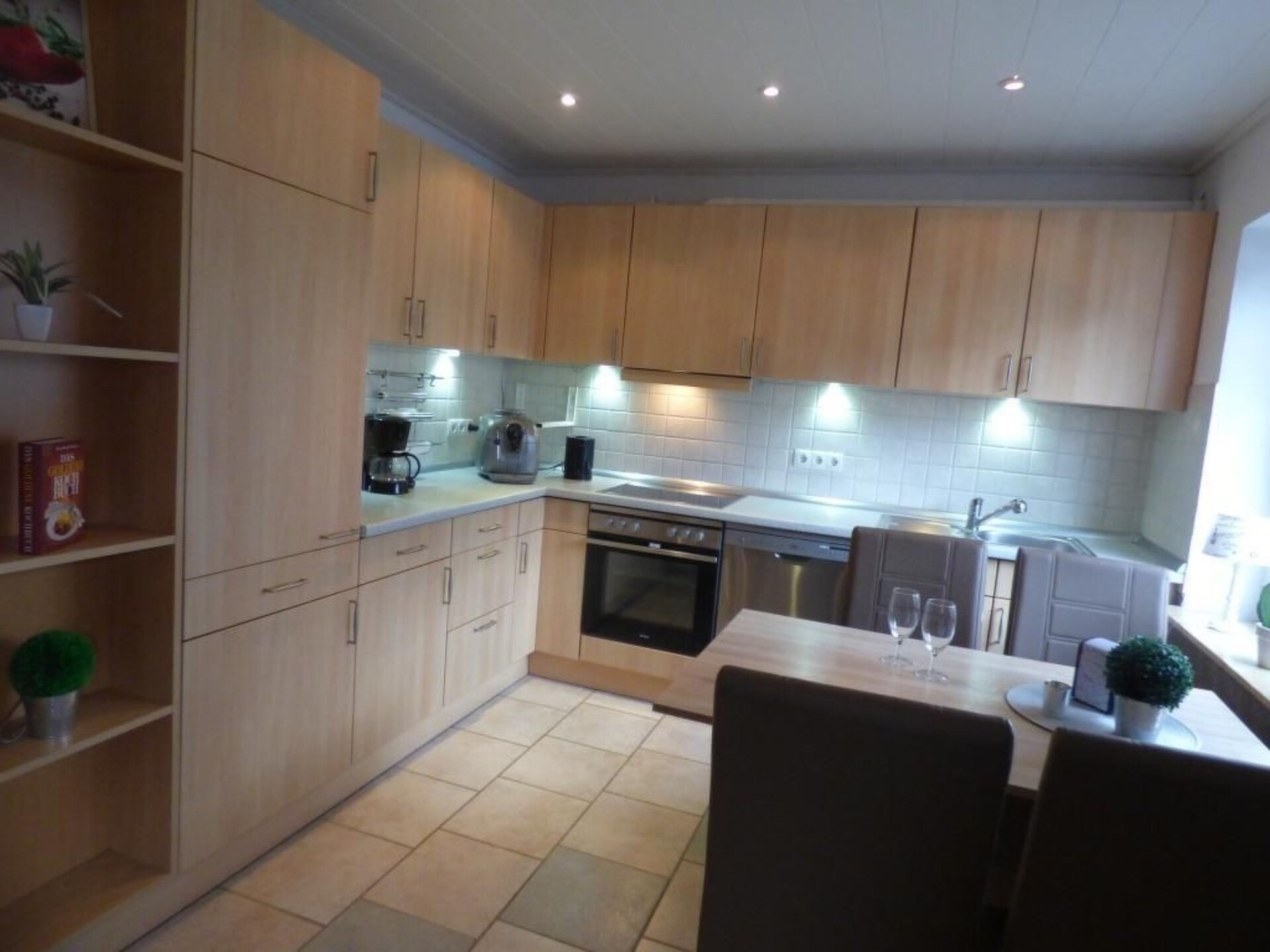 De keuken is volledig uitgerust met een koffiezetapparaat, waterkoker, broodrooster, koelkast en vaatwasser. Een moderne tafel met zeer comfortabele stoelen nodigt je uit om te dineren.