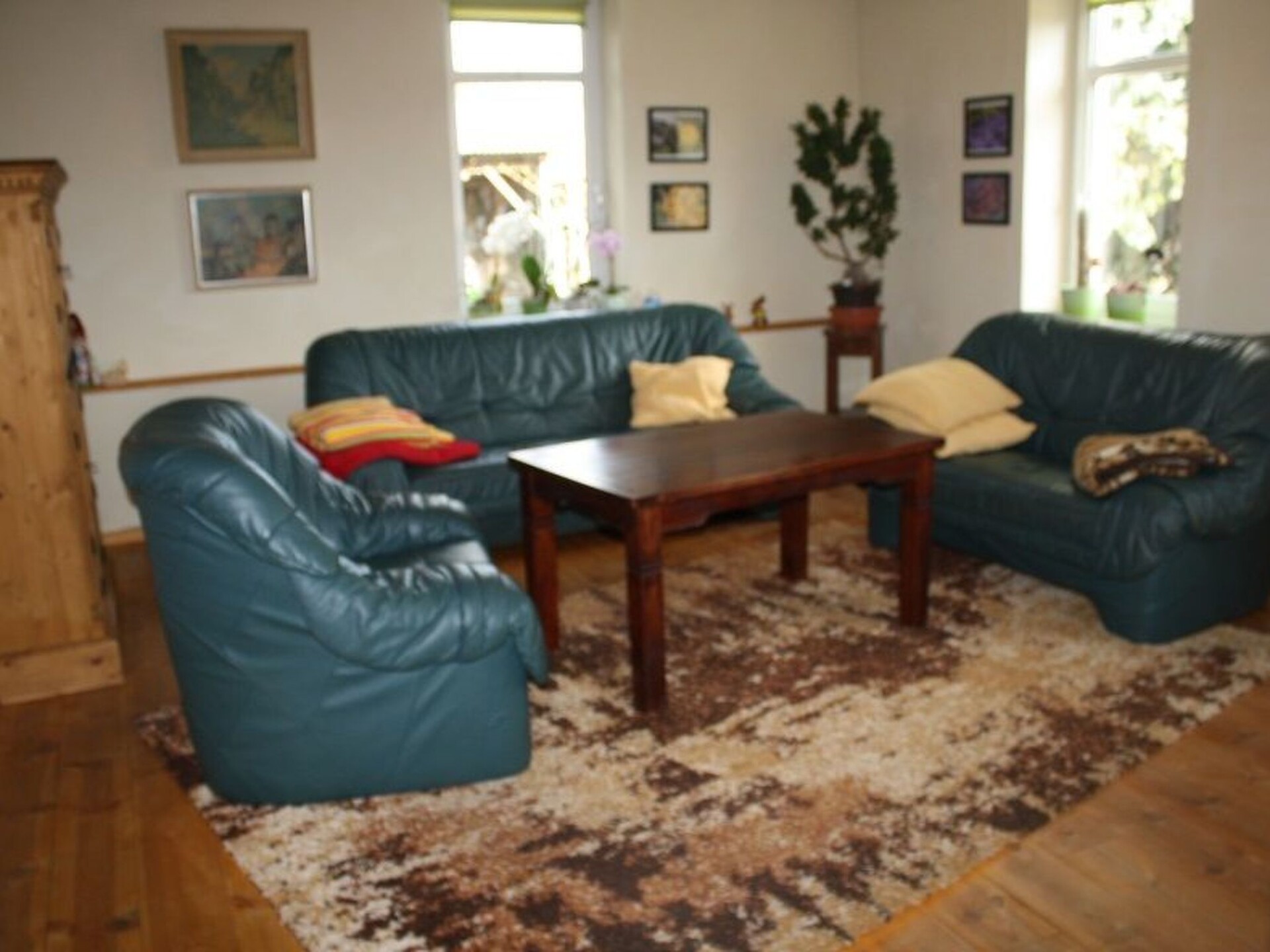 The idyllic farm, a former inn, is located near the Saale river in the sleepy village of Tümpling, directly opposite Tümpling Castle.A terrace/green seating area with a swing under a bluebell tree (incl. table, 2 folding chairs, garden lounger if required) is available for the exclusive use of holiday guests. Tree swings and other children's toys may also be used. Barbecues are available on request. 1-2 guest parking spaces directly in front of the apartment. The property is completely fenced. In the garden you can meet our 4 cats, chickens, a tortoise and two alpacas.The holiday flat on the ground floor consists of a hallway (with wardrobe), kitchen-living room, bedroom and bathroom. The eat-in kitchen is equipped with a 4-burner cooker (ceramic hob, extractor bonnet), oven, toaster, kettle, coffee machine, fridge (incl. freezer compartment), pots, pans, spices, crockery and cutlery as well as a cosy dining area (table, 2 chairs, corner bench with 3 seats, radio with CD compartment). TV can be watched from 2 leather sofas and a leather armchair. The centrepiece of the large bedroom is a beautiful double wooden bed (1.4 m wide mattress), which sleeps 2 adults. There is also a bunk bed for 2 people (2.10 m long). Clothes can be stored in 1 large wardrobe (5 shelves, 1 long clothes rail with shelf above) and 1 chest of drawers. The cosy bathroom (renovated in 2025, with underfloor heating) includes a shower, bathtub (low entry), washbasin and toilet. The apartment is 65 square metres in size and centrally heated. It is most comfortable for 1-4 persons. It can accommodate a maximum of 5 adults.View of the castle. The apartment is in a very attractive tourist location. A wide range of leisure activities are possible in the neighbourhood: Hiking (castles, palaces, ruins, orchids, extensive beech forests), cycling (Saale cycle path, sugar railway cycle path very close), rafting and canoeing on the Saale (canoe station within 5 minutes walking distance), wellness (thermal baths, (thermal baths, brine baths, climatic spas), wine tasting, horse riding, carriage rides, restaurant visits, cultural and historical strongholds Jena, Weimar, Naumburg with city tours (museums, theatre, planetarium, botanical garden, Göthehäuschen...) or cinema, summer concerts ... . Swimming in outdoor pools and lakes, also in the Saale at unknown Saale beaches. Visits to Stone Age sites such as Nebra, Goseck, burial mounds. Famous buildings on the Romanesque Road (Naumburg Cathedral, Rudelsburg Castle, Saaleck Castle ... ) are often within cycling distance of the holiday apartment. Tümpling has a wonderful playground and sports field. Inline skating or roller skiing is also possible on the nearby Saale cycle path. Tennis, golf, fishing, gliding, paragliding, ballooning and much more ... - detailed information and links on our homepage ("FeWo Camburg Zwei-Linden-Hof" google...) - please also see our house rules there. Thank you :)Castle view. Free WLAN access for guests. On request: baby travel cot, high chair available free of charge. Joint walk with our two leashed alpacas possible on request. Fresh chicken eggs depending on the hens' laying mood.