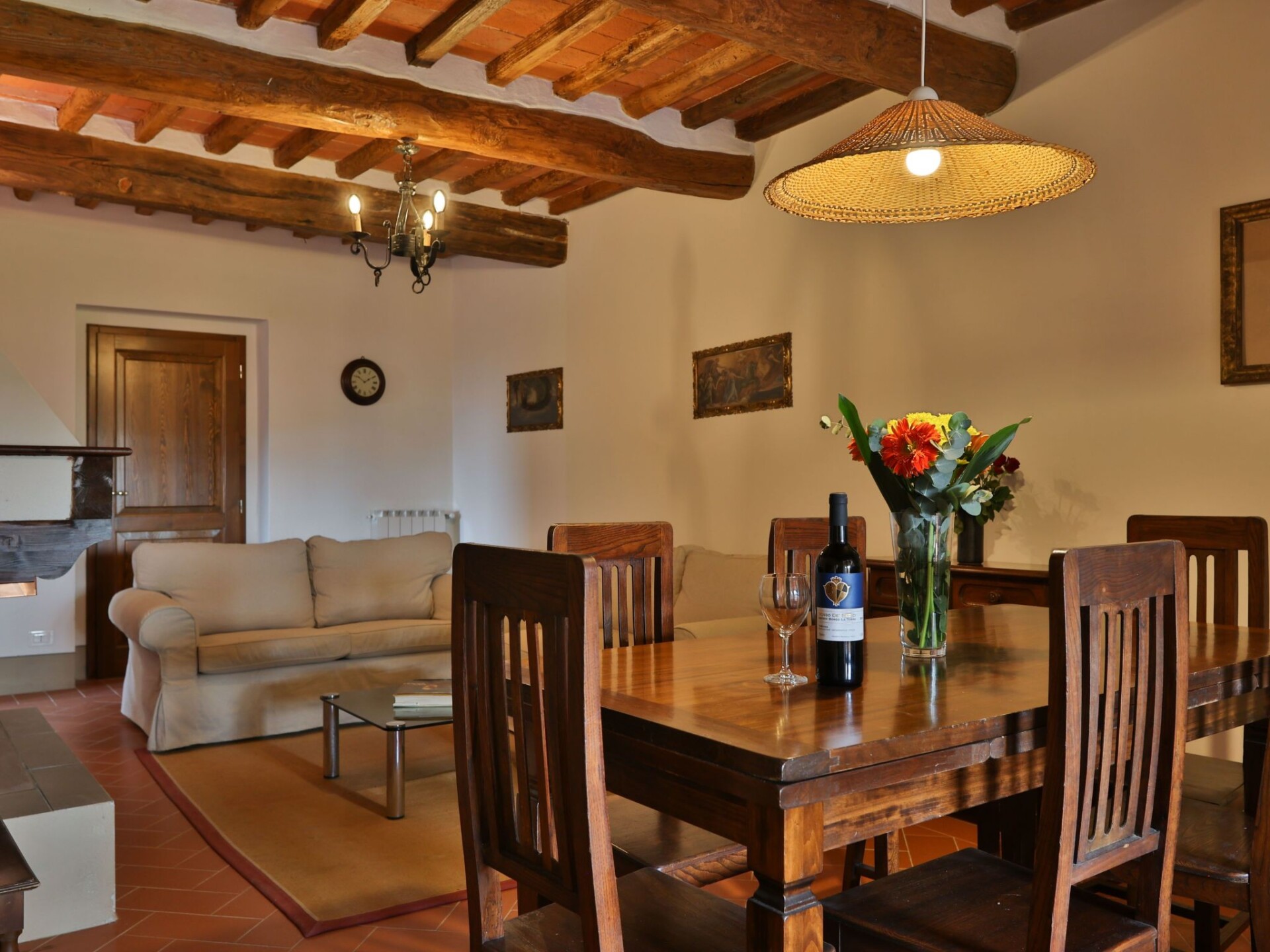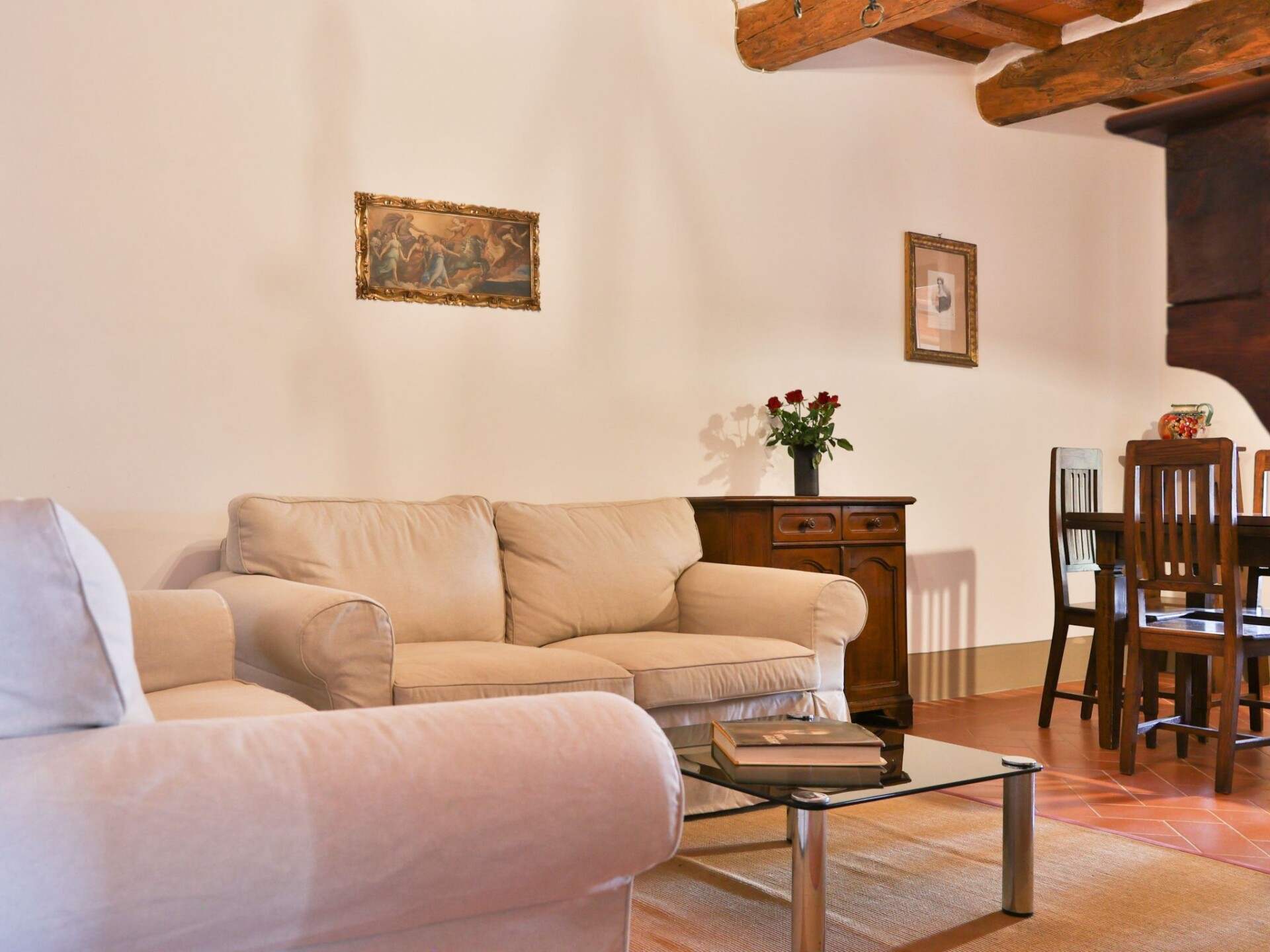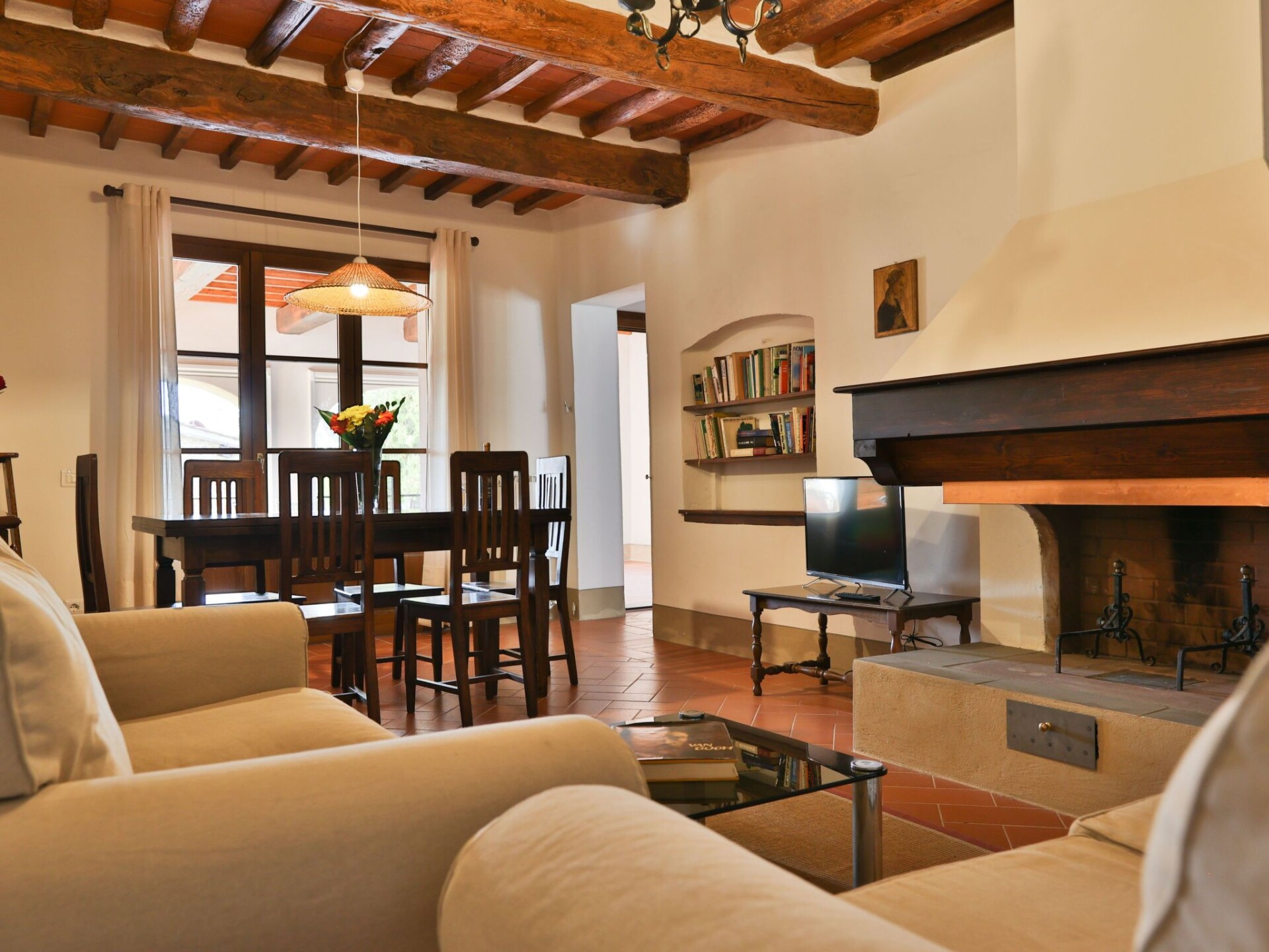 The apartment Marta is part of the farmhouse Antico Borgo La Torre, located 27 km south-east of Florence, in a sunny and quiet position, immersed in the green Tuscan countryside. The apartment of 100 sqm is located on the first and second floor of one of the two main buildings of the farmhouse.The farm has 32 hectares of land comprising of vineyards, olive groves and a large natural garden with a small private lake and a 20-meter swimming pool which all guests can enjoy.Guests can enjoy a 20 metre long swimming pool overlooking the lake and relax in the calm of the countryside. The swimming pool is open in the summer months. Please note that the wearing of a swimming cap is compulsory. In the farmhouse private car park, there is an electric car charging point.This newly renovated 125 m2 apartment located on the 1st and 2nd floor of one of the main buildings is presented with traditional Tuscan furnishings, modern bathrooms and a large terrace with outside table and chairs. The 1st floor comprises: dining room and living room with dining table, open fireplace, cable-TV; a fully equipped kitchen (4-burner gas hob, electric oven, fridge-freezer, dishwasher); a bathroom (shower/bidet/WC). The 2nd floor is presented with beautiful high ceilings with Tuscan terracotta and large wooden beams, and comprises: a double bedroom with an adjacent bedroom with a single bed and en-suite bathroom with shower/bidet/WC; and two bedrooms with 2 single beds, both with en-suite bathrooms with shower/bidet/WC. Gas heating throughout the apartment. A washing machine is also provided.The farmhouse lies in the centre of the triangle Firenze-Siena-Arezzo. It is the perfect place to relax and enjoy nature, and also the ideal base from which to enjoy the cultural heritage of Tuscany.The nearest railway station (3 km away) is Figline-Valdarno, from which you can reach the centre of Florence or Arezzo in 20 minutes. IT048035B54KHLLAQP