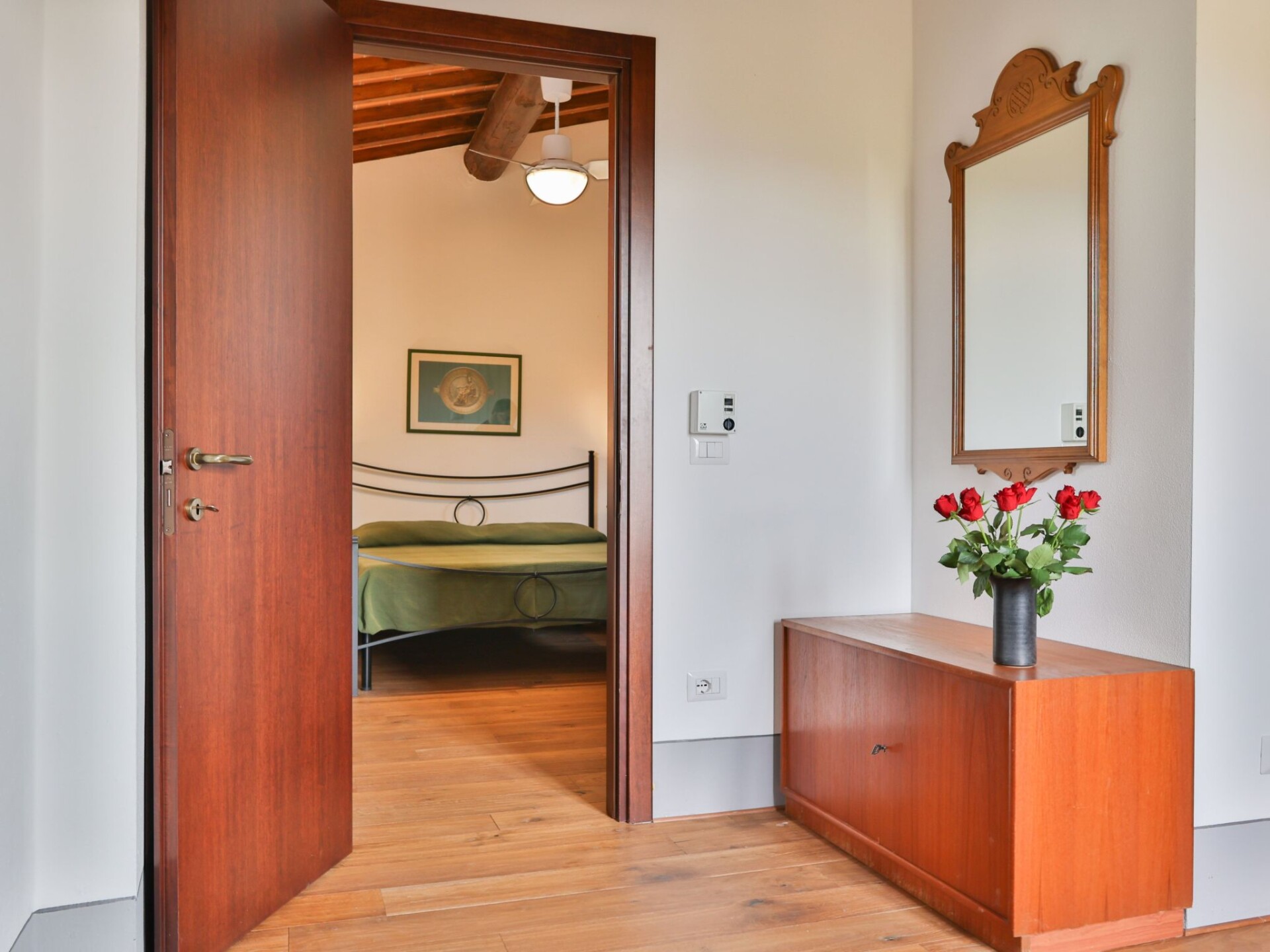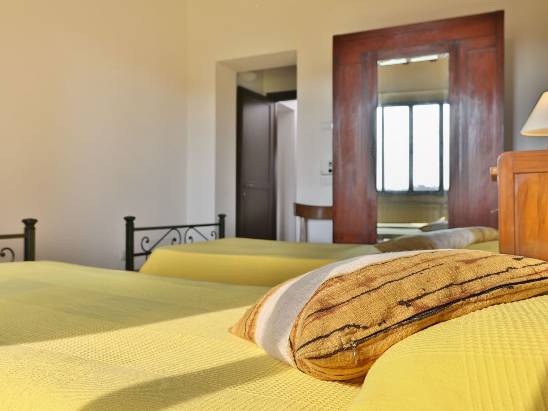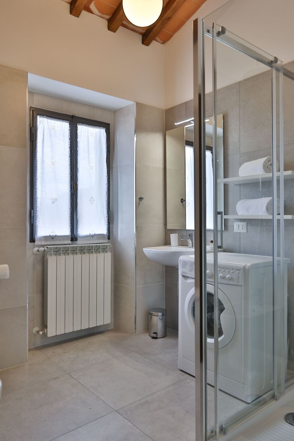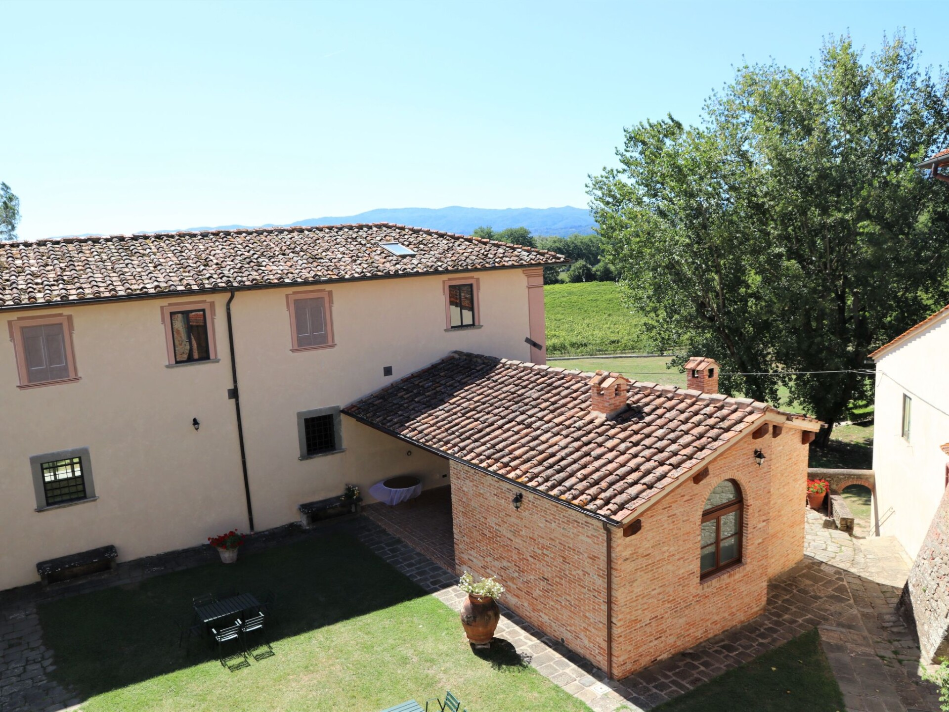 The apartment Marta is part of the farmhouse Antico Borgo La Torre, located 27 km south-east of Florence, in a sunny and quiet position, immersed in the green Tuscan countryside. The apartment of 100 sqm is located on the first and second floor of one of the two main buildings of the farmhouse.The farm has 32 hectares of land comprising of vineyards, olive groves and a large natural garden with a small private lake and a 20-meter swimming pool which all guests can enjoy.Guests can enjoy a 20 metre long swimming pool overlooking the lake and relax in the calm of the countryside. The swimming pool is open in the summer months. Please note that the wearing of a swimming cap is compulsory. In the farmhouse private car park, there is an electric car charging point.This newly renovated 125 m2 apartment located on the 1st and 2nd floor of one of the main buildings is presented with traditional Tuscan furnishings, modern bathrooms and a large terrace with outside table and chairs. The 1st floor comprises: dining room and living room with dining table, open fireplace, cable-TV; a fully equipped kitchen (4-burner gas hob, electric oven, fridge-freezer, dishwasher); a bathroom (shower/bidet/WC). The 2nd floor is presented with beautiful high ceilings with Tuscan terracotta and large wooden beams, and comprises: a double bedroom with an adjacent bedroom with a single bed and en-suite bathroom with shower/bidet/WC; and two bedrooms with 2 single beds, both with en-suite bathrooms with shower/bidet/WC. Gas heating throughout the apartment. A washing machine is also provided.The farmhouse lies in the centre of the triangle Firenze-Siena-Arezzo. It is the perfect place to relax and enjoy nature, and also the ideal base from which to enjoy the cultural heritage of Tuscany.The nearest railway station (3 km away) is Figline-Valdarno, from which you can reach the centre of Florence or Arezzo in 20 minutes. IT048035B54KHLLAQP
