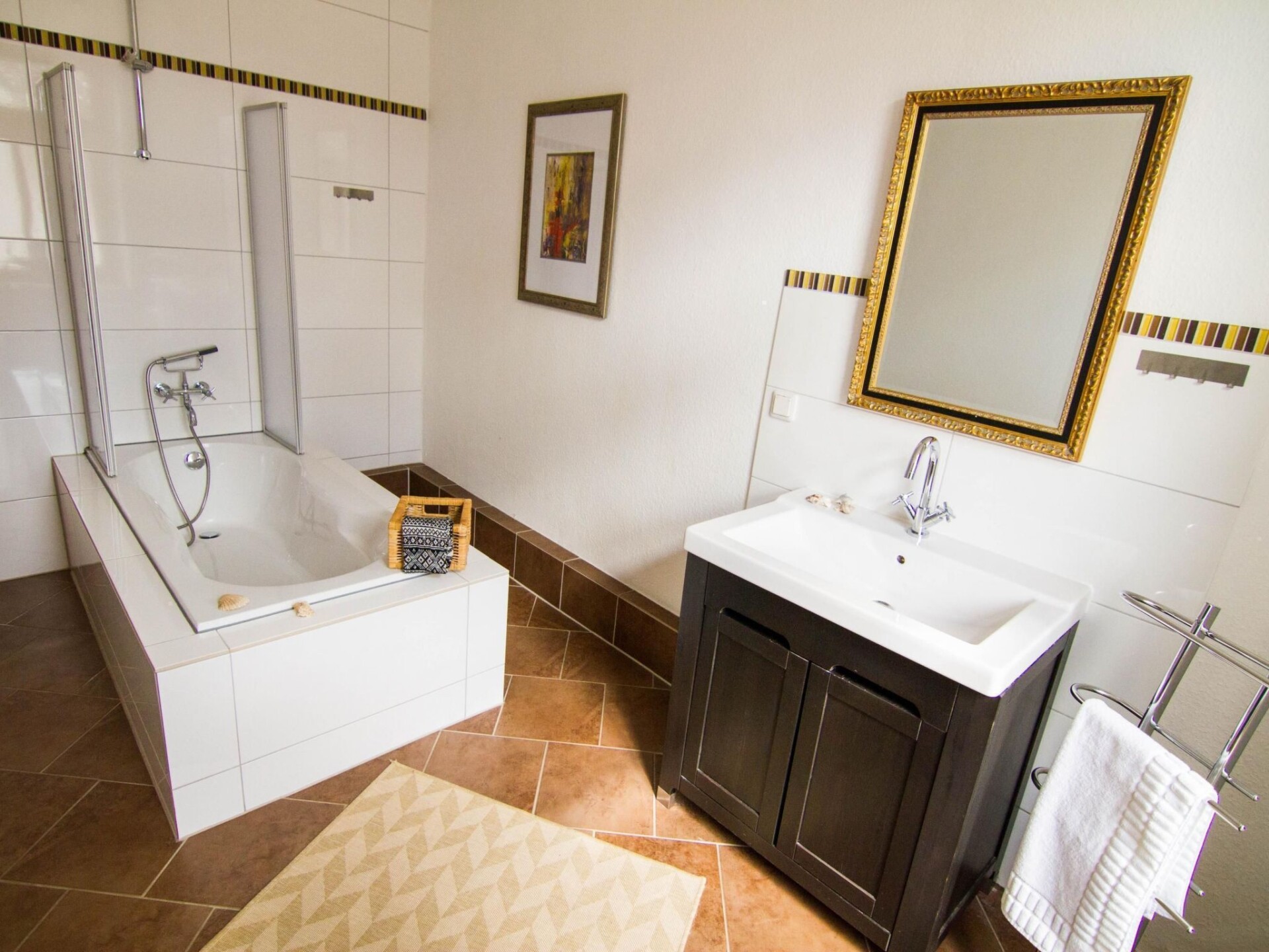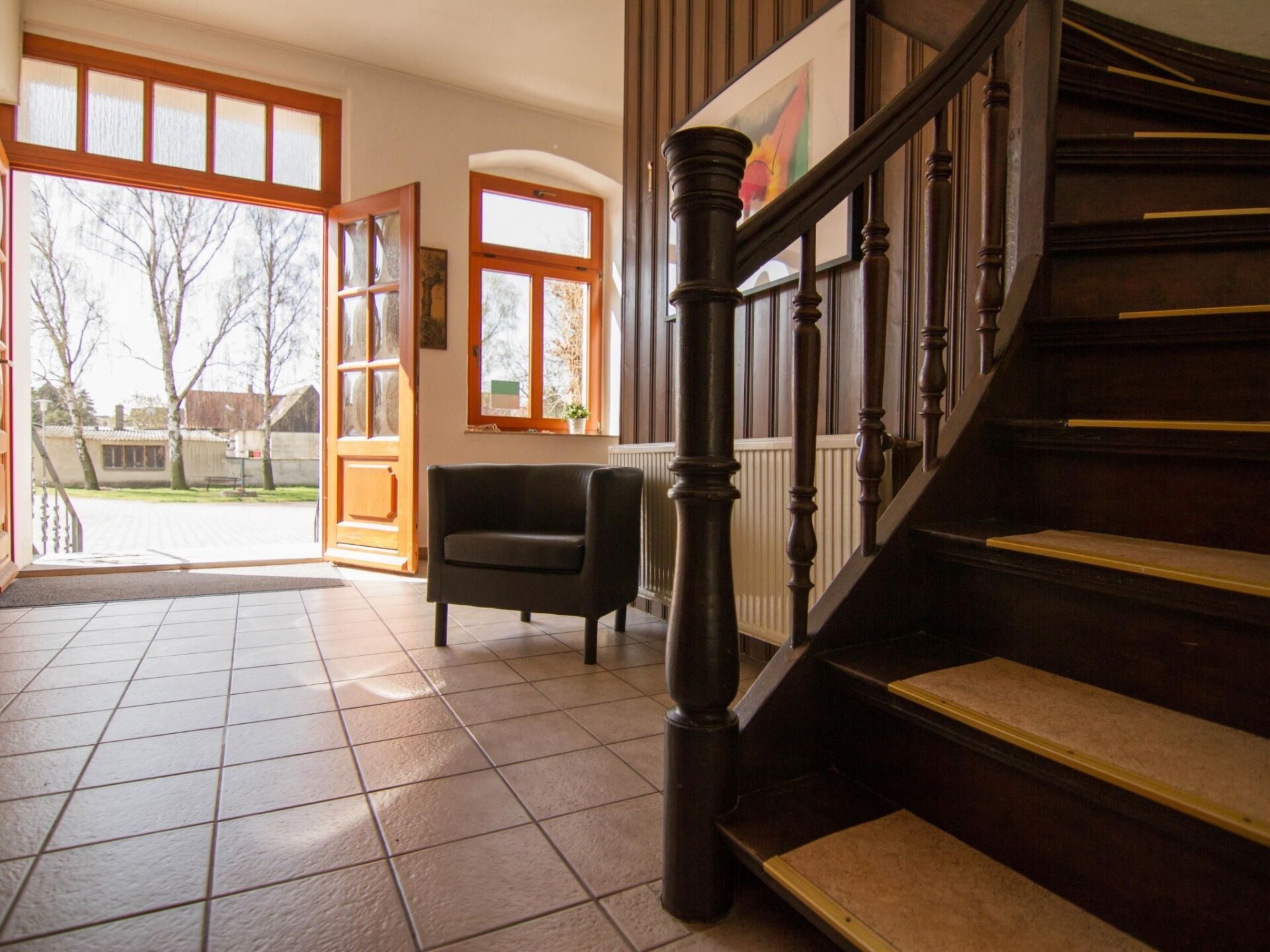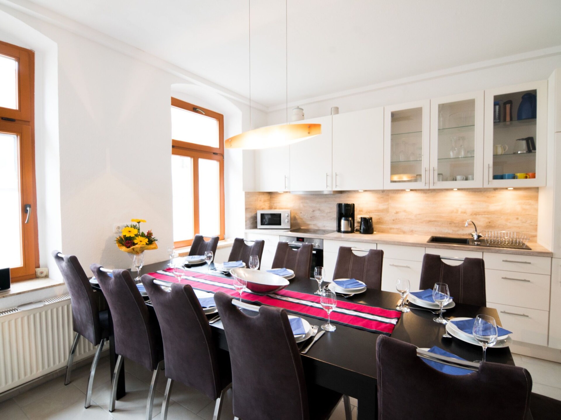 Holiday in the Harz Mountains!This large holiday home for up to eleven people is located in the centre of the quiet village of Radisleben, next to the old school and the church.It has a living space of 190 square metres, which is divided as follows: On the ground floor there is a large hallway with an old wooden staircase leading to the upper floor, a large living room with satellite TV, DVD player and library, a second smaller living room, a first bedroom with a double bed (140 x 200 cm, 1 mattress), a second bedroom with a double bed (180 x 200 cm, 2 mattresses). Two modern bathrooms are located on the ground floor: one with a free-standing bathtub and a washbasin, the second with a large shower, WC and washbasin (from 2016). There is also a separate WC. The large kitchen with a dining table for eleven people is fully equipped with dishwasher, ceramic hob, oven, fridge-freezer, microwave, toaster, complete crockery, cutlery, pots and pans. On the first floor there is a very large bedroom with a double bed (180 x 200 cm, 2 mattresses) and another bed, a children's room with bunk beds (2 x 90 x 200 cm) and a football table. There is also a third bedroom with a double bed (140 x 200 cm, 1 mattress) and a modern shower room (from 2015) with WC and an infrared cabin (similar to a sauna).In November 2021, all carpets were removed, new PVC was laid and the entire house was freshly painted. The furniture was almost completely replaced: shelves and vertigos from around 1900 as well as new wooden bed frames, slatted frames, pillows and duvets!I would like to respond to the reviews that have been submitted in the past as follows:There is a WC upstairs!The kitchen is complete with new pots and pans, lids and cutlery!The oil odour once described is no longer present as a cellar door to the oil tank has been installed!From Radisleben (a district of Ballenstedt) you can reach the following sights and attractions: Ballenstedt Castle with its large castle park (5 km), Falkenstein Castle (6 km), the spa town of Gernrode (8 km), Quedlinburg, which is under Unesco protection (10 km), Thale with the Hexentanzplatz, the Bodetal and the Bodetaltherme (15 km), Halberstadt (20 km), Wernigerode (33 km), a narrow-gauge railway, the Roseburg, the Gegensteine, a huge motorcross area, a large forest playground near Nachterstedt, a golf course and much more. Cultural events, old towns with restored buildings and marvellous nature will delight you.Many DVDs and a small library invite you to relax! Please bring bed linen, tea towels and towels from home.