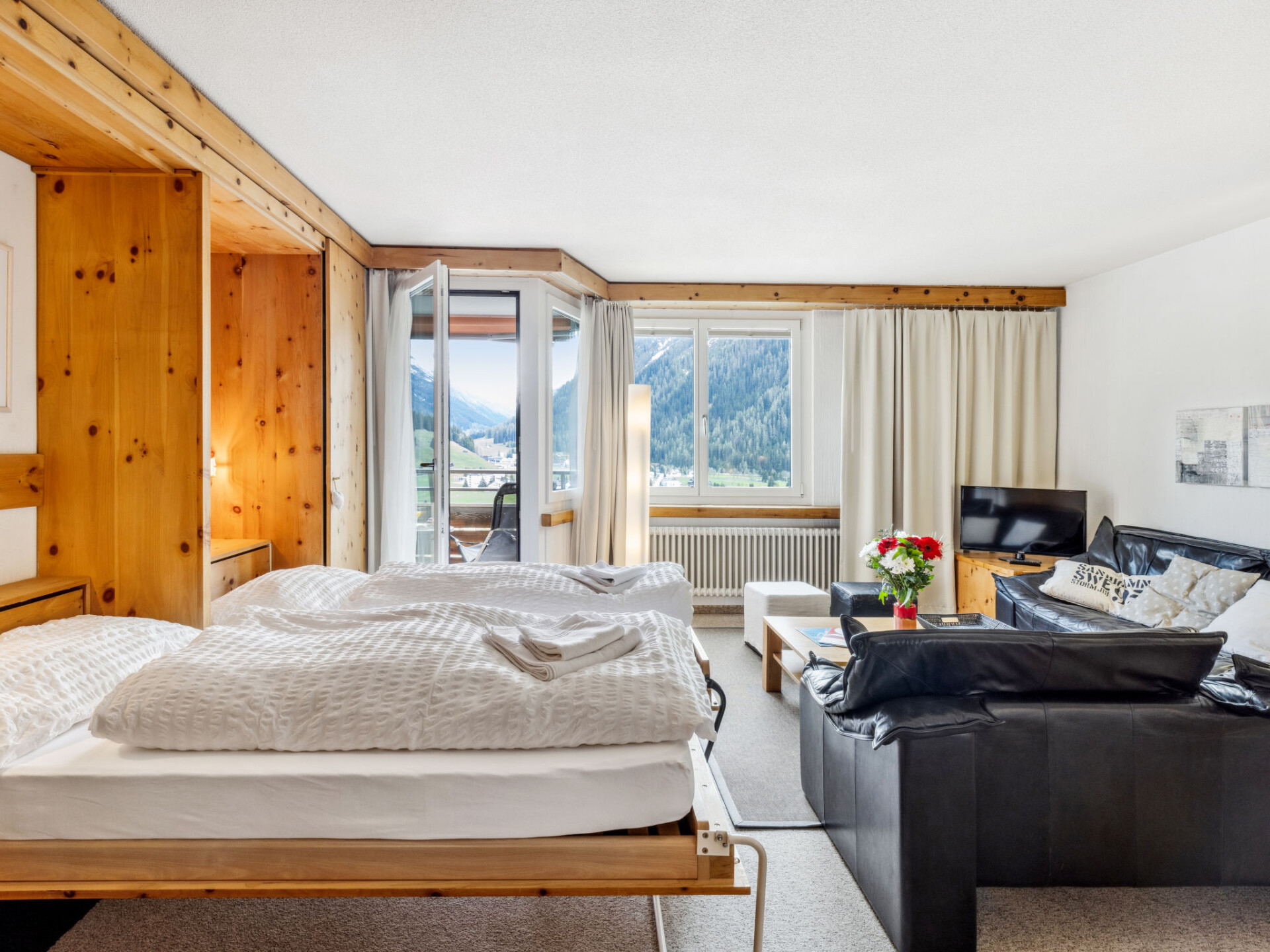 "Guardaval Apt 308", appartement 1-kamer 50 m2 op de 3e verdieping. Comfortabel en modern ingericht: woon-/eetkamer met 2 kastbedden en Kabel-TV (Flatscreen TV), radio. Uitgang naar het balkon. Slaapnis met gordijn met 2 bedden. Keuken (oven, afwasmachine, 4 keramische glas kookplaten, elektrische koffiemachine). Bad/WC. Balkon 7 m2, op het zuiden gelegen. Terrasmeubelen. Mooi uitzicht op de bergen, het landschap en de plaats. Ter beschikking: Internet (WiFi, gratis). Parkeerplaats. Niet rokers woning. In plaats van een afgesloten slaapkamer bevinden sommige slaapgedeeltes zich in een open ruimte (galerij, nis, etc.). 10508