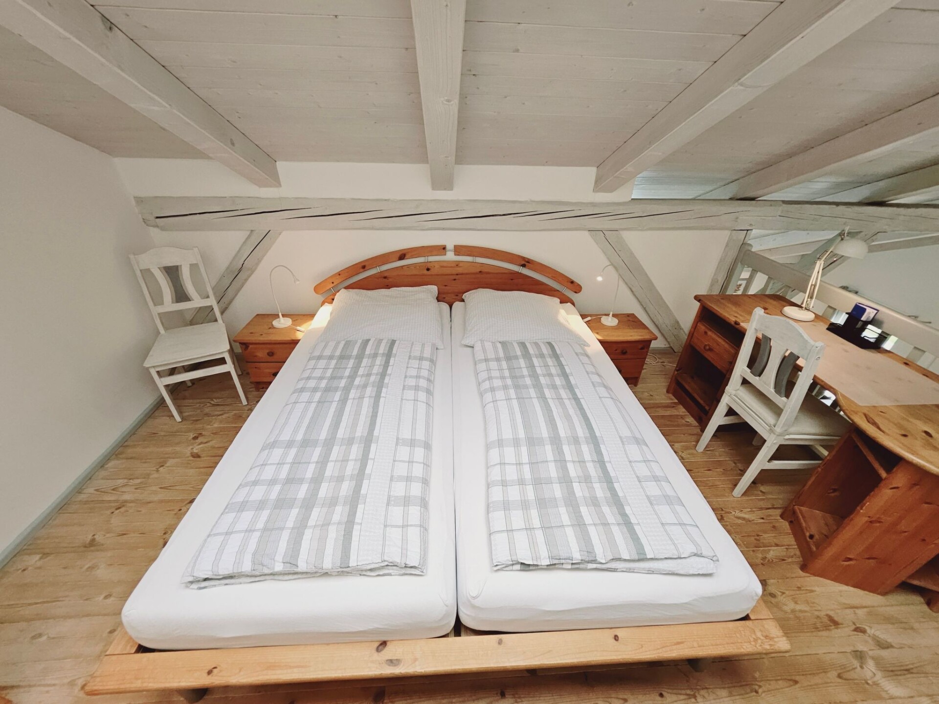 Discover your idyllic holiday destination in the heart of Ostholstein! The charming holiday flat on the organic Spatzenhof farm in Curau, located between the historic Hanseatic city of Lübeck and picturesque Holstein Switzerland, promises an unforgettable break close to the Baltic Sea. With direct access to the ecologically designed Curau golf course, a unique nature experience opens up right on your doorstep.Inside, you will find a lavishly and ecologically renovated flat that is cosy and stylishly furnished. The separate bedroom with a spacious double bed and wardrobe promises relaxing nights. The eat-in kitchen leads up a staircase to the impressive gallery, which offers a charming retreat as well as another double bed, desk and a second TV. Equipped with modern amenities such as Smart TV/SAT, CD player with Bluetooth connection, a full kitchen including dishwasher and microwave, this flat leaves nothing to be desired.Outside, a peaceful oasis opens up under lime and chestnut trees, away from the hustle and bustle of the city. A small football pitch and playground with sandpit, swings and slide as well as a large trampoline offer ideal conditions for child-friendly fun. The neighbouring golf course and the Curauer Moor with its charming paths through sections of moorland and Galloway meadows are perfect places for nature lovers and those seeking relaxation.The surrounding region offers an almost endless variety of activities. The popular Baltic seaside resorts of Timmendorfer Strand and Scharbeutz are just 14 kilometres away and entice visitors with their beaches. Nearby Lübeck and the inviting Holstein Switzerland offer fascinating leisure activities for culture vultures and active holidaymakers alike. In addition, the good transport links and proximity to cities such as Hamburg, Kiel, Schwerin and Rostock guarantee flexible excursion planning.Don't miss out on this opportunity and experience an unforgettable holiday at the Spatzenhof in Curau - your gateway to an unforgettable experience of nature, idyllic tranquillity and the cultural treasures of Eastern Holstein. The perfect setting for a relaxing break from everyday life awaits you here.