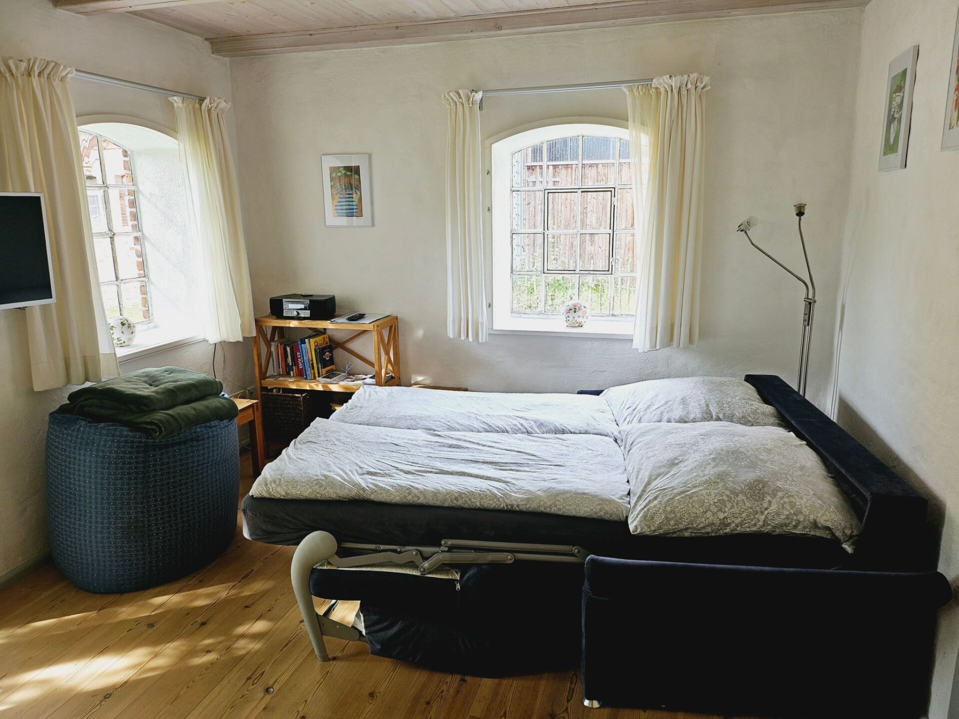 Discover our charming holiday home at the Spatzenhof in Curau - an idyllic place nestled perfectly between the historic Hanseatic city of Lübeck and picturesque Holstein Switzerland. Situated in the immediate vicinity of the Baltic Sea, our farm, which is part of an ecologically managed organic farm complex, offers direct access to the neighbouring Curau golf course.Inside, guests will find a lovingly furnished holiday flat that leaves nothing to be desired. Equipped with two cosy rooms, the flat includes a bedroom with a comfortable double bed and plenty of storage space, as well as a living/dining room with a system sofa, a dining table, four chairs and a fully equipped fitted kitchen. Amenities include a smart TV, a combined pad and brew coffee machine and an extensive selection of kitchen accessories. The bright bathroom with shower rounds off the space.The exterior of the courtyard invites you to linger and relax. Guests have access to the courtyard, a terrace with adjoining orchard, garden furniture and sun loungers. For younger guests there is a football pitch and playground with swings, slide and sandpit as well as a large trampoline. The lockable sheds offer storage facilities for bicycles, while car parking spaces are available directly at the house.The surrounding area has something for everyone: The golf course of the Curau Golf Club, which is particularly characterised by its ecological layout, starts right next to the farm. The Curauer Moor and the nearby Baltic seaside resorts of Timmendorfer Strand and Scharbeutz invite you to go for walks, cycle tours and beach days. The cities of Lübeck, Hamburg, Kiel, Schwerin and Rostock are also easy to reach thanks to the favourable transport connections and promise cultural diversions.Personalise your stay in a retreat that combines peace and nature with comfortable living. Whether you are looking for relaxation, want to be active in sports or want to explore cultural highlights - at the Spatzenhof you will find the ideal base for an unforgettable holiday.