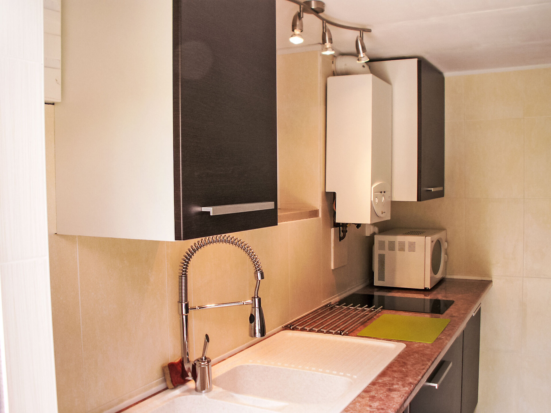 Huis 1-kamer 42 m2. Woon-/eetkamer met 2 bedden (80 cm, lengte 200 cm), eettafel en TV (Flatscreen TV). Uitgang naar het terras. Keuken (1 keramische glas kookplaat, magnetron, diepvriezer). Douche/WC. Verwarming. Ligstoelen (2). Ter beschikking: wasmachine. Internet (Internet (WiFi), gratis). Rookmelders. Let op: omkeerbare of 'reversible' airconditioning. Mogelijkheid om de 2 bedden van 80 cm te combineren.