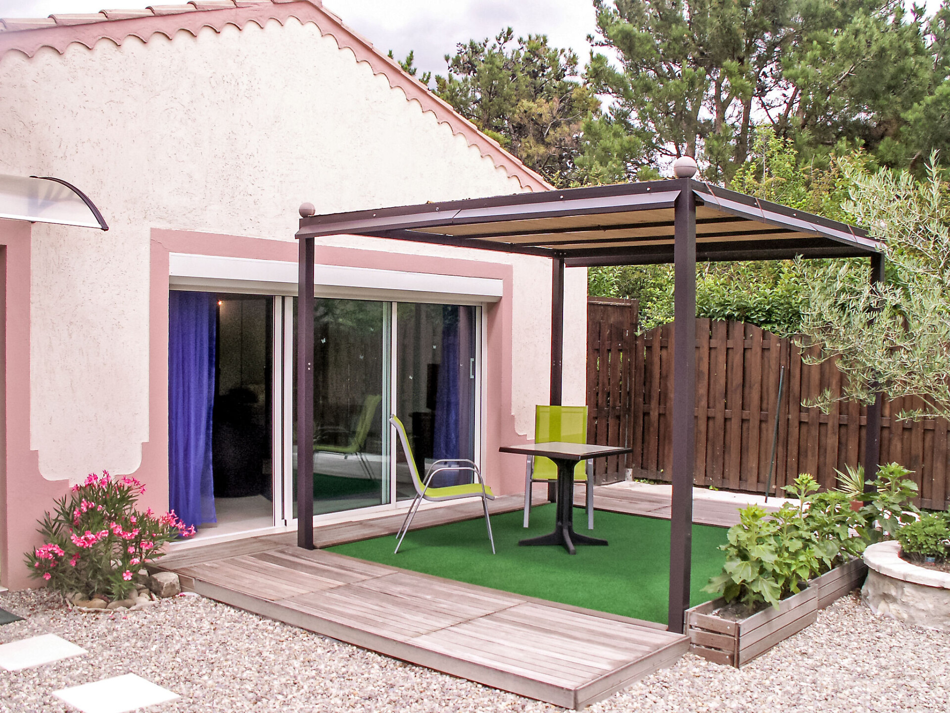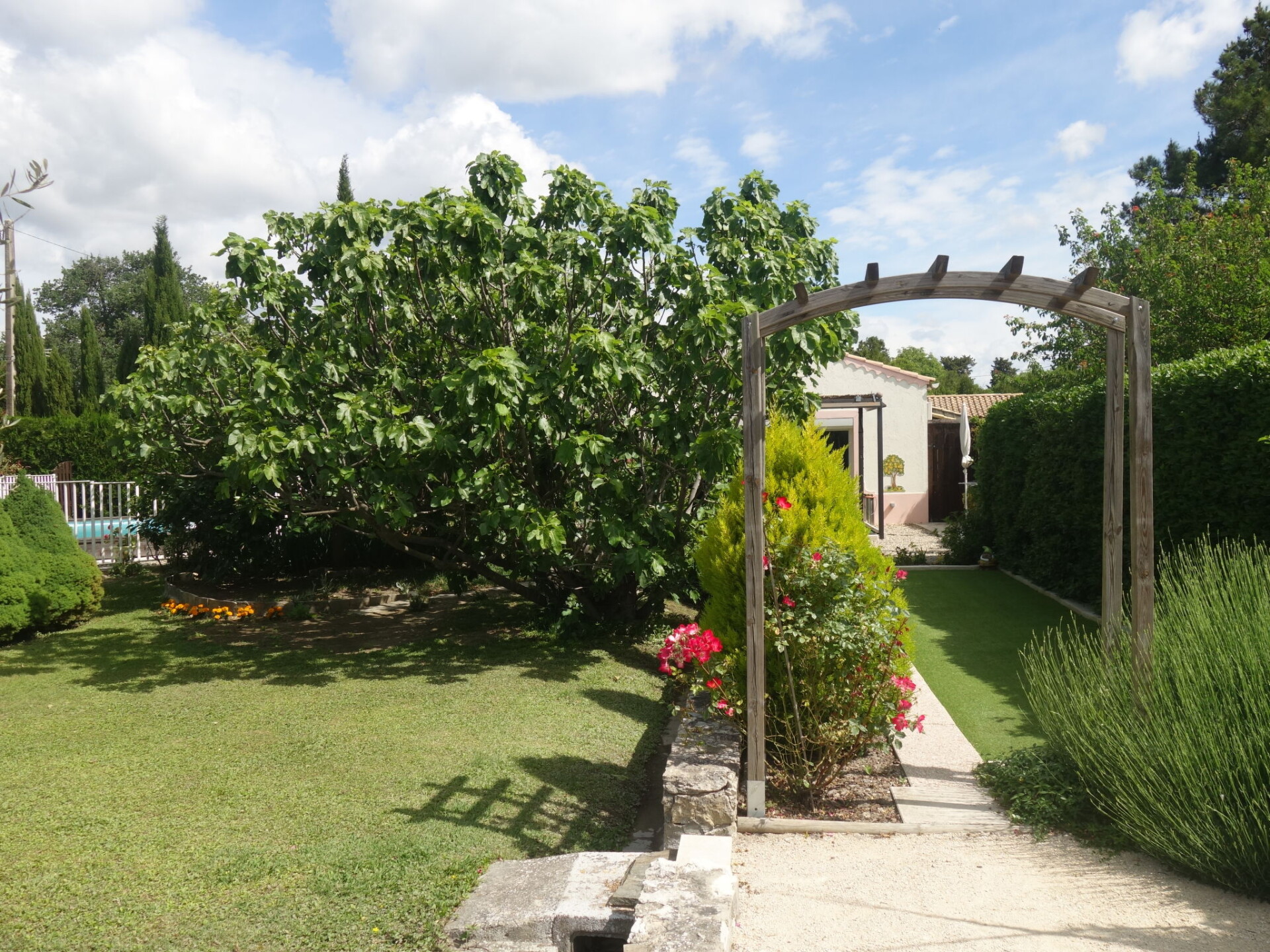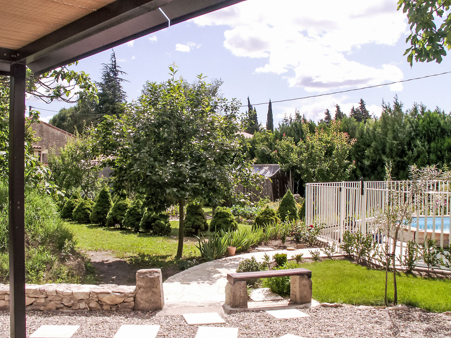 Caumont sur Durance 12 km van l'isle sur la Sorgue: Kleine eengezinswoning "Haider". Voor medegebruik: terrein 2.500 m2 (omheind). Buitendouche, prieel. Voor alleengebruik: terrein 1.500 m2 (omheind) met bloemen en bomen, openluchtzwembad omheind (8 x 4 m, 130 cm diepte, seizoensgebonden beschikbaarheid: 01.Mei. - 30.Okt.). Buitendouche, tafeltennis, terras, tuinmeubelen, barbecue, parkeerplaats op het terrein. Winkel 1 km, restaurant 1 km, bushalte "Jourdans" 130 m. Golfterrein (18 holes) 4 km. De eigenaar woont op hetzelfde terrein.
