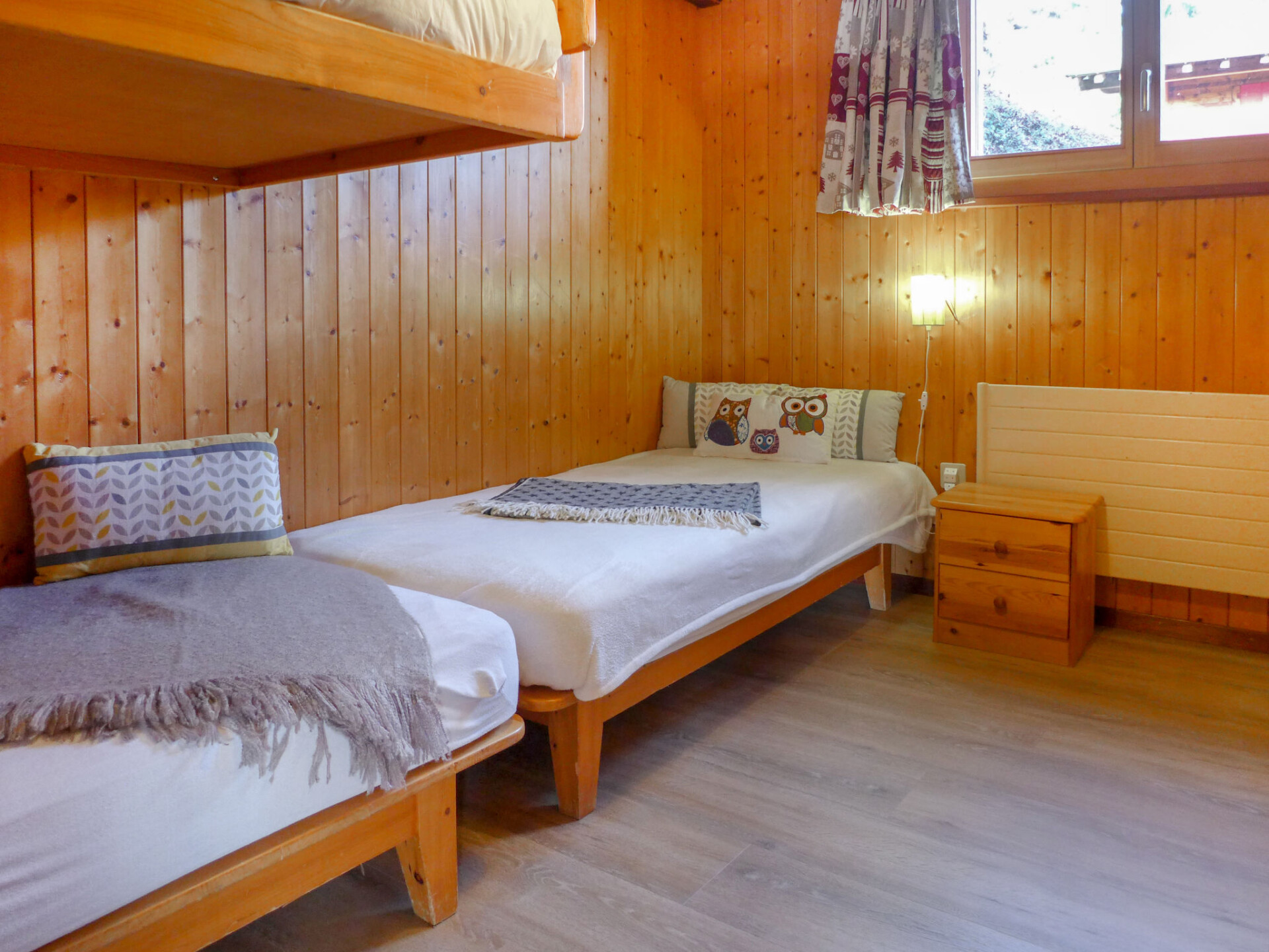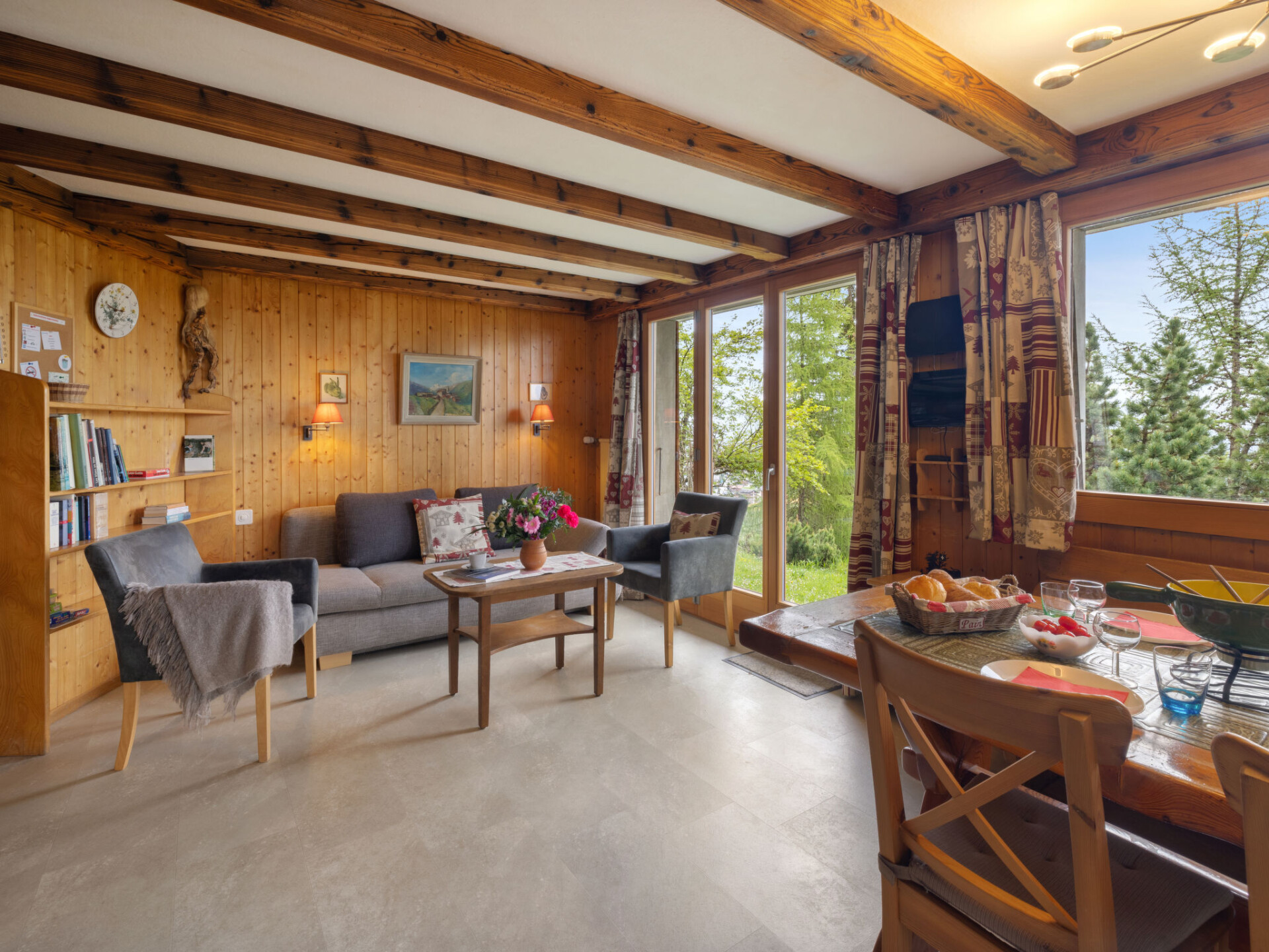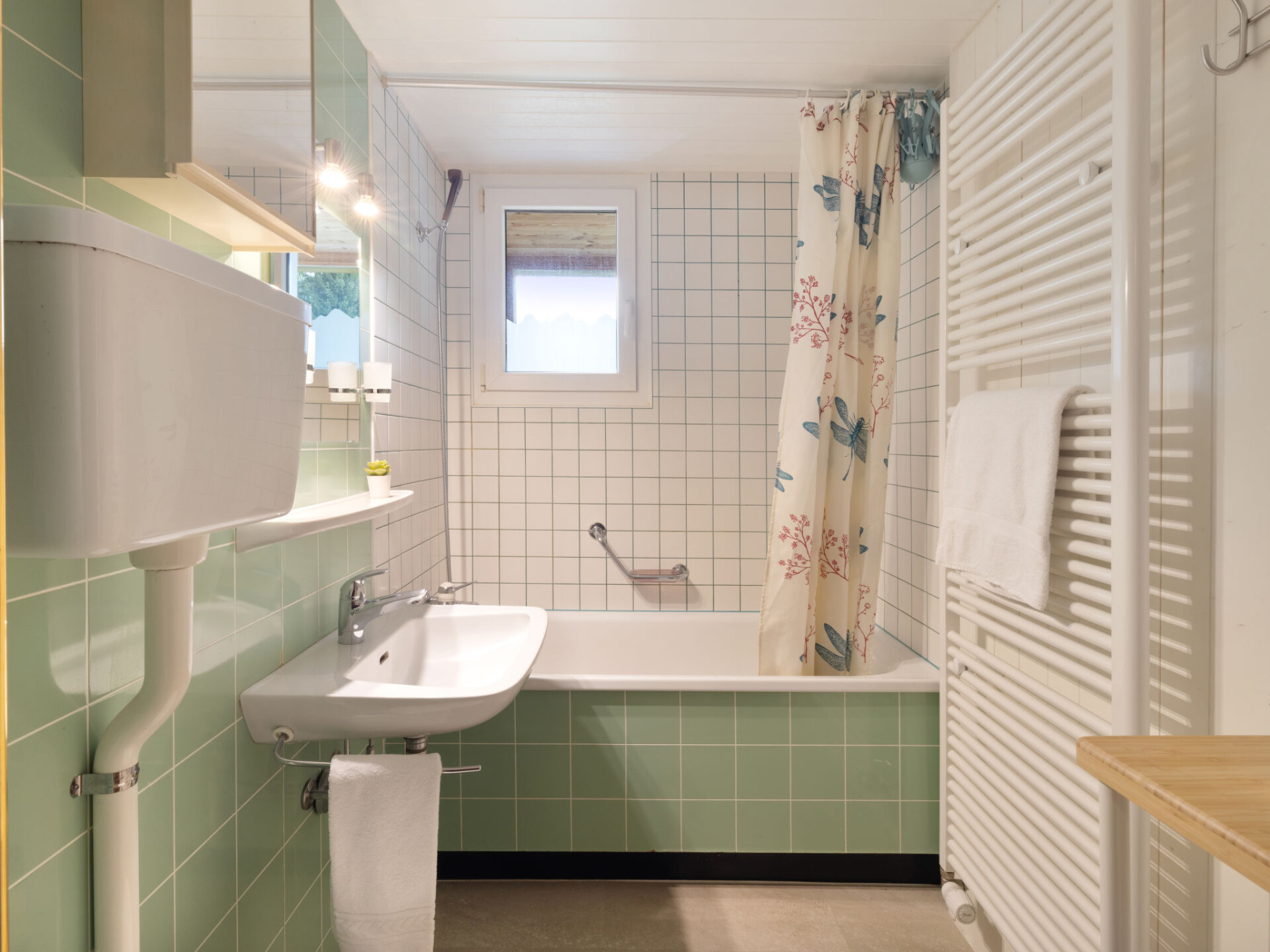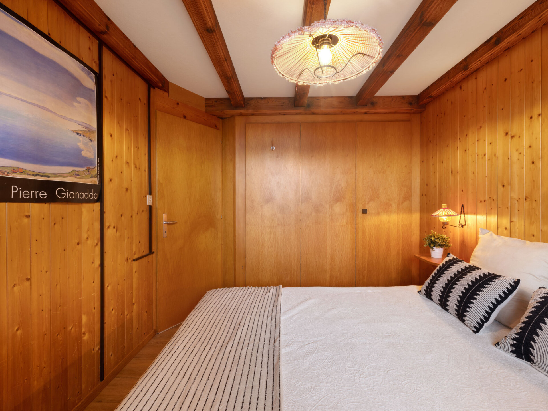 "Haimavati", appartement 3-kamers 60 m2, op de begane grond, op het zuiden gelegen. Gedeeltelijk gerenoveerd in 2019, doelmatig en mooi ingericht: woon-/eetkamer. Uitgang naar de tuin. 1 kamer met 1 2-pers bed (1 x 160 cm, lengte 200 cm). 1 kamer met 2 bedden (90 cm, lengte 200 cm). Kookhoek (oven, 3 keramische glas kookplaten, magnetron, fondue Set (kaas)). Badkamer. Kleine tuin. Terrasmeubelen, barbecue, serre. Panoramazicht op de bergen en het dal. Ter beschikking: Internet (Internet (WiFi), gratis). Niet rokers woning.
