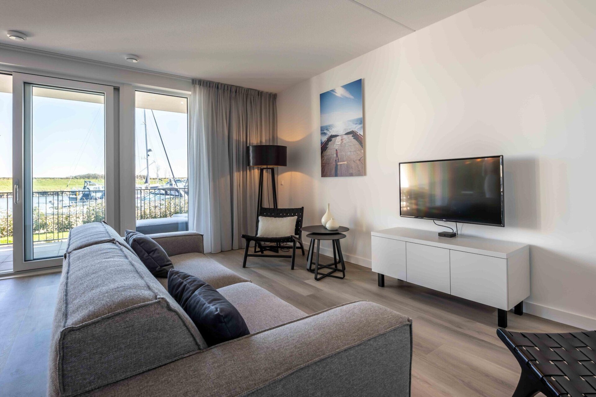Dit appartement is gelegen op de begane grond en is ingericht voor 4 personen. De entree biedt toegang tot twee ruime slaapkamers waarvan een met lits-jumeaux en een met twee éénpersoonsbedden. Bij aankomst zorgen wij dat de bedden fris voor u zijn opgemaakt. De modern ingerichte badkamer is voorzien van een inloopdouche en wastafel. Daarnaast is er een apart gastentoilet. De ruime en sfeervol ingerichte woonkamer is voorzien van een comfortabele zithoek en een Smart TV met buitenlandpakket. Vanuit de woonkamer heeft u tevens toegang tot het ruime en overdekte terras op het zuiden met luxe, comfortabele tuinmeubelen, waar u tot in de late uren kunt genieten van het prachtige uitzicht op de levendige jachthaven en het Veerse Meer. De ruime luxe ingerichte keuken is voorzien van comfort inbouwapparatuur, o.a. een inductiekookplaat, een oven/grill, een koelkast met vriesvak en een Nespresso koffiemachine. Tevens is er een aparte ruimte met een wasmachine en wasdroger. In de inpandige berging is er ruimte voor uw (elektrische)fietsen. Uw huisdier is in dit appartement van harte welkom. Er is standaard één kinderbedje en één kinderstoel aanwezig.