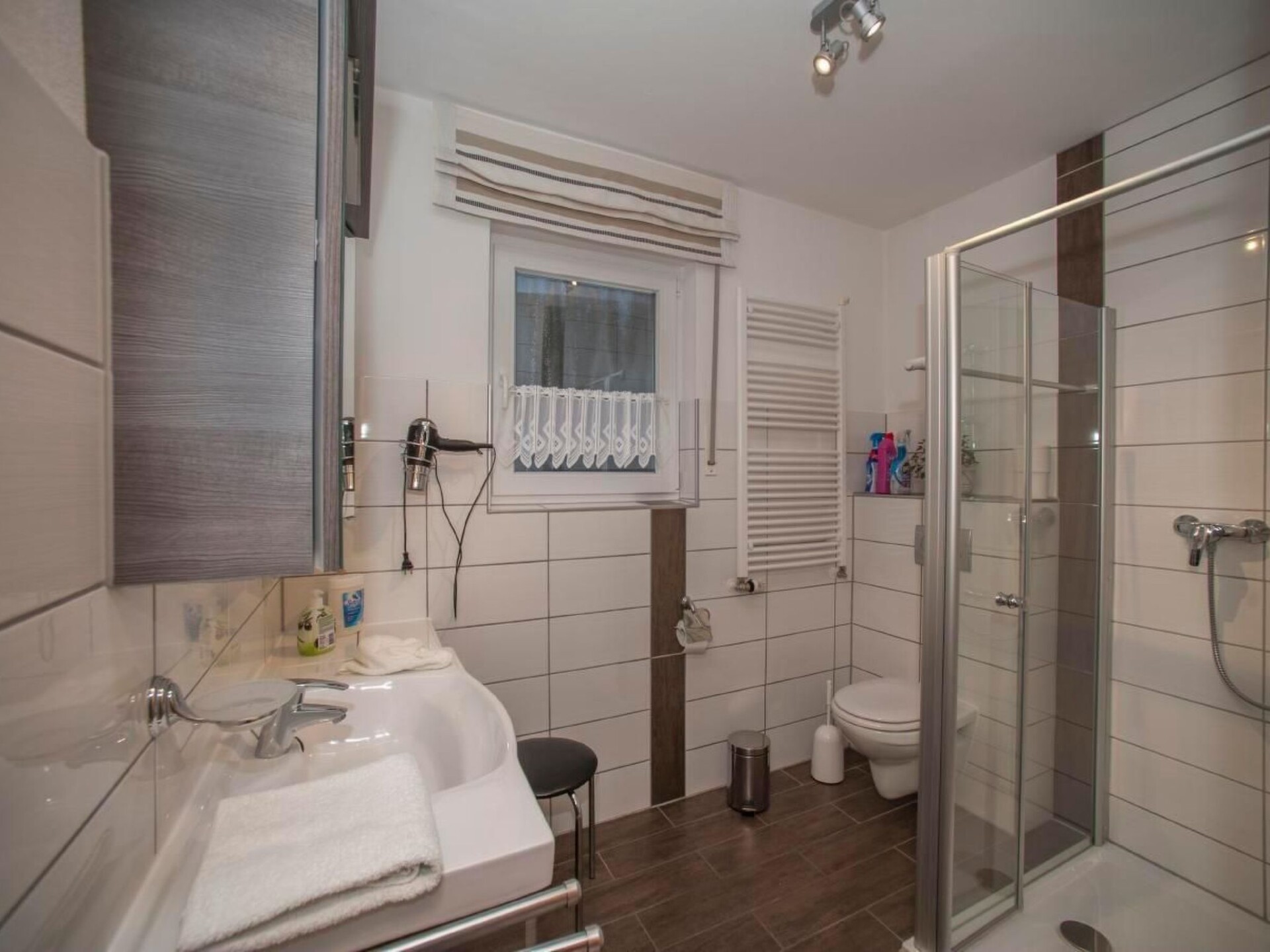 Welcome to the heart of the idyllic Weserbergland, where our cosy holiday home in Polle invites you to enjoy an unforgettable holiday. Situated in a quiet cul-de-sac, our 80 m² ground floor flat promises not only peace and relaxation, but also direct access to the beauty of the region from your own balcony, which you can reach from both the living room and bedroom.For your comfort, the interior of our flat is equipped with everything you need for a carefree stay. Relax in the living room in front of the flat-screen TV, enjoy your favourite music on our music system or sink into the reading corner, which is equipped with a selection of information material. The kitchen leaves nothing to be desired with its extensive equipment. The bathroom offers a walk-in shower and a spacious washbasin for your convenience. Sleep heavenly in our bedrooms - one with a 2 x 2 metre bed, the other with a single bed and a pull-out armchair with slatted frame.In addition to the idyllic tranquillity, the outdoor area of our house also offers practical amenities. For guests who would like to explore the beautiful Weserbergland by bike, we offer a secure parking facility in the garage.in the garage. In addition, the heated outdoor pool in Polle is just a two-minute walk away, perfect for refreshing days in summer.Polle is a treasure for active holidaymakers and culture enthusiasts alike. With its central location in the Weserbergland region, our holiday home provides access to a wide range of attractions. The Weser cycle path is just two minutes away and invites you to go on extended cycle tours. Hiking trails surround the village and lead through the picturesque landscape. For golf enthusiasts, the Weserbergland golf course is only 5 kilometres away. In addition, cultural highlights such as Hameln, Bad Pyrmont, Bodenwerder, Höxter, the Solling, Detmold, the Extersteine and many other excursion destinations are within easy reach.Our holiday home in Polle is therefore the ideal starting point for anyone who wants to explore the Weserbergland with all its facets. Whether you are looking for relaxation, active recreation or cultural discoveries, you will find everything your heart desires here. As we live on site ourselves, we are always ready to listen and make your stay as pleasant as possible. You can look forward to a wonderful time with us - including the option of having the daily newspaper delivered to your door in the morning. We look forward to your visit!