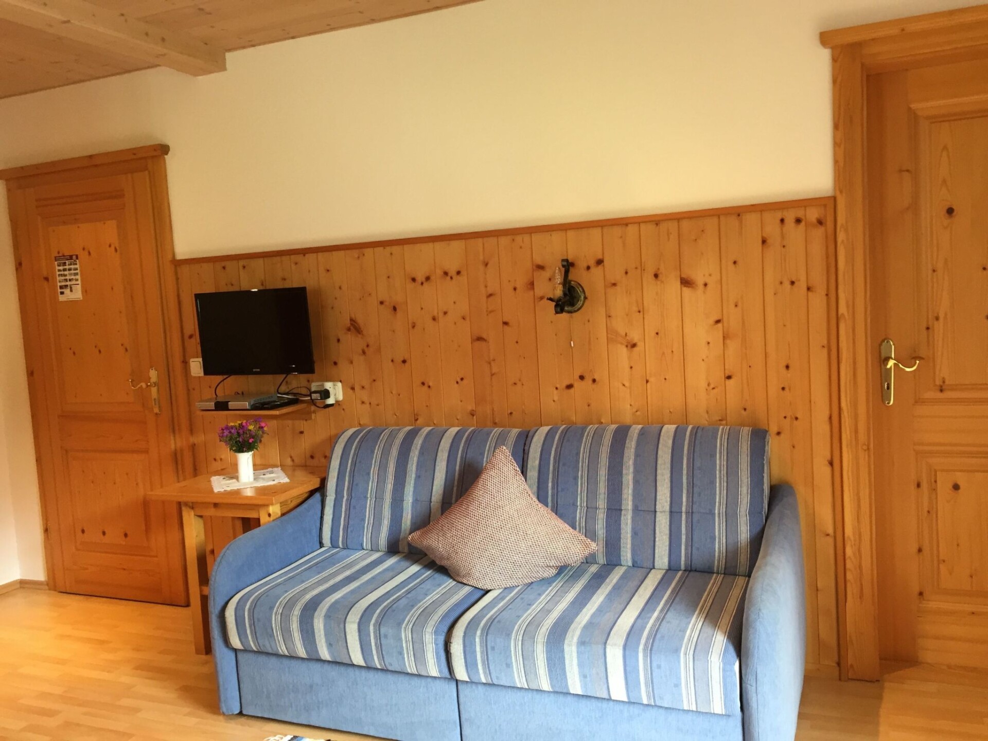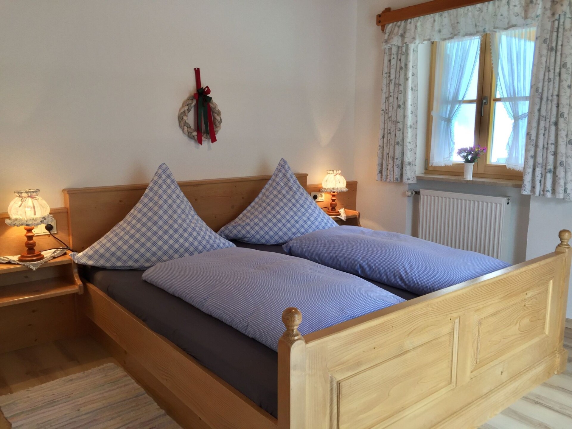 -Our house is quietly yet centrally located in Schneizlreuth-Weißbach on the Alpenstrasse at the entrance to the Berchtesgadener Land, where the mountain valleys still rise gently over forest ridges to the already mighty towering peaks. Look forward to relaxing days in a region that is not yet overcrowded.This non-smoking flat, furnished in country style, is located on the upper floor of our detached house and has a large balcony. It can be reached via a marble staircase. In the living area there is a small kitchenette, a dining area for 4 people and a large sofa bed (1.80x2.00) suitable for one adult or two children up to a maximum of 12 years. There is also a separate bedroom with a double bed. Fully equipped with bed linen, towels, kettle, microwave and much more, the flat leaves nothing to be desired. A tastefully furnished bathroom with shower/WC is also at your disposal. Since we attach great importance to the cleaning of our apartment, there are no carpets in the flat and our holiday flat was lovingly made by carpenters.On the sunny balcony, with an unobstructed view of the mountains, you can relax and listen to the babbling of the mountain stream.Free internet is at your disposal.Several restaurants can be reached on foot in five minutes. Well-maintained hiking trails from the house, often lined with lively rushing streams, lead through stately high forests to romantic, farmed alpine pastures. A hearty snack with a view of mountains and forests, grazing cows and lush alpine meadows is a real experience. Many interesting excursion destinations such as Salzburg (approx. 30 km), Bad Reichenhall, Reit im Winkel, the Königsee, the Kehlstein, the Obersalzberg, Berchtesgaden, Ruhpolding, Herren Chiemsee invite you to an unforgettable visit. A hike through the Weißbach Gorge along the Weißbach to Schneizlreuth is a great experience for the whole family. In bad weather, you can relax in the Rupertus thermal baths (with brine water) in Bad Reichenhall or the Watzmann thermal baths in Berchtesgaden, around ten kilometres away. A visit to the salt mine in Berchtesgaden is great fun for young and old.