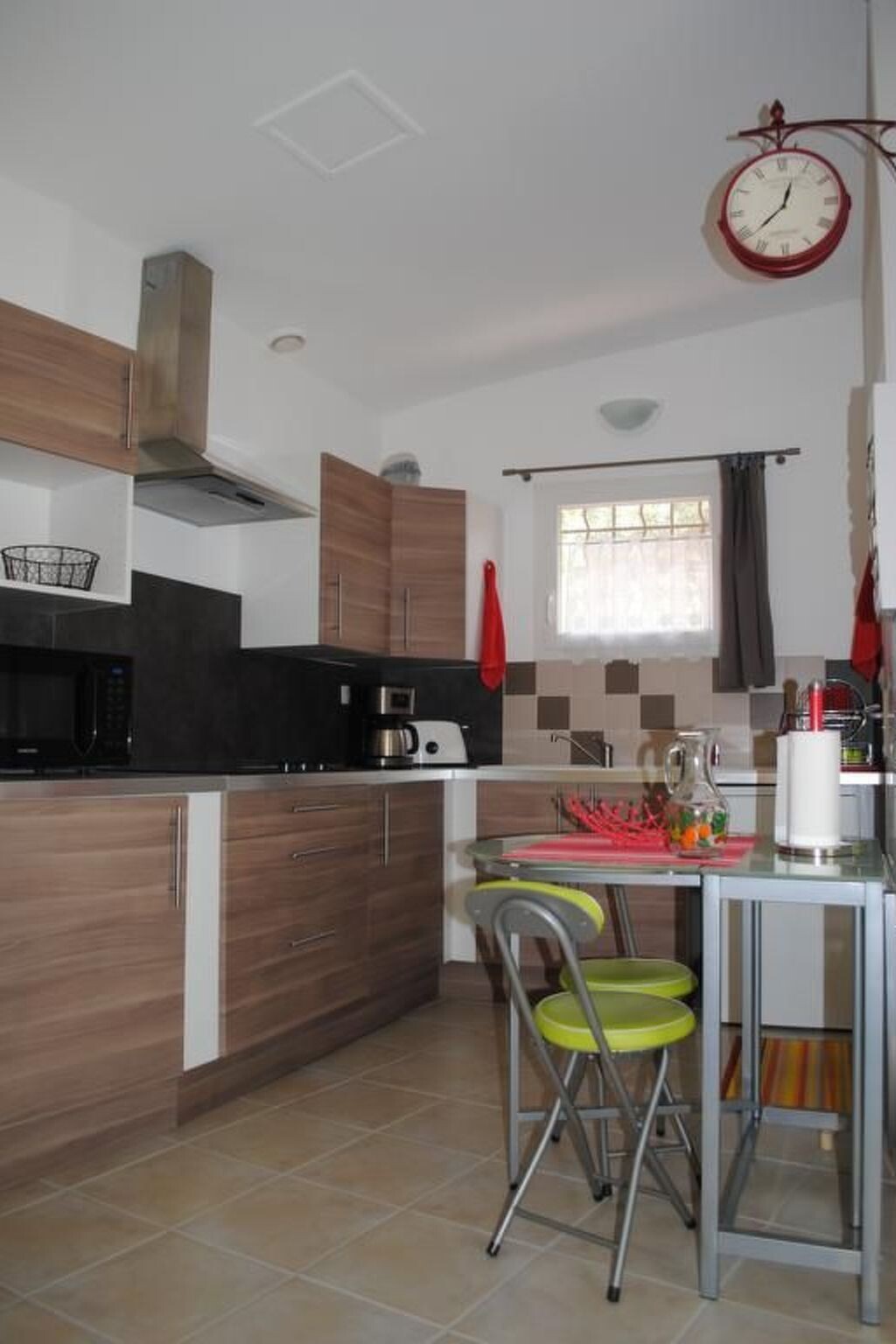 The holiday home, renovated in 2014, is located in a quiet residential area of the town of Colomiers, just ten minutes from Toulouse.The gated property has a beautifully landscaped Mediterranean garden and a private swimming pool measuring 11 x 5 m (depth 1.50 m). In front of the pool, you can relax on two sun loungers with a parasol. Garden furniture is also available. Guests can also park their cars in the private car park in front of the house.The holiday home measures around 40 m² and is designed for a maximum of three people (ideally two adults and a child). It is tastefully furnished and consists of an open-plan living area comprising a bedroom with en suite bathroom, a lounge and a dining area. The living room has a sofa bed (120 x 190 cm) for a third person/child and satellite TV. Access is gained to the open-plan kitchen, in front of which is a small fold-down dining table. The modern kitchen is fully equipped with cooker, oven, fridge-freezer, microwave, toaster and coffee machine. Two small steps to the left of the kitchen lead down a passageway to the doorless bedroom, with a double bed (160 x 200 cm) and en-suite bathroom with corner shower, washbasin and WC. All rooms have electric heating and wireless internet access is also available via WLAN.A five-minute walk from the house is a small square with all the shops you need for everyday life (supermarket, pizzeria, launderette, florist, hairdresser, etc.) and a large children's playground. The house is the ideal base for visiting the beautiful city of Toulouse, the Ville Rose. It is about ten minutes by car from the motorway and about 20 minutes by train from Colomiers station. Buses are free for everyone in Colomiers, and the nearest stop is about a five-minute walk away. Numerous cycle paths also pass in front of the house.If required, the owners will provide guests with two bicycles free of charge for the duration of their stay. They are also always happy to provide valuable advice and information. FR2024OCC31770