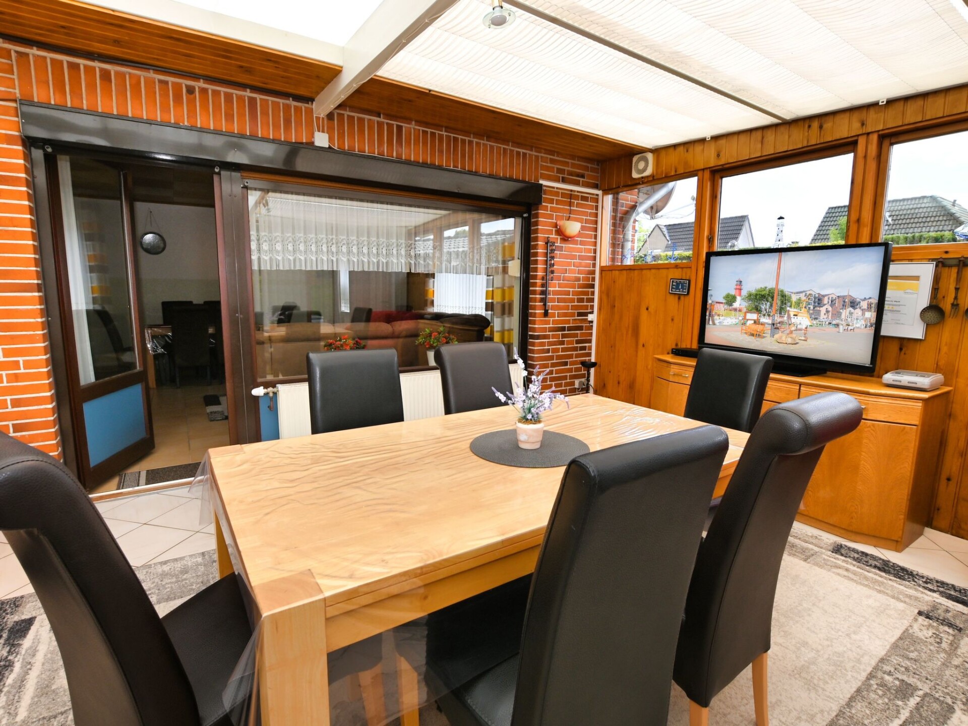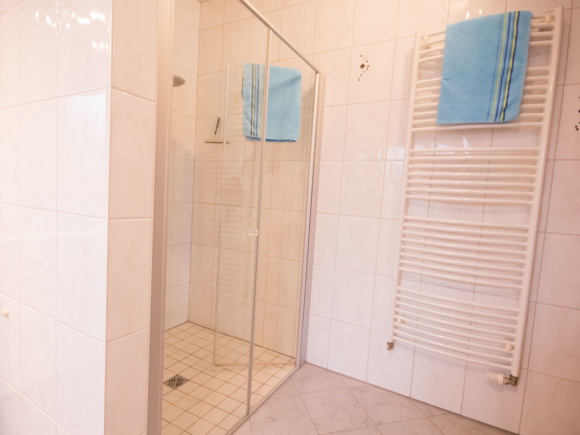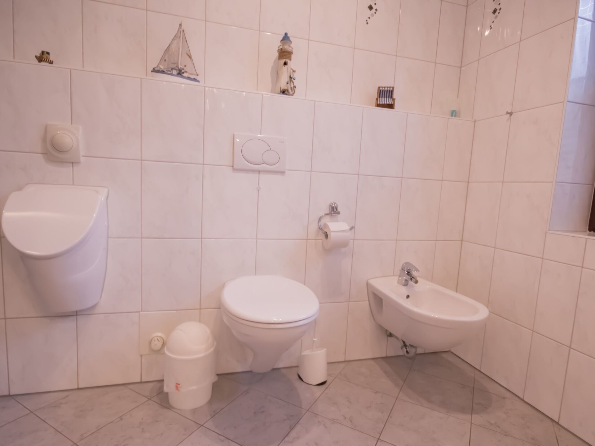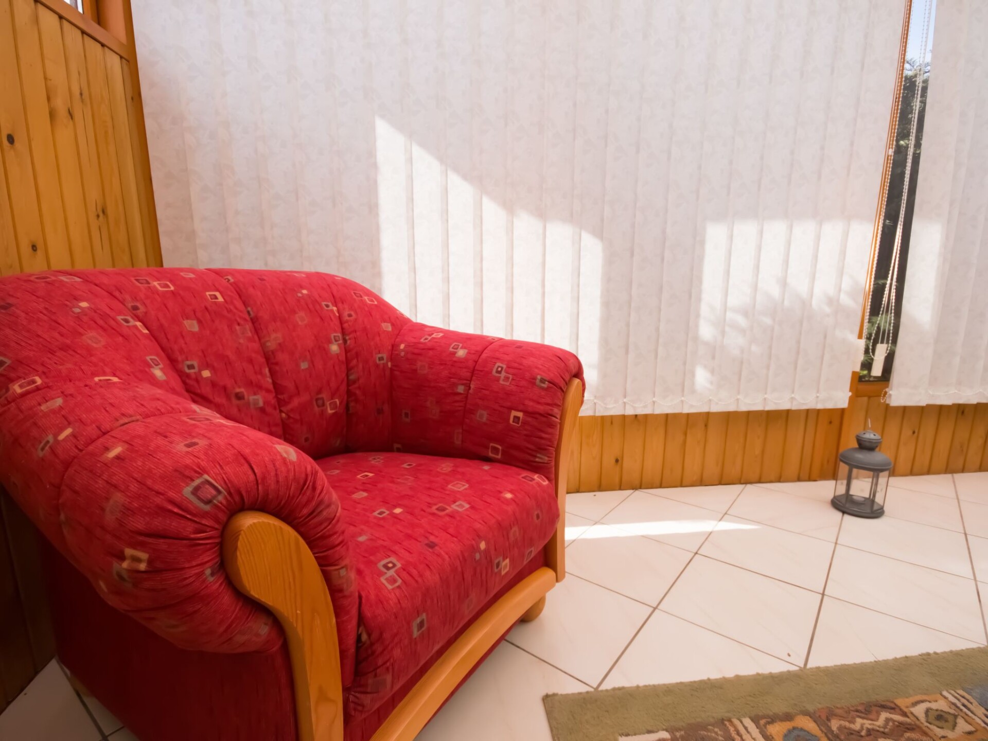 This flat is centrally located in Büsum and the beach and town centre are within easy walking distance.The 4-room flat has a living space of approx. 125 m². The friendly and comfortably furnished holiday accommodation extends over the entire ground floor. The modern living and dining area has a corner sofa with ottoman and coffee table, a floor lamp and a sideboard with a 50-inch flat-screen TV. There is also a dining table with six chairs. In addition to the above-mentioned equipment, the fully equipped kitchen also has an oven and a dishwasher. There is also a further dining area for two people. A high chair for children is available free of charge if required. The first bedroom is furnished with two single beds (0.90 x 2.00 m each). A CD player, a 23-inch TV and a stool round off the furnishings in this sleeping area. The second bedroom has a double bed (1.80 x 2.00 m) and an optional cot (0.70 x 1.40 m) for free use, as well as a clock radio and a stool. The third bedroom also has a double bed (1.80 x 2.00 m) with a stool provided. Compared to the other flats, this bathroom also has underfloor heating, a towel radiator as well as a urinal, bidet and shower stool. The separate guest WC is equipped with a washbasin, toilet and mirror. In the storage room there is a washing machine for your exclusive use free of charge, as well as a clothes horse, ironing board, iron and hoover. You will find a cloakroom, a wardrobe and a mirror in the hallway. We have free W-Lan for you. We assume no liability for failures and malfunctions.The conservatory offers you a beautiful view of the garden and is furnished with a large table and six chairs, an armchair, a sideboard with satellite TV and a games console. Outside, there is a small garden and a terrace with garden furniture for your exclusive use. There is room for up to six people at the table under the electric awning. A barbecue is also provided. There is no possibility to charge an electric car as the house electricity is not designed for this purpose.There are three holiday flats in the house with different sizes and furnishings.Shopping facilities for household goods and clothing are about one kilometre away and a bakery is about 800 metres away.