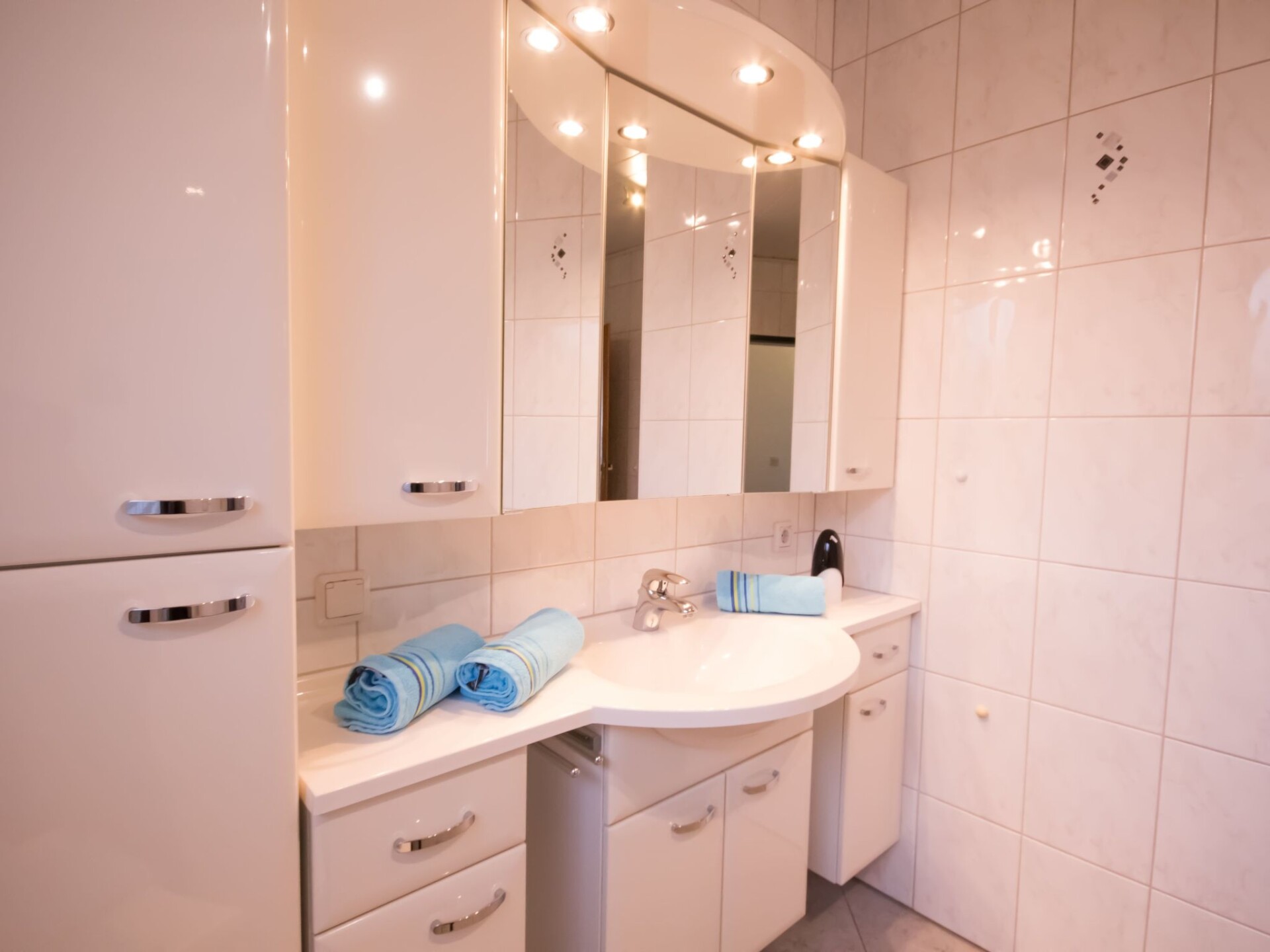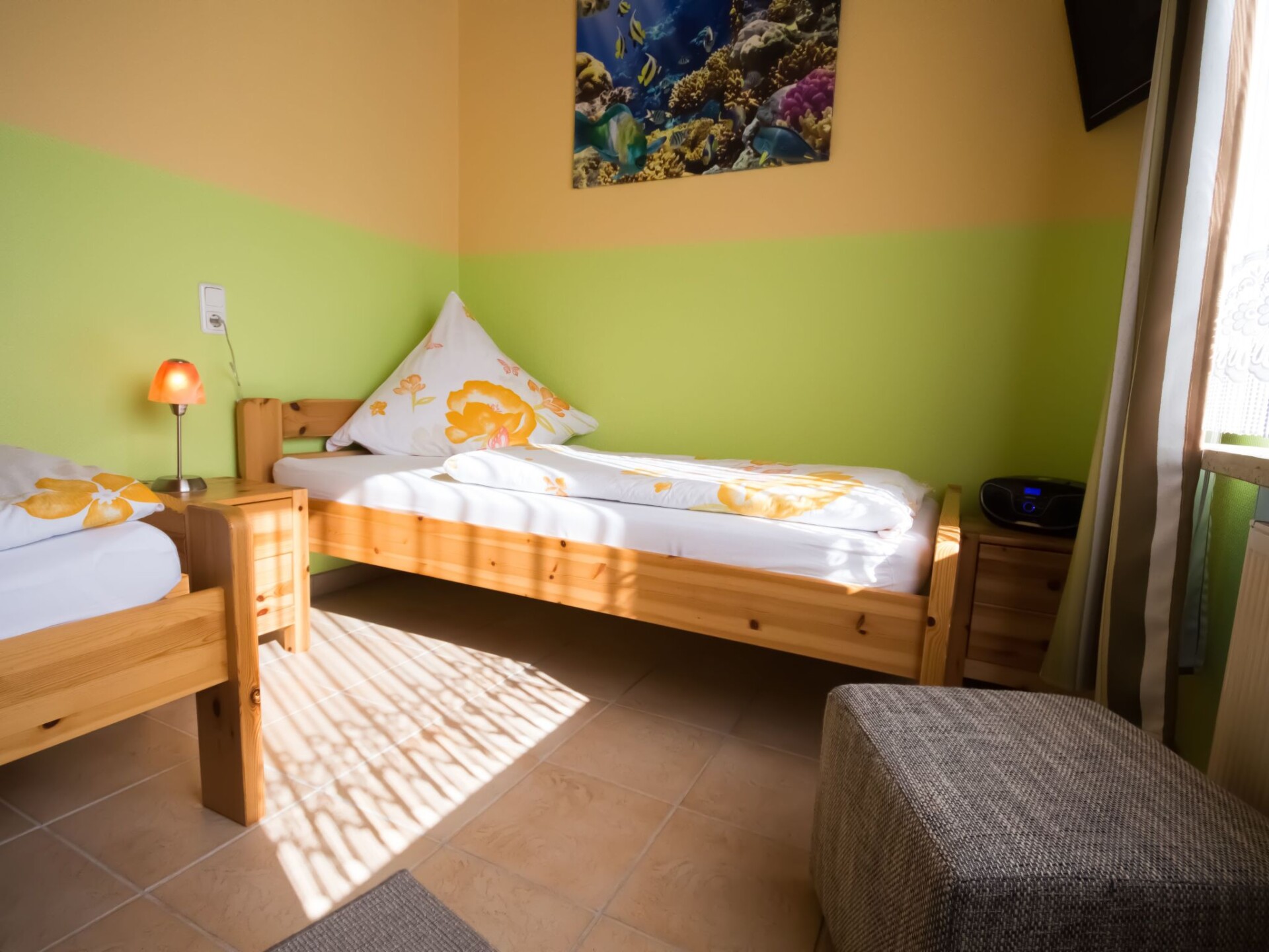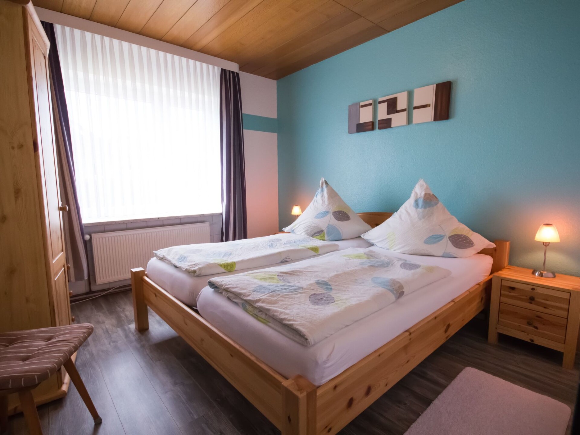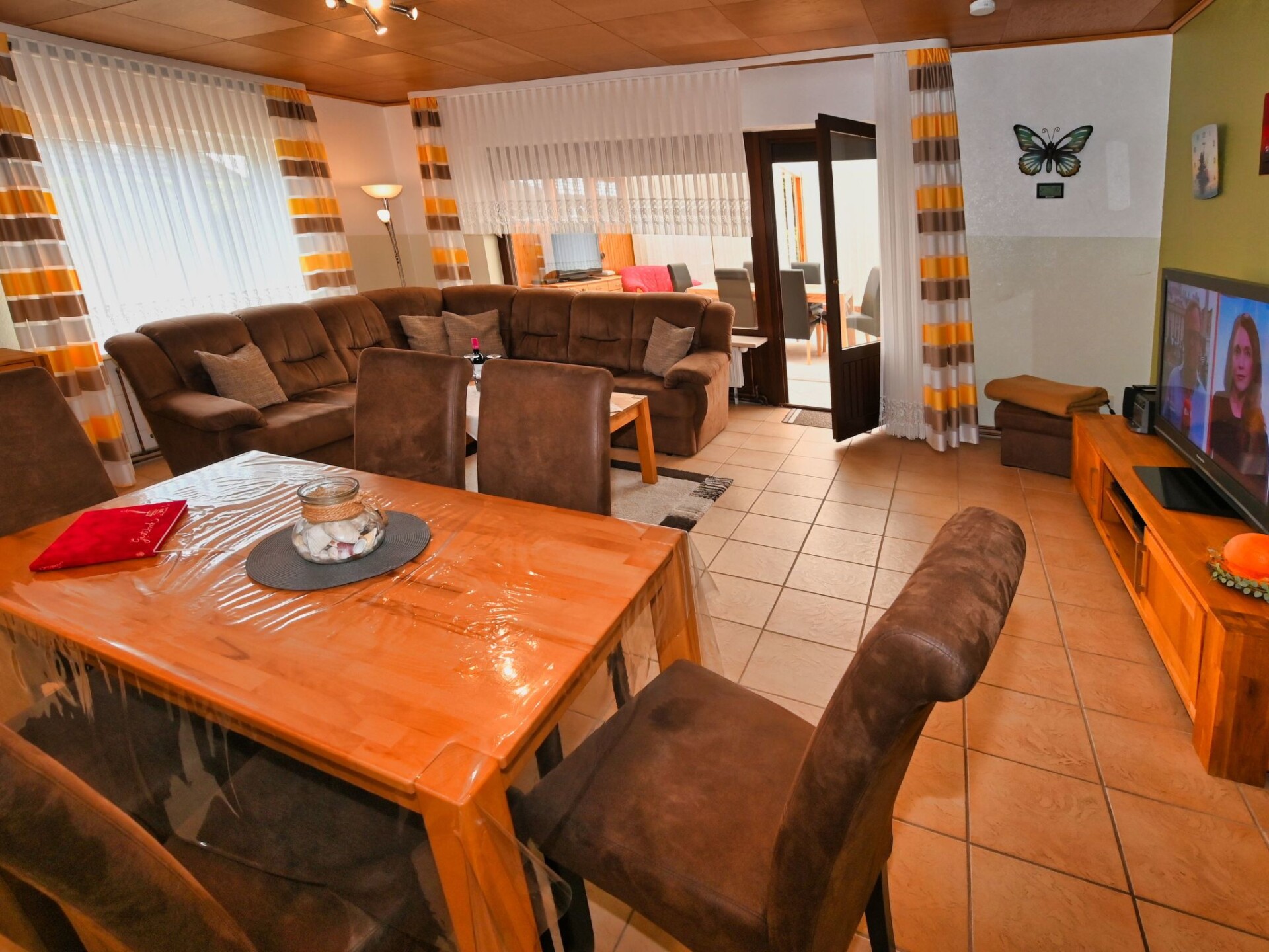 This flat is centrally located in Büsum and the beach and town centre are within easy walking distance.The 4-room flat has a living space of approx. 125 m². The friendly and comfortably furnished holiday accommodation extends over the entire ground floor. The modern living and dining area has a corner sofa with ottoman and coffee table, a floor lamp and a sideboard with a 50-inch flat-screen TV. There is also a dining table with six chairs. In addition to the above-mentioned equipment, the fully equipped kitchen also has an oven and a dishwasher. There is also a further dining area for two people. A high chair for children is available free of charge if required. The first bedroom is furnished with two single beds (0.90 x 2.00 m each). A CD player, a 23-inch TV and a stool round off the furnishings in this sleeping area. The second bedroom has a double bed (1.80 x 2.00 m) and an optional cot (0.70 x 1.40 m) for free use, as well as a clock radio and a stool. The third bedroom also has a double bed (1.80 x 2.00 m) with a stool provided. Compared to the other flats, this bathroom also has underfloor heating, a towel radiator as well as a urinal, bidet and shower stool. The separate guest WC is equipped with a washbasin, toilet and mirror. In the storage room there is a washing machine for your exclusive use free of charge, as well as a clothes horse, ironing board, iron and hoover. You will find a cloakroom, a wardrobe and a mirror in the hallway. We have free W-Lan for you. We assume no liability for failures and malfunctions.The conservatory offers you a beautiful view of the garden and is furnished with a large table and six chairs, an armchair, a sideboard with satellite TV and a games console. Outside, there is a small garden and a terrace with garden furniture for your exclusive use. There is room for up to six people at the table under the electric awning. A barbecue is also provided. There is no possibility to charge an electric car as the house electricity is not designed for this purpose.There are three holiday flats in the house with different sizes and furnishings.Shopping facilities for household goods and clothing are about one kilometre away and a bakery is about 800 metres away.