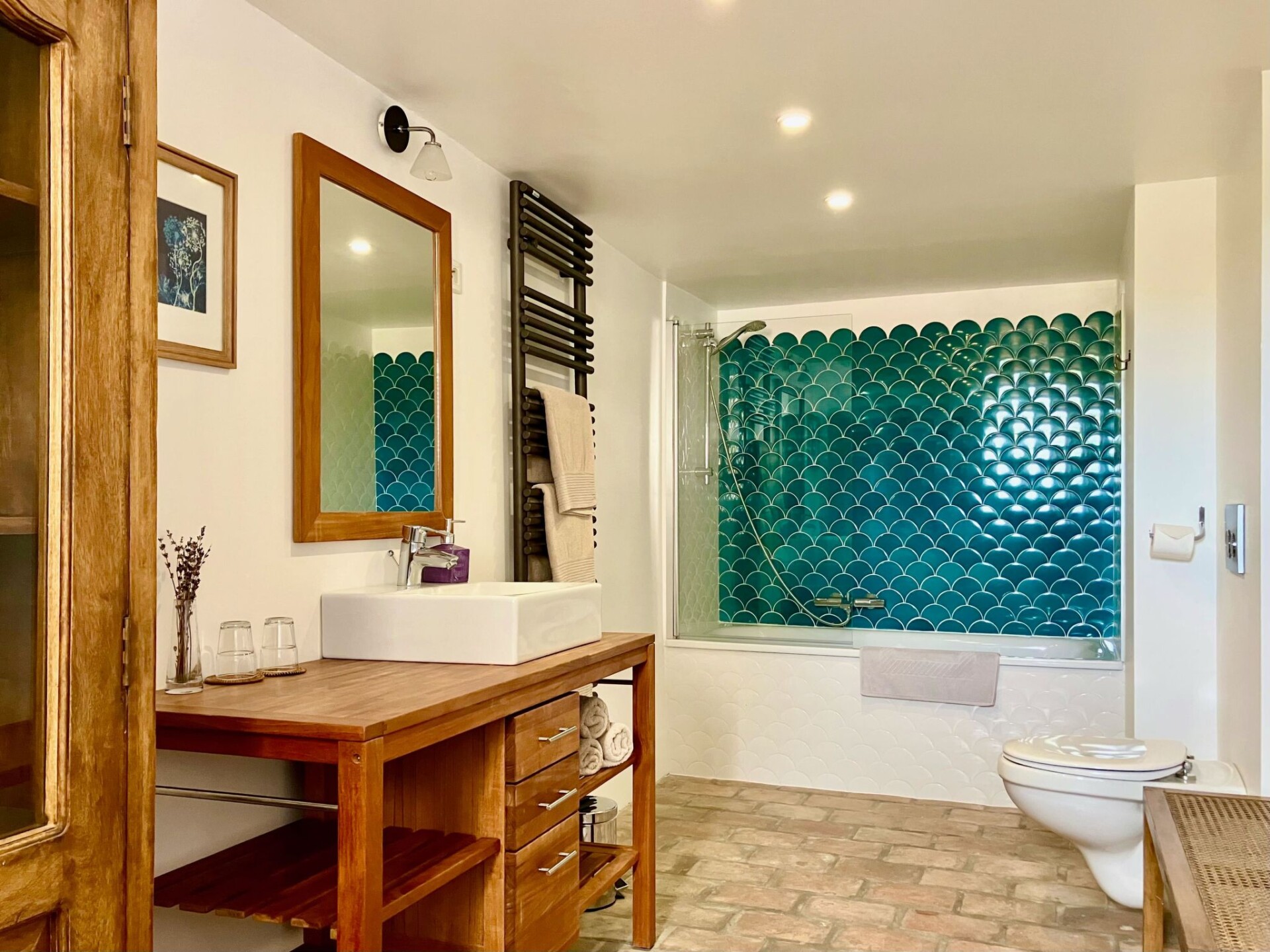 Ideally located on the Nimes, Alès and Avignon routes and close to Uzès, "L'Autre maison" is a former silkworm farm built in the 18th century in the heart of St Jean de Ceyrargues, a small village in the Gard in the Cévennes foothills. This beautiful building, comprising 3 buildings around a large courtyard with swimming pool and climbing vine, has been renovated using the finest materials and decorated with care for the well-being of its guests. The house has 7 bedrooms, one of which is suitable for people with reduced mobility, 6 Italian-style shower rooms, 1 bathroom, 1 TV room, 1 library, 2 dining rooms and 1 kitchen. It offers all the comfort you need. Each room has its own character and the atmosphere deliberately differs from one place to another. Each room has its own character, and the atmosphere is deliberately different from one place to another, so you'll find your own space for peace and privacy, depending on your mood at the time, or for social interaction and conviviality. FR2023OCC