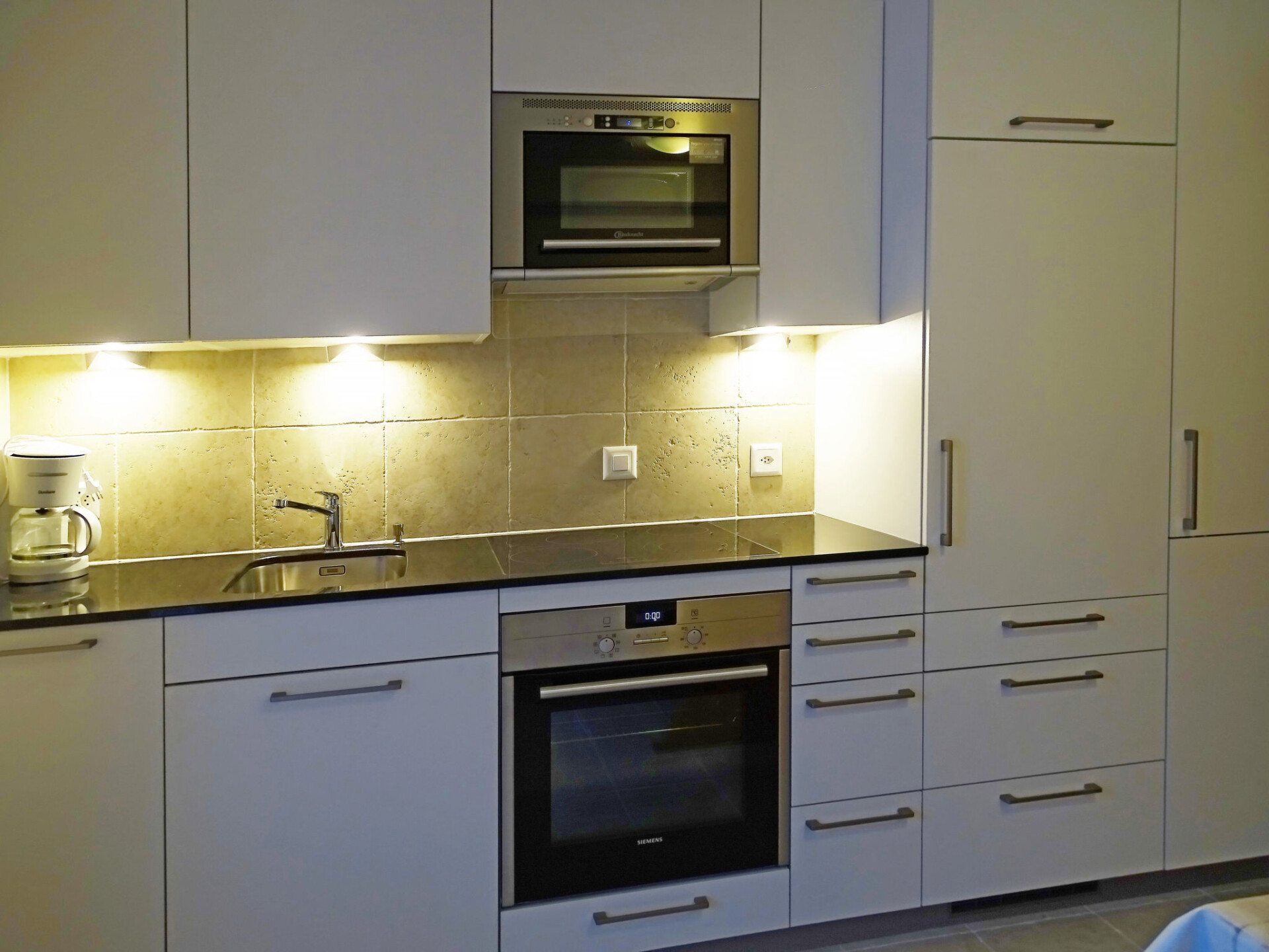 "Wohnung Nr 5 + 6", appartement 6-kamers 106 m2 op 2 verdiepingen, op de bovenverdieping. Modern ingericht: woon-/slaapkamer met 1 2-pers kastbed en Sat-TV (Flatscreen TV), radio en DVD. Uitgang naar het balkon. 1 2-pers. kamer. Uitgang naar het balkon. 1 kamer met 1 x 2 stapelbedden. Keuken (oven, afwasmachine, 4 keramische glas kookplaten, magnetron, elektrische koffiemachine, fondue Set (kaas)) met eettafel. Douche/WC. Olie-verwarming. Bovenverdieping: woon-/slaapkamer met 1 2-pers kastbed en Sat-TV (Flatscreen TV), radio en DVD. Uitgang naar het balkon. 1 2-pers. kamer. Uitgang naar het balkon. 1 kleine kamer met afgeschuinde daken met 1 bed. Uitgang naar het balkon. Keuken (oven, afwasmachine, 4 keramische glas kookplaten, magnetron, elektrische koffiemachine, fondue Set (kaas)) met eettafel. Bad/WC. Olie-verwarming. 5 balkons. Balkonmeubilair. Ter beschikking: kinderstoel. Internet (Internet (WiFi), gratis). Niet rokers woning.