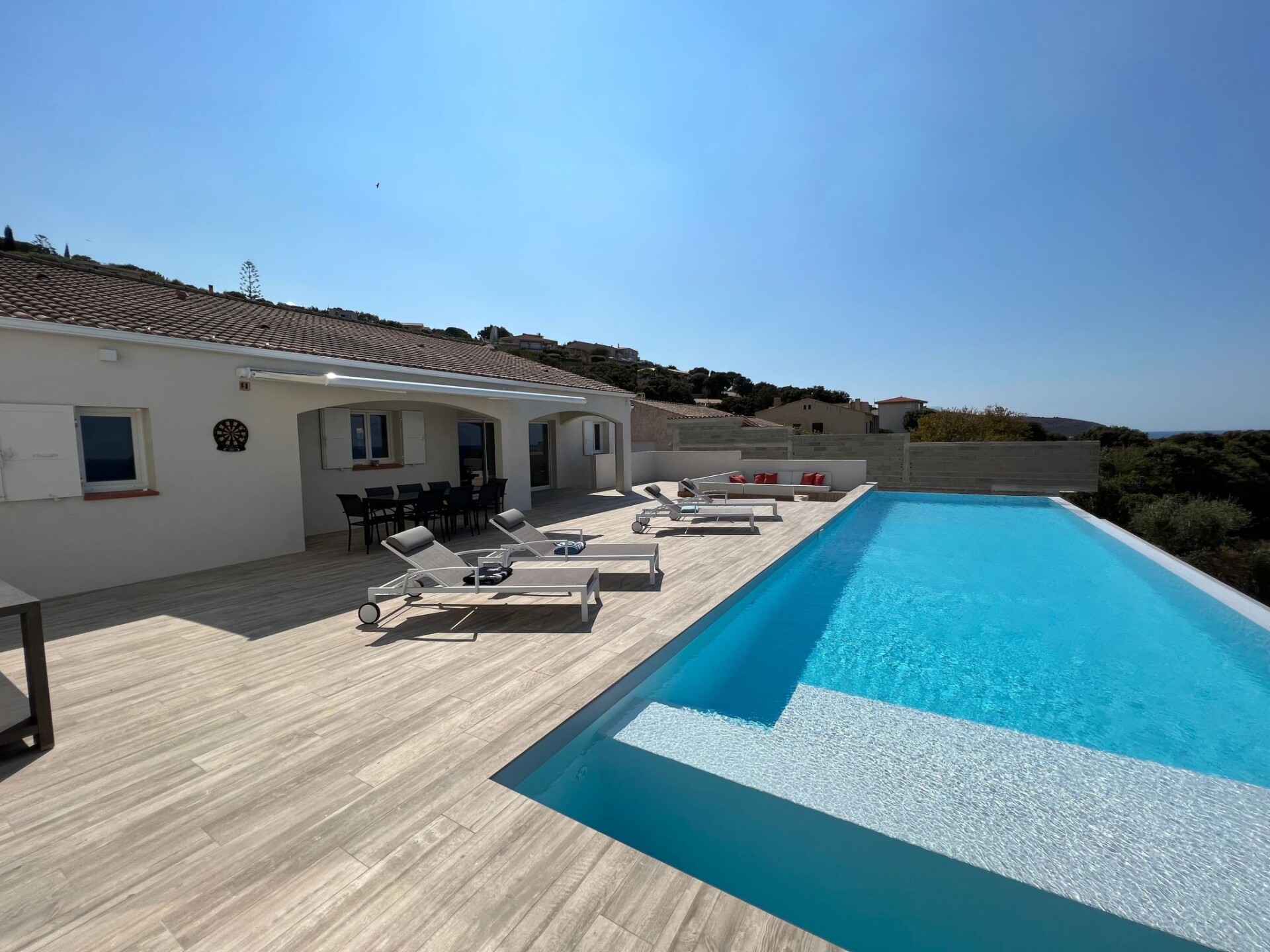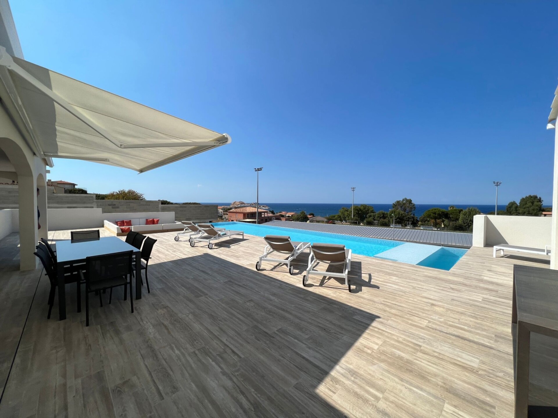 Discover this splendid villa in Monticello, an oasis of tranquillity for your holidays in Corsica. With its majestic sea views and direct access to the beaches, this property is the perfect retreat for those looking to get away from it all. Sleeping up to 8 people in its 4 bedrooms, each with an en suite bathroom, this holiday home ensures comfort and privacy for its guests.The interior of the villa is fully air-conditioned to ensure your comfort on hot summer days. The house not only offers practical facilities such as a washing machine, coffee maker and dishwasher, but also leisure activities such as a pool table for entertaining friends and family. The experience is complemented by modern conveniences, ensuring a hassle-free stay.Outside, the large terrace unveils a private heated swimming pool, promising relaxation and refreshment under the Corsican sun. For those who prefer a bit of height, the roof terrace offers a privileged space to relax or admire the panorama. Pets are also welcome, with a fully fenced garden to ensure their safety.The villa nestles in a privileged setting, just 400 metres from the sea and pet-friendly beaches. Everything you could possibly need is close by, with a bakery and mini-market just a short walk away, the town centre just 600 metres away and watersports opportunities 2 km away. Whether you want to explore the area, enjoy the local cuisine or simply relax on the beach, everything is within easy reach.This villa in Monticello is the ideal location for a sunny Corsican retreat. Whether you come for the breathtaking scenery, the pleasures of the sea or simply to recharge your batteries in beautiful surroundings, this holiday home has it all. Get ready for an unforgettable experience, where comfort meets the natural beauty of the island of beauty. 75331515900032