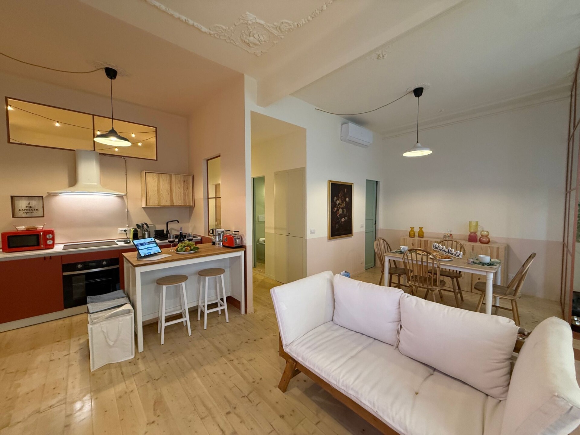 House Torre Melograno is a cosy flat located in the heart of Genoa, in Via Carlo Barabino, ideal for families or groups of up to 4 people. It consists of two bedrooms, one with a double bed and one with two single beds, offering all the comfort needed for a pleasant holiday. The living area has a comfortable sofa, where a child can sleep, and a relaxation area. The equipped kitchenette allows you to prepare meals in total autonomy, while the two bathrooms with shower and bidet guarantee maximum comfort for guests. The flat is situated in a quiet and well-serviced location, just a few minutes from Genoa's main points of interest, thus offering an excellent base for discovering the city and enjoying a relaxing and comfortable holiday.Genoa allows you to immerse yourself in a unique combination of architectural beauty, delicious cuisine and authentic atmosphere. The city stretches over a series of hills that descend towards the Ligurian Sea, creating breathtaking views. Its historic centre is the largest in Europe and was declared a UNESCO World Heritage Site. The Porto Antico of Genoa has been completely renovated in recent years and is now a lively leisure area with attractions such as the Aquarium of Genoa, one of the largest in Europe. Numerous historical palaces, churches and museums testify to its past grandeur. Among the most famous attractions are the Cathedral of San Lorenzo, the Palazzo Ducale, the Lanterna di Genova and the Museo di Palazzo Reale. Genoa is also renowned for its delicious cuisine and specialities such as pesto genovese, focaccia, trofie al pesto, pansoti with walnut sauce and many other fresh fish delicacies. In addition, the city offers a variety of cultural events and festivals throughout the year. Among the best known is the 'Salone Nautico', an international exhibition dedicated to the maritime sector. IT010025B4XWEGHIJY