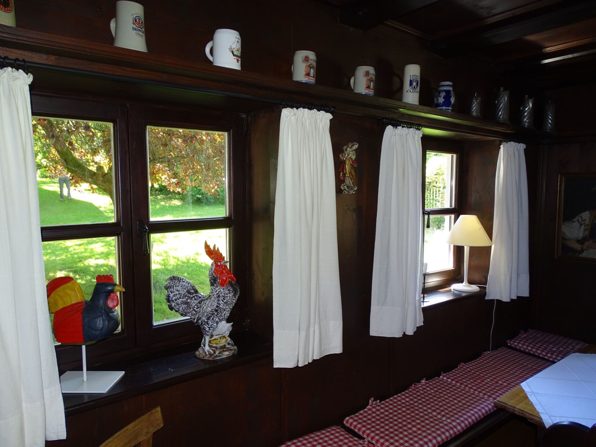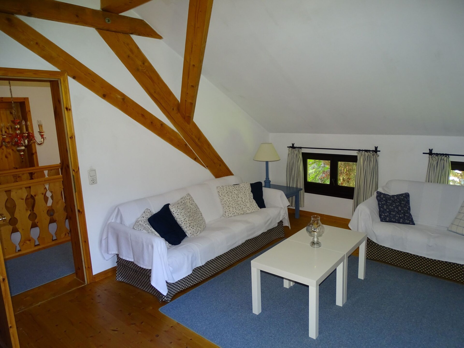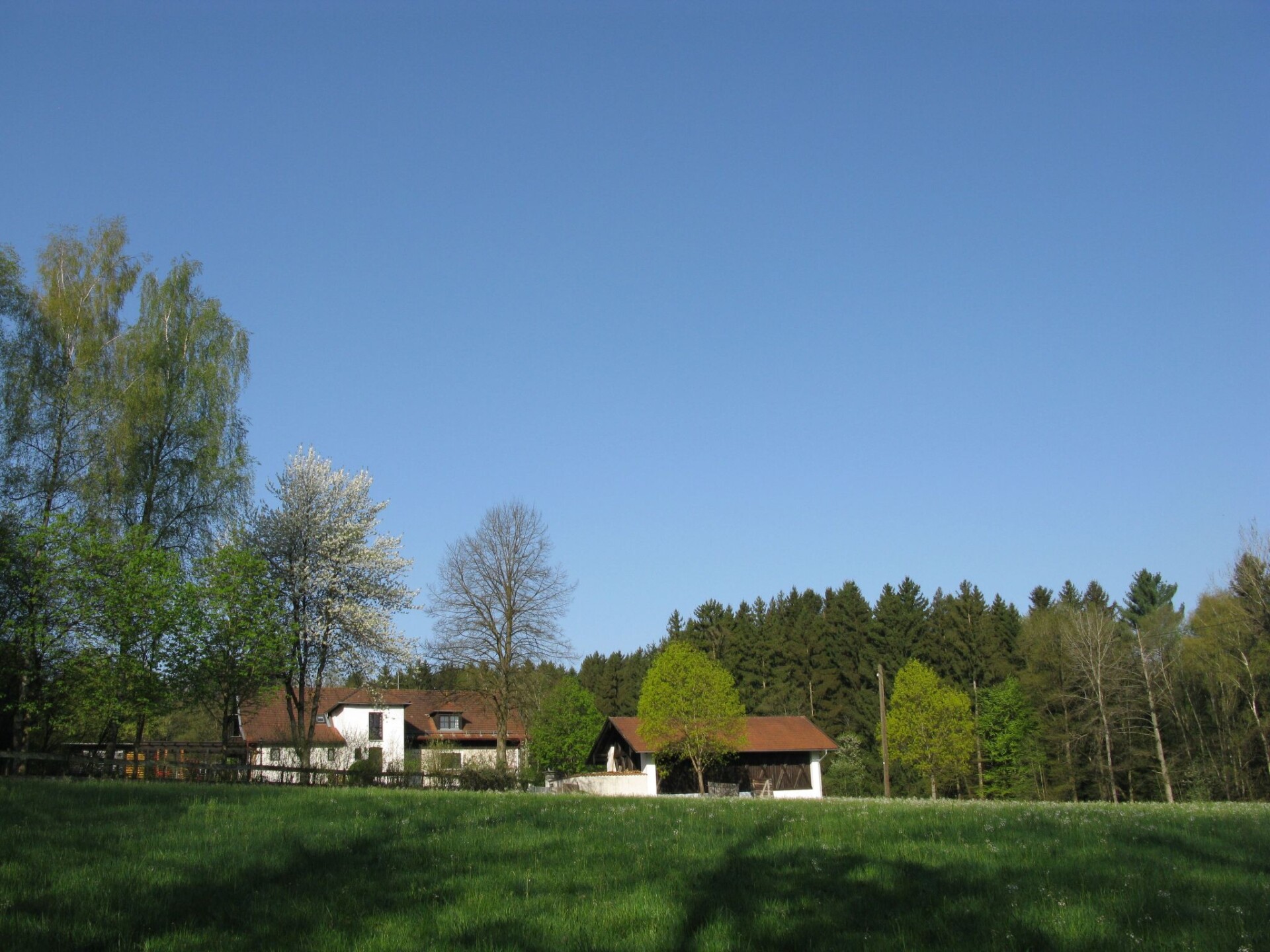 Quietly situated property in a forest clearing Our two holiday homes and the main house of the host family are quietly situated in a forest clearing about 200m from the nearest neighbours.There is a small bench in front of the house where you can relax. There is also a seat and a parasol.The holiday home Victoria is divided into two floors. On the ground floor is the large hallway, the guest WC and the large, rustic kitchen-cum-living room with a large tiled stove. The kitchen-living room has dark panelling, just as it used to look in Bavarian taverns. The kitchen has a kitchenette with cooker, dishwasher and fridge. The beautiful large tiled stove is heated from the hallway. The large, wide wooden staircase takes you to the upper floor. There you will find the bathroom with shower, WC and washbasin. In the first bedroom there is a living area with two sofas, writing facilities, a farmhouse wardrobe with TV and two bunk beds. In the second bedroom there is a large double bed and a seating area. All floors in the house are made of wood. There are spacious built-in wardrobes in the second bedroom and in the hallway.You can fish, swim or take a dinghy ride in the 1000 square metre pond. The nearest outdoor swimming pool is about half an hour's walk away. If you prefer to enjoy the peace and quiet of nature, you can go hiking or mushroom hunting in the forest right next to our farm. There is also an old railway line in Schöllnach, which is now paved. There you have the possibility to explore the track in summer by bike, inline skates or on foot in the direction of Kalteneck or Niederalteich. In winter - if there is enough snow - this route is prepared for cross-country skiers.The holiday home is heated exclusively by a tiled stove. Firewood is available in sufficient quantities.
