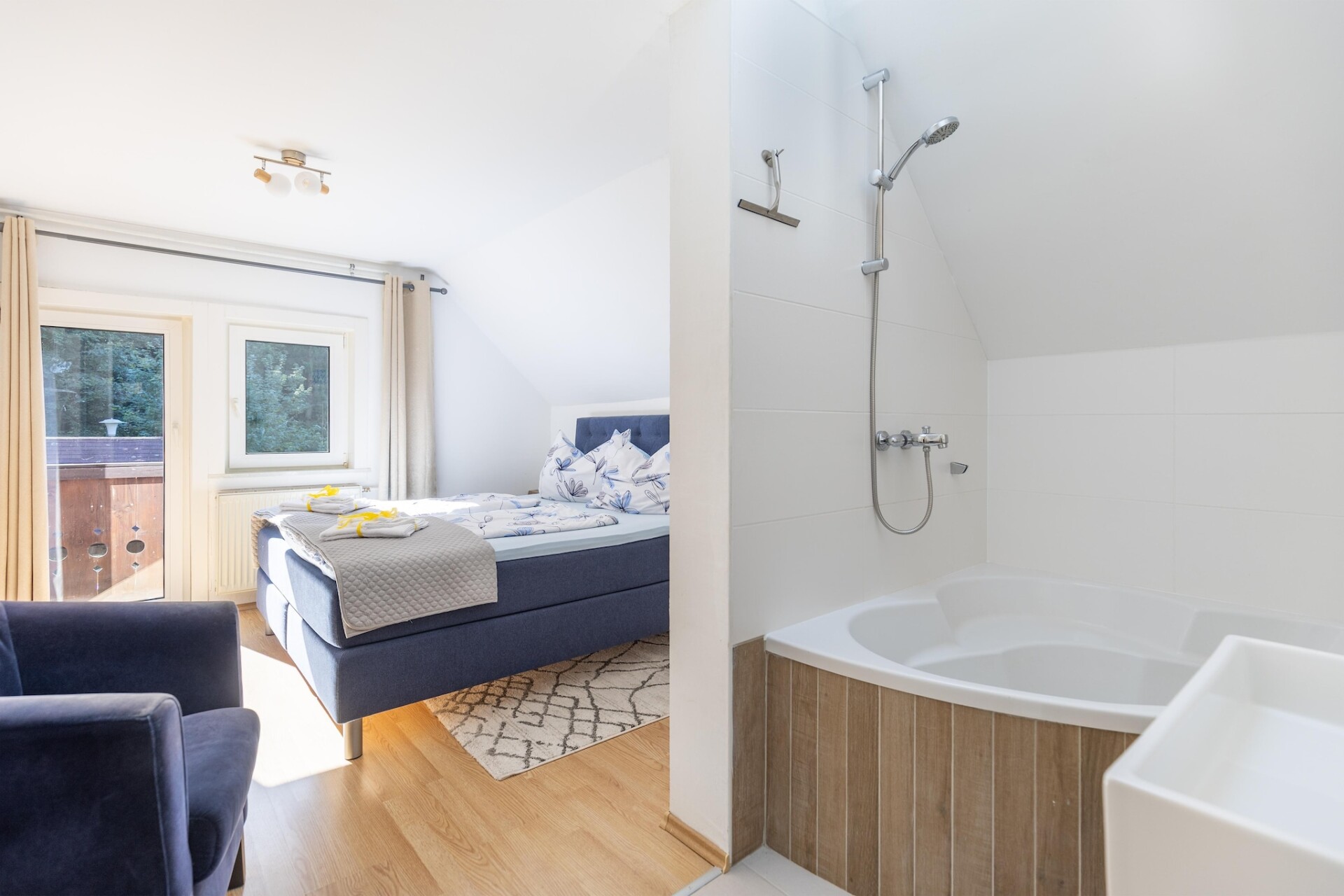 Dit goed ingerichte appartement in Feld am See biedt plaats aan maximaal 6 gasten en beschikt over een woonkamer met zithoek en slaapbank, twee slaapkamers met en-suite badkamers (een met douche, een met bad), een volledig uitgeruste keuken, terras, balkon en parkeerplaats, inclusief overdekte ruimte voor motorfietsen. Er is een apart toilet voor beide slaapkamers en een extra buitentoilet bij de ingang van het terras.