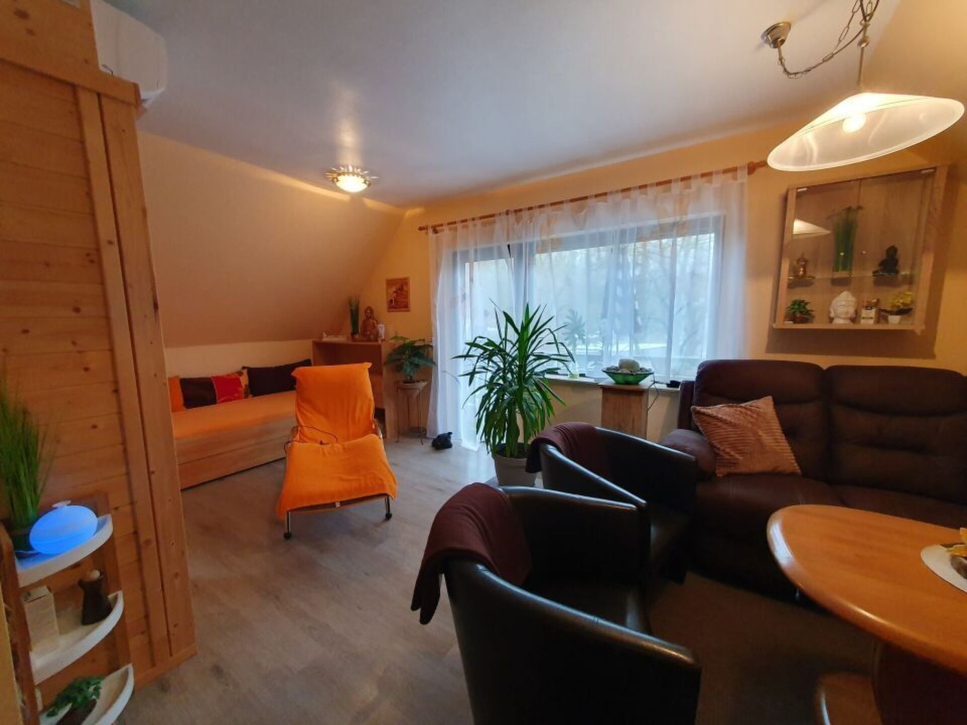 Experience an unforgettable holiday in the detached Wellness holiday home, located in the picturesque Silbersee holiday park. With its own sauna and plenty of space for 4 to 9 people, this holiday home offers the perfect retreat for families, friends and anyone looking for comfort and relaxation on holiday. Enjoy the peace and quiet and the proximity to nature while feeling at home.The heart of the house is the spacious living-dining room area, equipped with an inviting fireplace, a flat-screen TV, radio, CD and DVD player, cosy seating for up to 9 people (including children) and a fully equipped kitchen. This area invites you to enjoy meals together and relaxing evenings. The four bedrooms are spread over two levels and are equipped with every comfort - from radio alarm clocks and a safe to a changing table for the little ones. Two bathrooms, each with a shower and WC, offer additional comfort. A highlight is the wellness room on the top floor, which ensures maximum relaxation with a sauna, another fireplace, relaxation loungers and entertainment electronics.The outdoor area of the house boasts a spacious terrace, a balcony and a large garden that offers plenty of space to play and relax. A brick barbecue area as well as garden furniture and sun loungers invite you to socialise outdoors, while the small sandpit in the front garden will delight the youngest guests.The area surrounding the Wellness holiday home is ideal for anyone who loves nature and outdoor activities. The idyllic Silbersee lake is just a few minutes' walk away, as are the surrounding forests, which are perfect for walks. Cycling tours, mountain biking, fishing and climbing are just some of the activities you can explore in the immediate vicinity. The location also offers the perfect combination of tranquillity and proximity to exciting leisure activities.Spend unforgettable days in the Wellness holiday home, where relaxation and adventure go hand in hand. This non-smoking house with its wide range of activities and fantastic location promises a holiday that leaves nothing to be desired - ideal for a visit at any time of year. Whether you are looking for peace and quiet, want to enjoy nature or actively explore the surrounding area, here you will find everything you need for a perfect holiday.ATTENTION: The wellness room is intended for relaxation and saunas. The wellness room should remain pet-free and should not be used as a playroom. Unfortunately we have to list this here due to the current situation!
