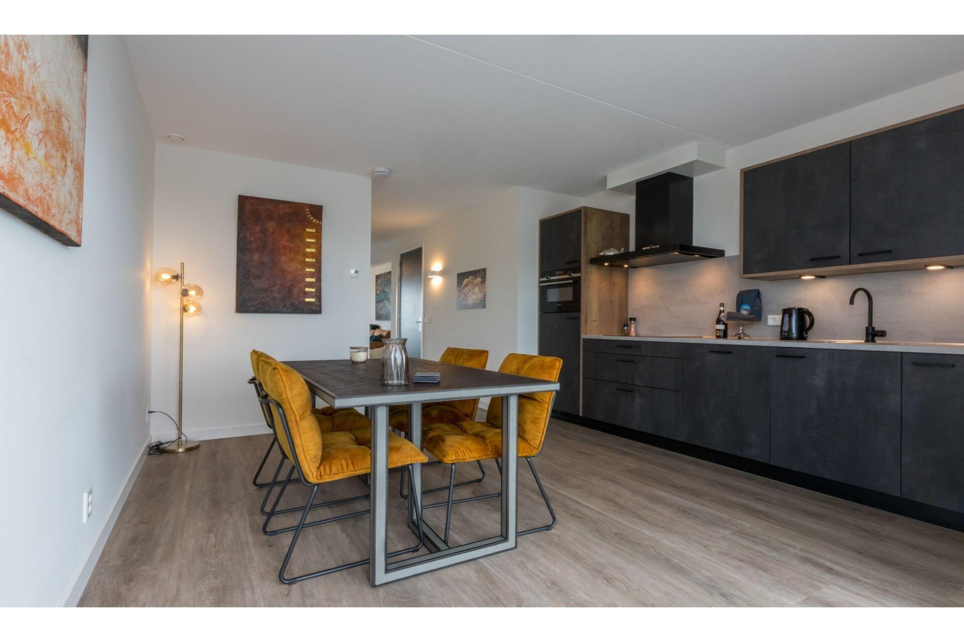 De lichte woonkamer is met zorg ingericht. Hier kom je na een lange dag tot rust op de bank, voor de flatscreentelevisie. Is het mooi weer, dan kun je de deuren naar de tuin openschuiven om de zon binnen te laten. Ook met koudere temperaturen is dit appartement een heerlijke uitvalsbasis; in elke ruimte is vloerverwarming aanwezig. Vanuit de woonkamer stap je de open keuken in. Hier vind je een combimagnetron, vaatwasser, koelkast, vriezer, broodrooster, waterkoker en koffiezetapparaat (filter, Nespresso).