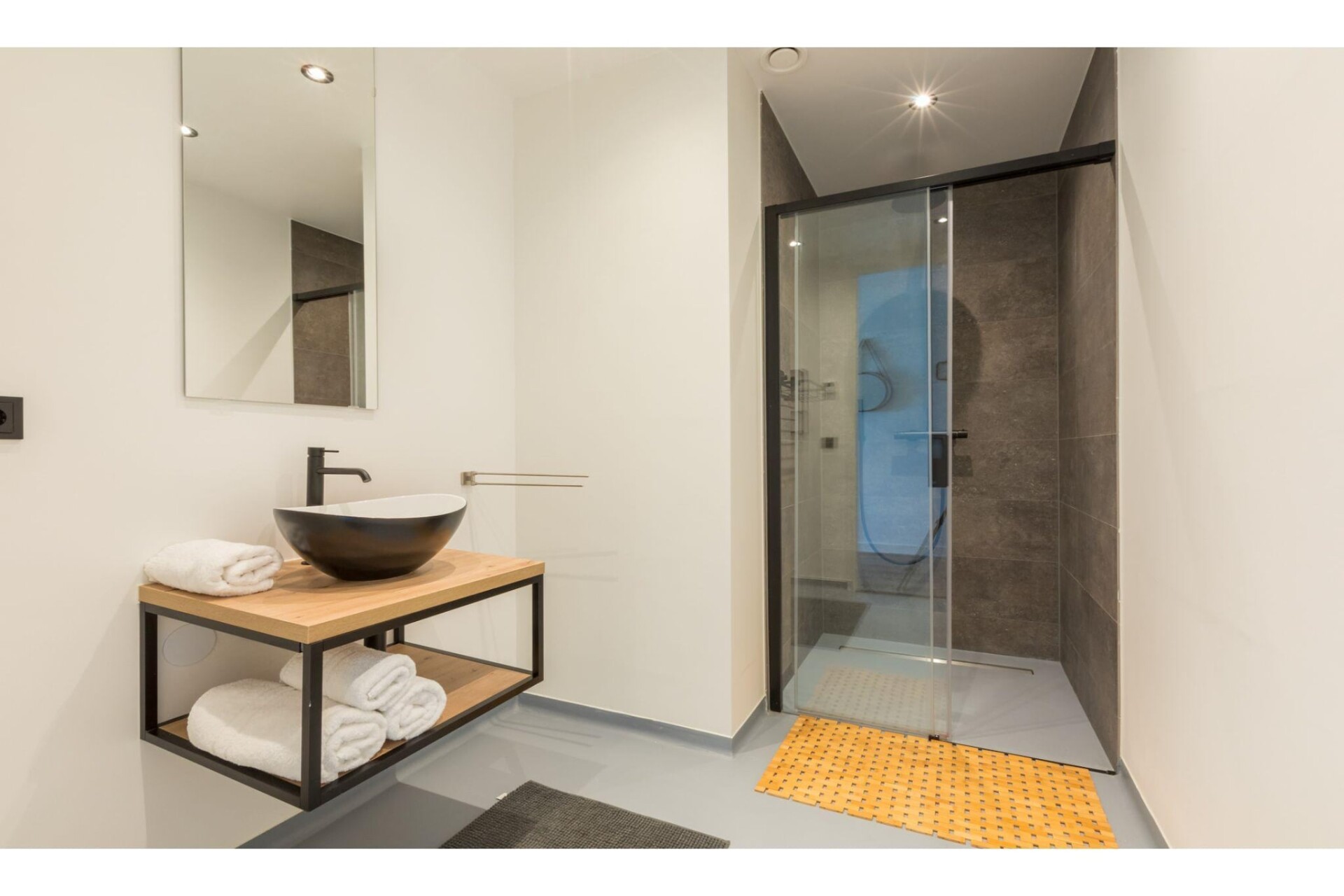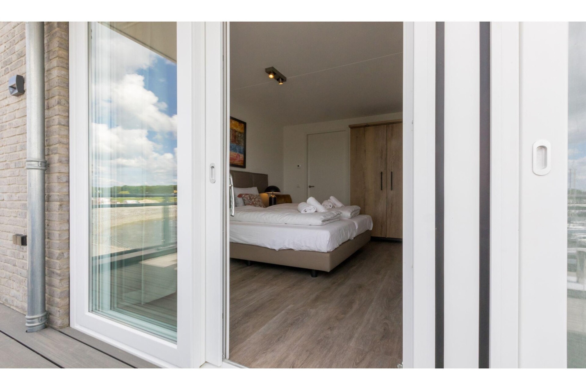 De badkamer beschikt over een inloopdouche, badkamermeubel en spiegel. Verder heeft dit appartement twee slaapkamers. In beide slaapkamers staan nachtkastjes, een kledingkast en een boxspring met twee aparte matrassen (80x200 cm). Vanuit de slaapkamers stap je via de schuifdeuren het balkon (27m2) op.