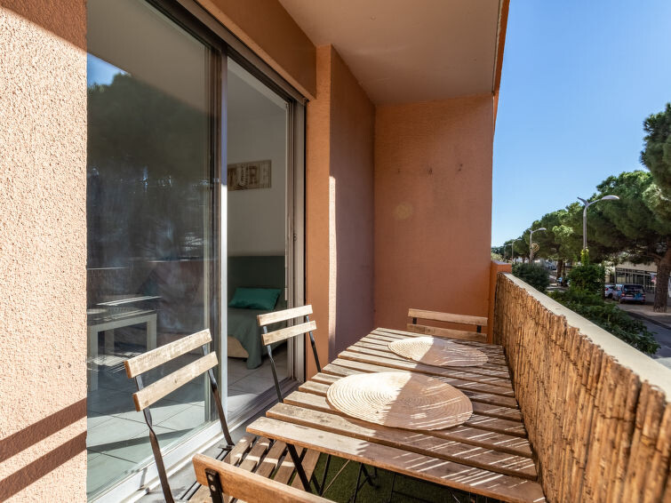 Appartement 2-kamers 35 m2 op de 1e verdieping. Doelmatig en mooi ingericht: woon-/eetkamer met 1 2-pers divanbed (140 cm, lengte 190 cm), eettafel en TV (Flatscreen TV). 1 kamer met 1 2-pers bed (140 cm, lengte 190 cm). Open keuken (oven, afwasmachine, 4 keramische glas kookplaten, broodrooster, waterkoker, magnetron, elektrische koffiemachine). Douche/WC. Elektrische verwarming. Klein balkon 6 m2. Balkonmeubilair. Ter beschikking: wasmachine, strijkijzer. Internet (Internet (WiFi), extra). Parkeerplaats. Woning aan de straatzijde. TV alleen FR. Rookmelders. 83070 000993 OJ